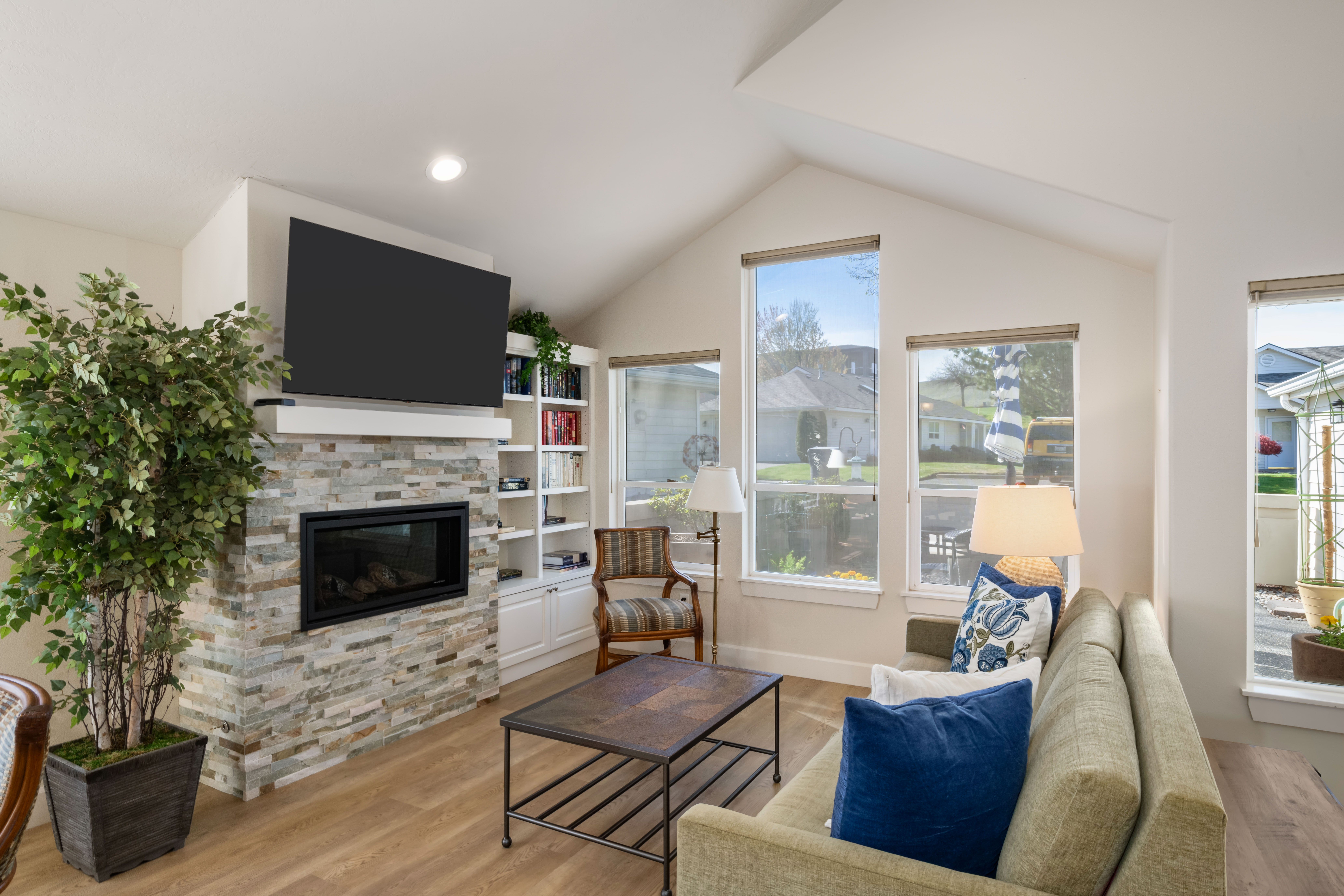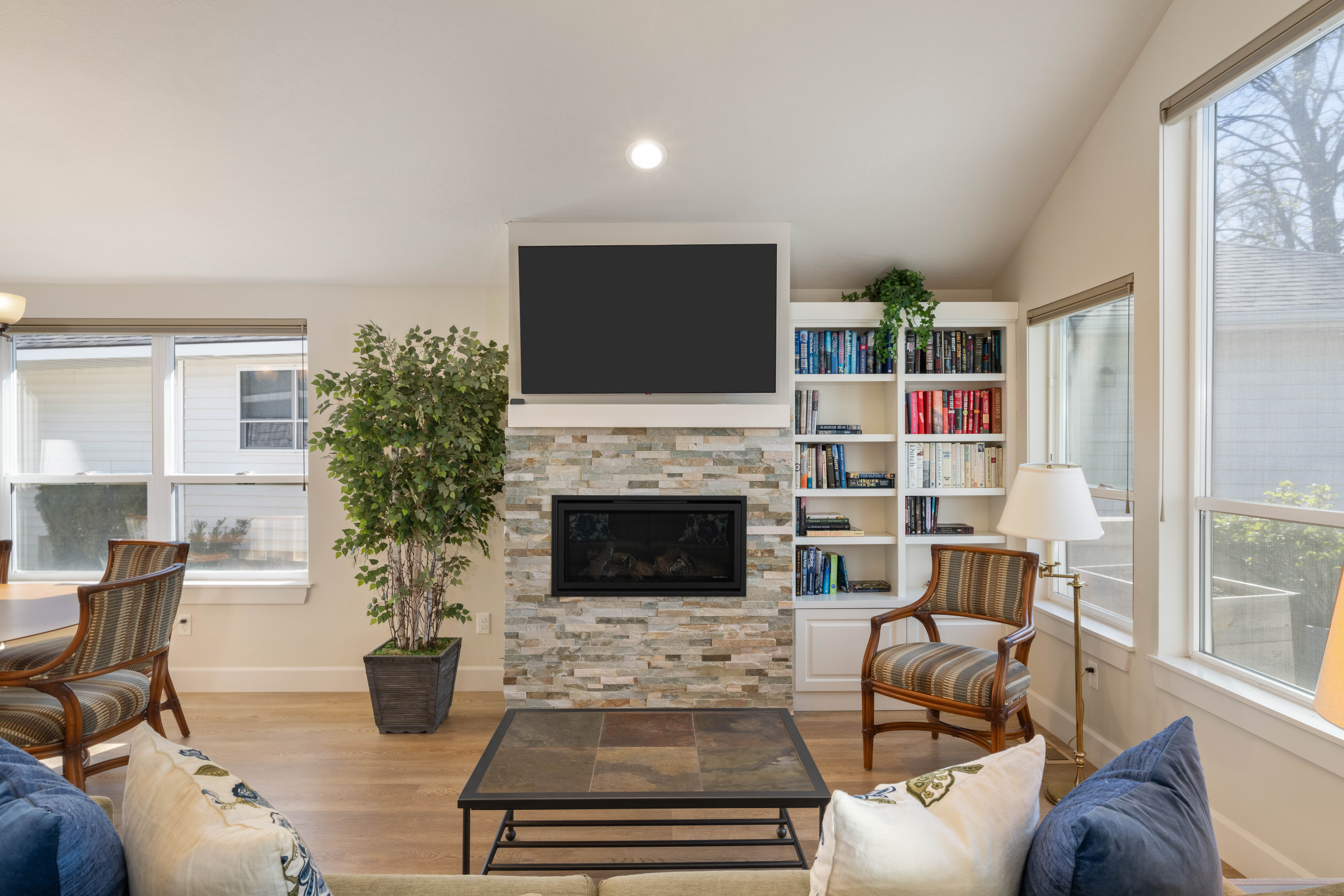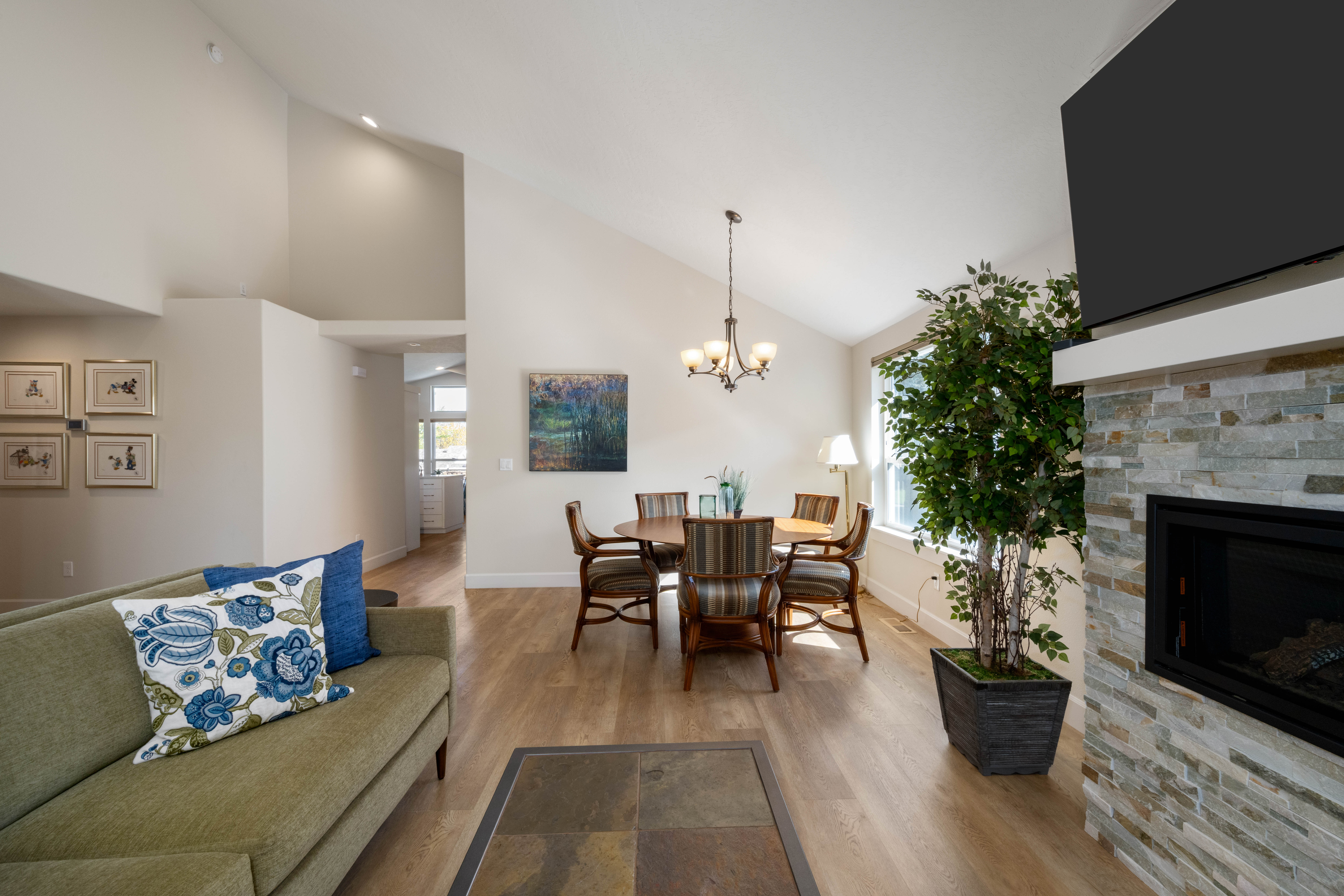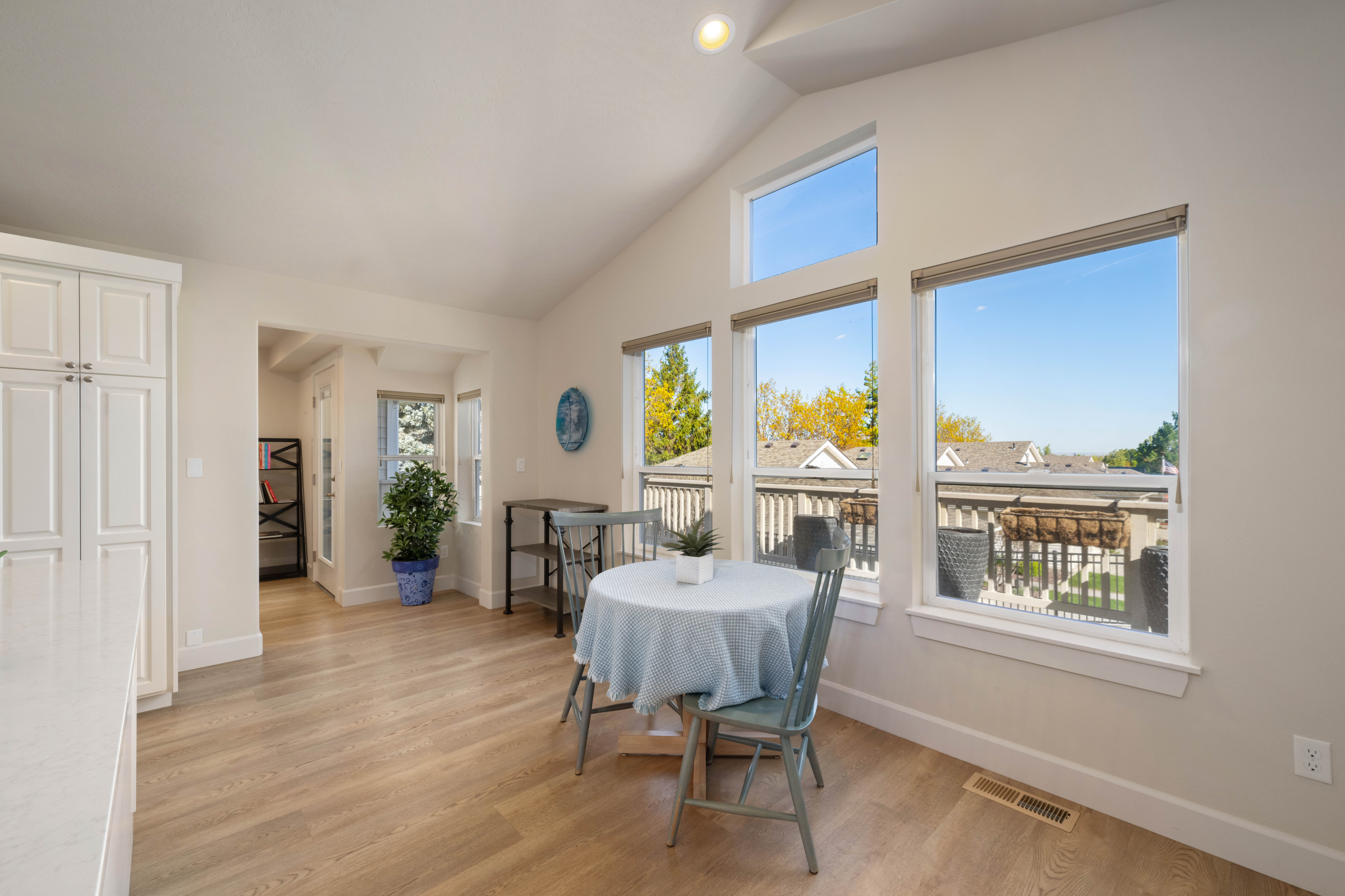 Welcome to easy, elevated living in this beautifully remodeled home located in a desirable 55+ community. Thoughtfully updated throughout by AR Feser, every detail has been carefully curated for both style and function. Step inside to find wood laminate flooring flowing seamlessly throughout, complemented by gorgeous quartz countertops and all-new cabinetry across the entire home. The kitchen shines with a classic tile backsplash and updated stainless steel appliances. The spacious kitchen is not only stylish but also functional, offering room for a small table and chairs or a comfortable sitting area. A built-in feature provides the perfect space for TV, books or display-making it an inviting hub of the home. Both bathrooms feature unique designer touches—including a creative blue tile backsplash in the guest bath and a striking blend of turquoise and gray in the primary suite. The spacious primary bathroom offers a walk-in tile shower, and a striking blend of turquoise and gray tile backsplash. The primary suite includes a custom-organized walk-in closet, creating a true retreat. You’ll also appreciate the added convenience of built-in cabinetry and a bench in the laundry room, along with all new woodwork, baseboards, and doors throughout the home. Enjoy your morning coffee in the charming front courtyard—perfect for flowers and relaxing—or entertain on the large open deck just off the kitchen. This 2-bedroom, 2-bath home with a dedicated office also includes a 2-car garage with built-in cabinets and a water softener for added comfort and convenience. .Beautifully updated, thoughtfully designed, and move-in ready.