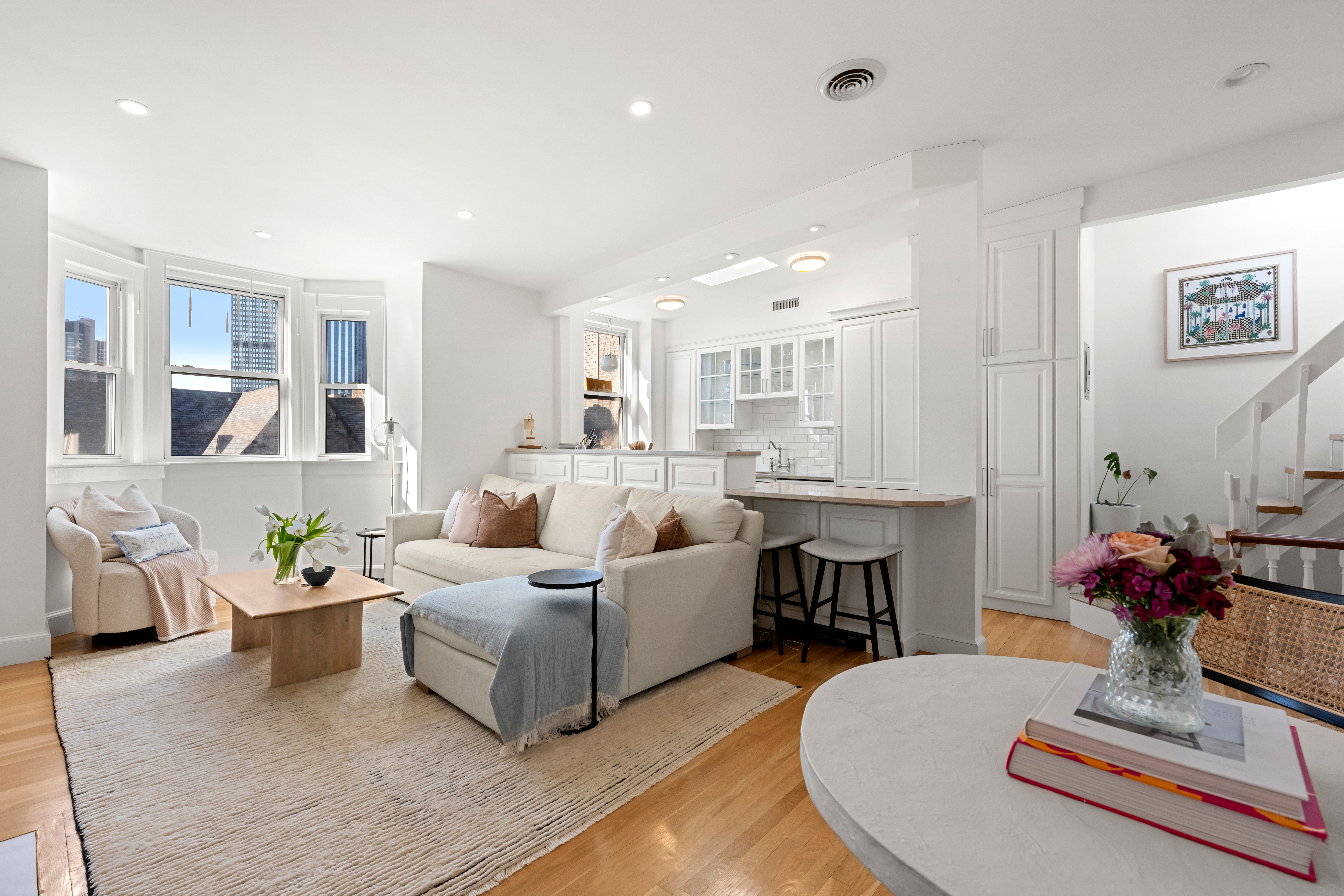 Perched in a classic brownstone on Columbus Avenue in the heart of the South End, this beautifully updated two-bedroom penthouse offering an exceptional blend of light, scale, and iconic Boston views. The sun-drenched home features an open-concept layout with oversized windows framing striking views of the Back Bay skyline and a historic cathedral below. A designer kitchen offers white cabinetry, stone countertops, integrated appliances, and a skylight that fills the space with natural light. Well-proportioned bedrooms and a renovated bath with clean, modern finishes and vaulted ceilings create a comfortable and elevated retreat. The showpiece of the home is the newly completed private roof deck. Expansive and beautifully finished, it offers multiple seating and dining areas with sweeping panoramic views. Located just moments from the South End’s renowned restaurants, this penthouse presents a rare opportunity to own a turn-key home in one of Boston’s most sought-after neighborhoods.