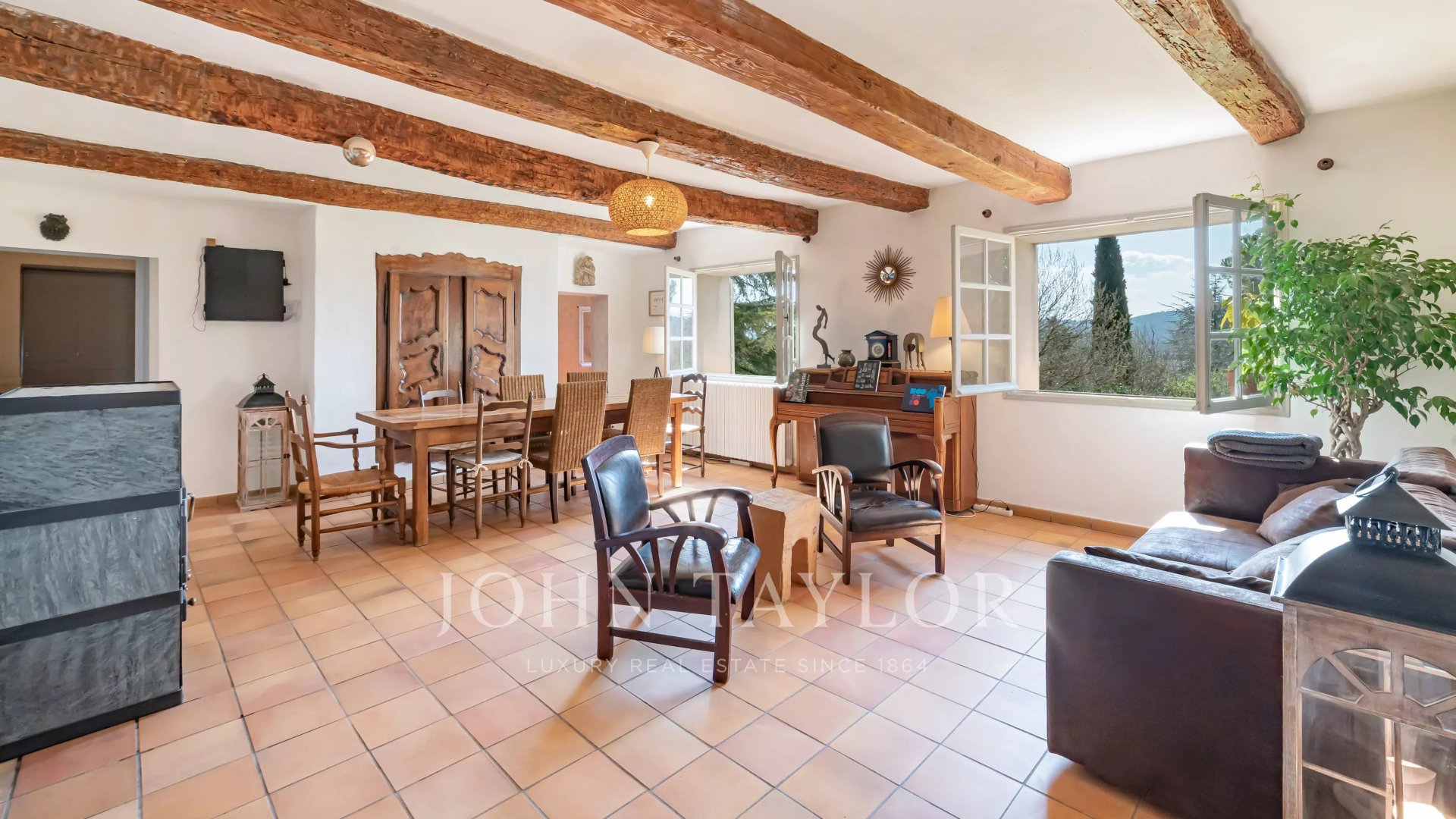 Located in a preserved natural environment, in the heart of the Tourrettes countryside and just a few minutes from the prestigious Terre Blanche golf course, this character property extends over a domain of approximately 4.4 hectares and offers a rare living environment, combining charm, authenticity, and tranquility.This former estate, dating back to the 17th century, consists of two independent dwellings of approximately 220 m² and 200 m² each. The main house offers spacious rooms and a warm living environment, while the second dwelling allows for independent hosting of family and friends or considering an additional project. The total includes six bedrooms and several living spaces, offering many layout possibilities according to needs.Outside, the estate is appealing due to its natural environment, vast spaces, and peaceful atmosphere. The property includes a pool, a garage, and several annexes, including cellars and storage areas, completing the overall setup.This charming property, full of history, is a rare opportunity for lovers of nature and character properties, seeking a unique living place in a privileged environment.