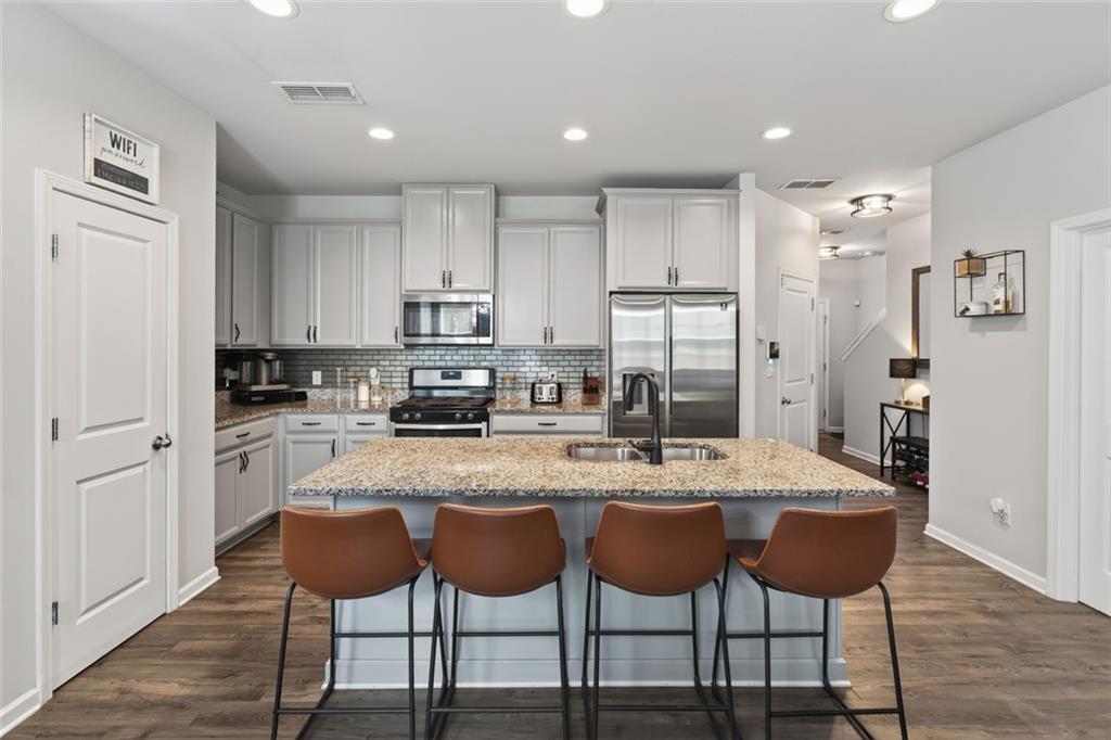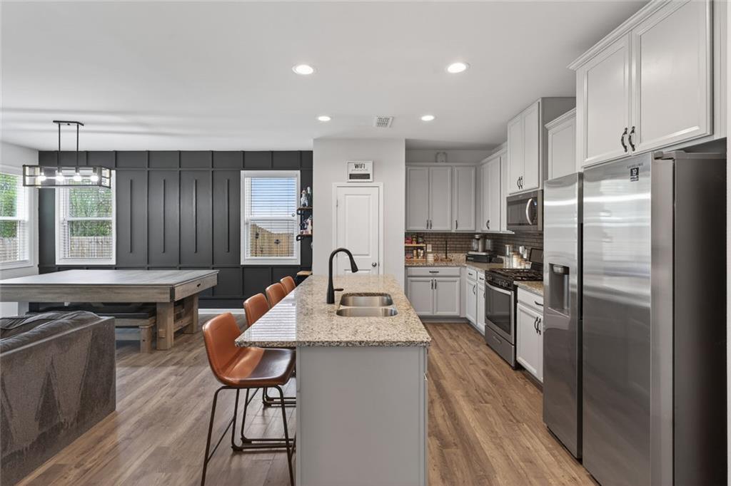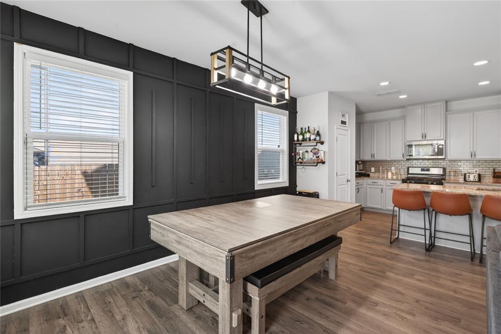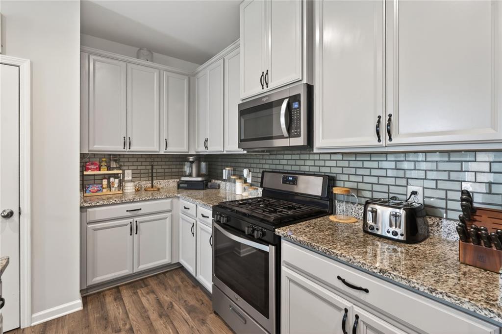 This well-maintained 2020 home offers 1,851 square feet of modern living with an open, functional layout. The kitchen stands out with granite countertops, shaker cabinets, a stylish backsplash, plus a large island and bar perfect for entertaining. A cozy fireplace anchors the living room, while the primary bedroom features a tray ceiling for added elegance. The home includes three bedrooms, two and a half bathrooms, and a spa-like bath with double vanity and walk-in shower. Conveniently located near shopping and dining at Arbor Place Mall and surrounding retail centers, the property also offers easy access to outdoor recreation including Sweetwater Creek State Park, featuring trails, sports facilities, playgrounds, and scenic green space. This home combines comfort, style, and a highly convenient location.