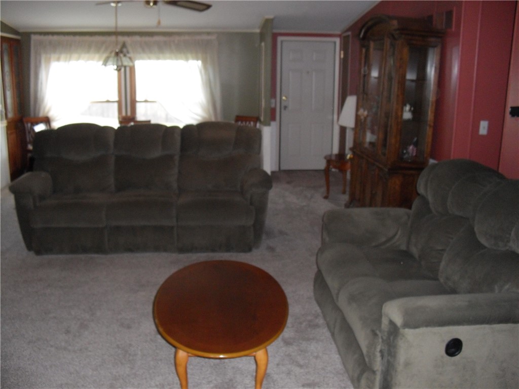 beautiful well maintained modular home. open format spacious living. 3 bedrooms with main and huge master bath.newer carpeting , large covered porch on back with large enclosed sunroom. private country living with awesome view from front porch. large oversized garage with 9 ft high doors. the basement is amazing , 9 ft high ceiling and completely open . owner had a work shop there.