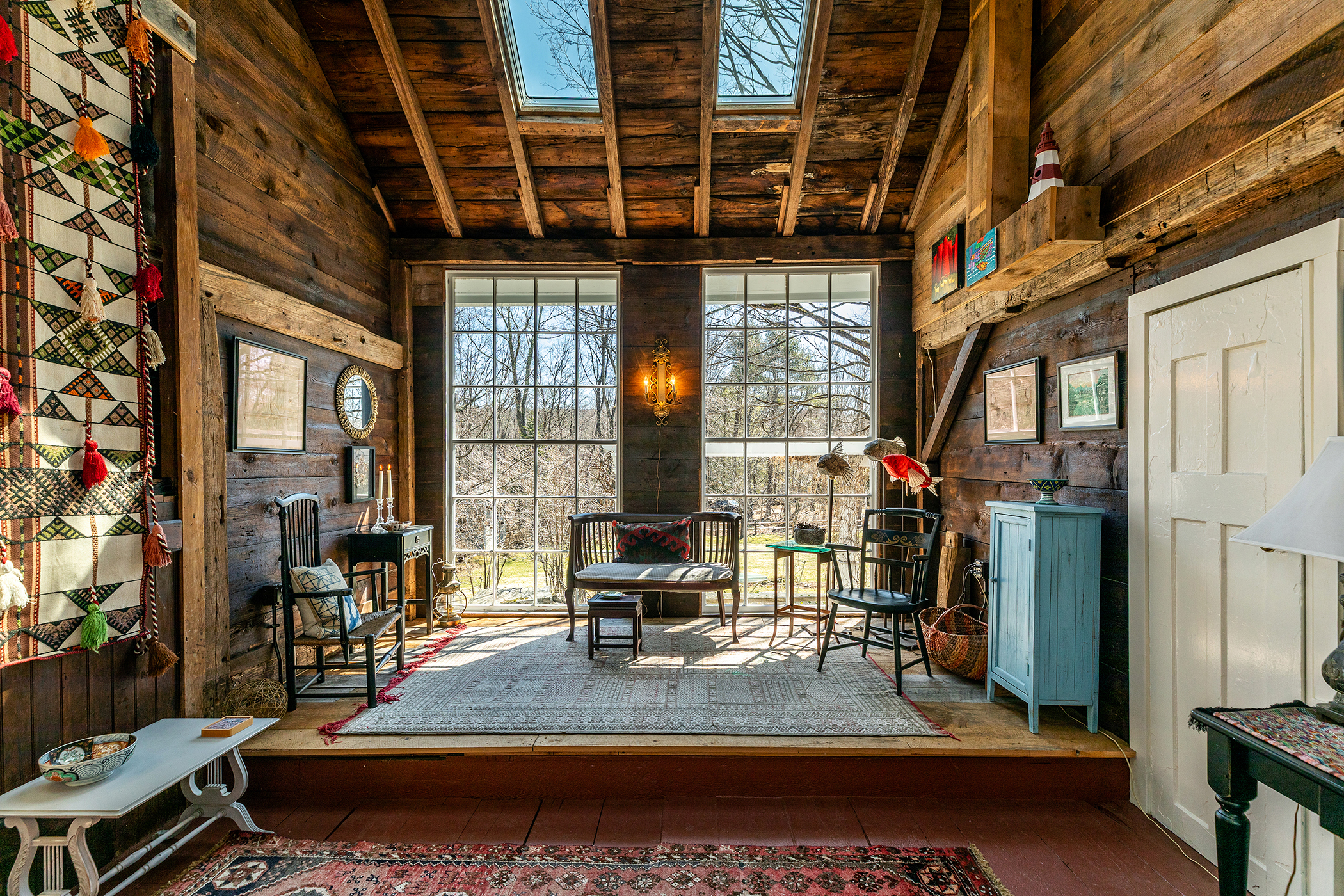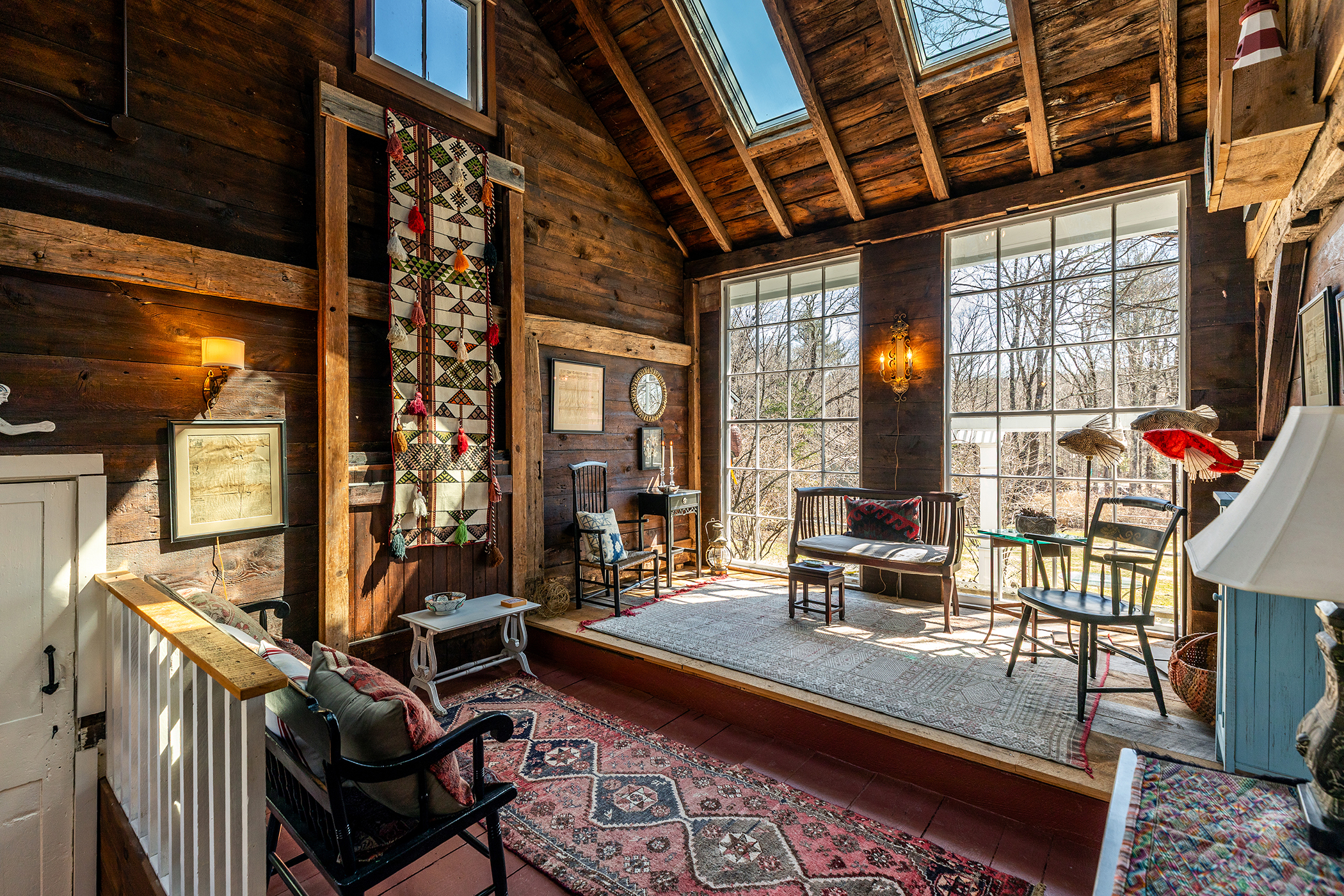 To seamlessly blend indoor and outdoor living, two smaller porches were combined to create an expansive, sun drenched three season porch that looks out over the grounds. Outside, the 1.25-acre property is an absolute sanctuary. Lush perennial gardens are framed by new split rail fencing and custom fieldstone walkways making a space where you want to linger on summer mornings. A rebuilt pergola and a two level back deck offer endless options for outdoor dining with guests. The outbuildings are spectacular in their own right: the middle barn was gutted and reimagined with four huge skylights and massive 12-foot windows salvaged from a Rhode Island yarn mill. An adjacent old barn was completely rebuilt into a secure, cement floored garage with a custom wood overhead door, brilliantly preserving the antique stonewalls and original timber beams. What truly sets this property apart are the invisible, structural upgrades that ensure decades of worry-free living. Every single system is brand new: electrical, plumbing, a high-efficiency hot air and central AC system. Come enjoy the enchanting lifestyle of Hartland. Right on the border of Litchfield County, it offers the very best in country living. Fishing in the nearby rivers, hiking in the Tunxis Forest. Moments from coffee and dinner in the darling town of Hartland which will transport you to a time of a slower pace and a simple ease.