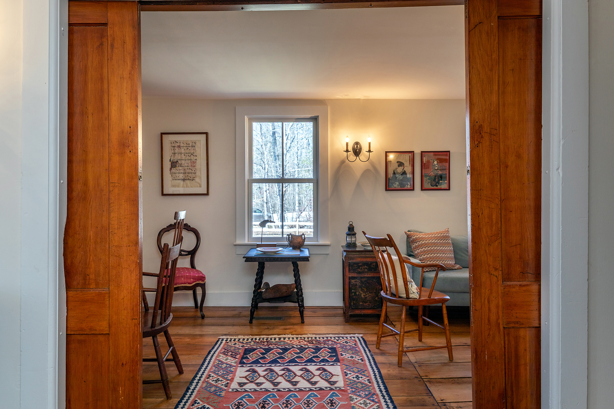 Introducing: Fawns Leap, a masterclass in historic preservation. Following an exhaustive, $1.5 million meticulous restoration, this property offers a rare real estate dream: the undeniable charm and soul of an antique home, with absolutely none of the discomforts, drafts, or maintenance costs of one. Stripped down to the studs and thoughtfully rebuilt, the exterior boasts completely new sheathing, classic wood clapboards, and all new Anderson windows. Step through the bespoke mahogany front door into a newly created entry hall that welcomes you with warmth and elegance. The interior has been artfully reimagined for modern living while fiercely protecting its heritage. Original doors, pocket doors, and historic fireplace mantels were retained, and layers of old flooring were stripped away to reveal breathtaking, original wood floors throughout. The living room features a cozy propane fireplace and custom bookcases, flowing into a brilliantly reconfigured kitchen. Featuring custom cabinetry, new appliances, exquisite Taj Mahal Brazilian quartzite countertops, serving as a stunning centerpiece for entertaining. The meticulous attention to detail continues into the private spaces of this 3-bedroom, 3-bathroom home. It features two beautifully renovated bathrooms, plus a newly added, luxurious primary en suite bathroom with Calacatta marble, illuminated by skylights and a custom transom window.