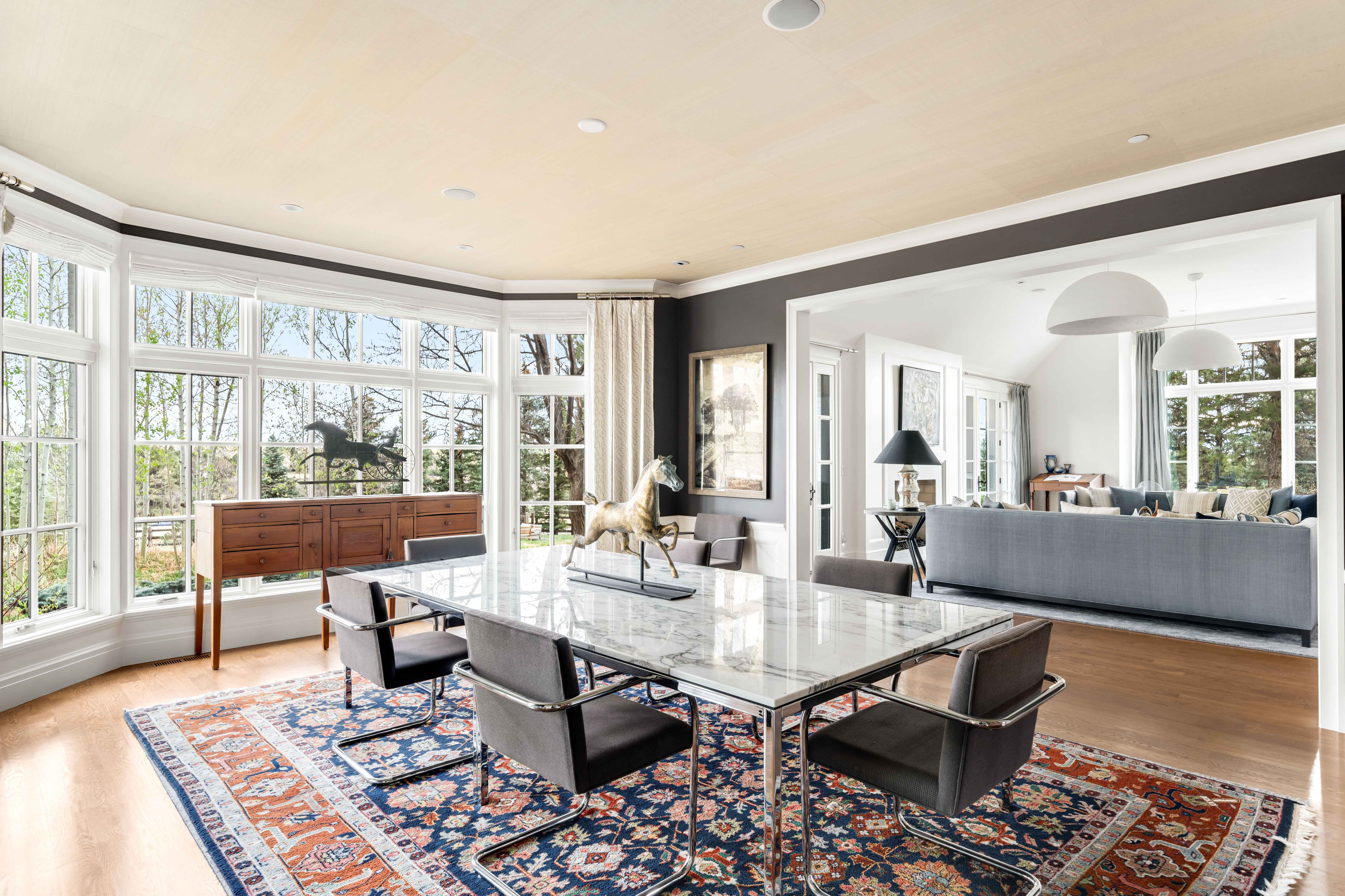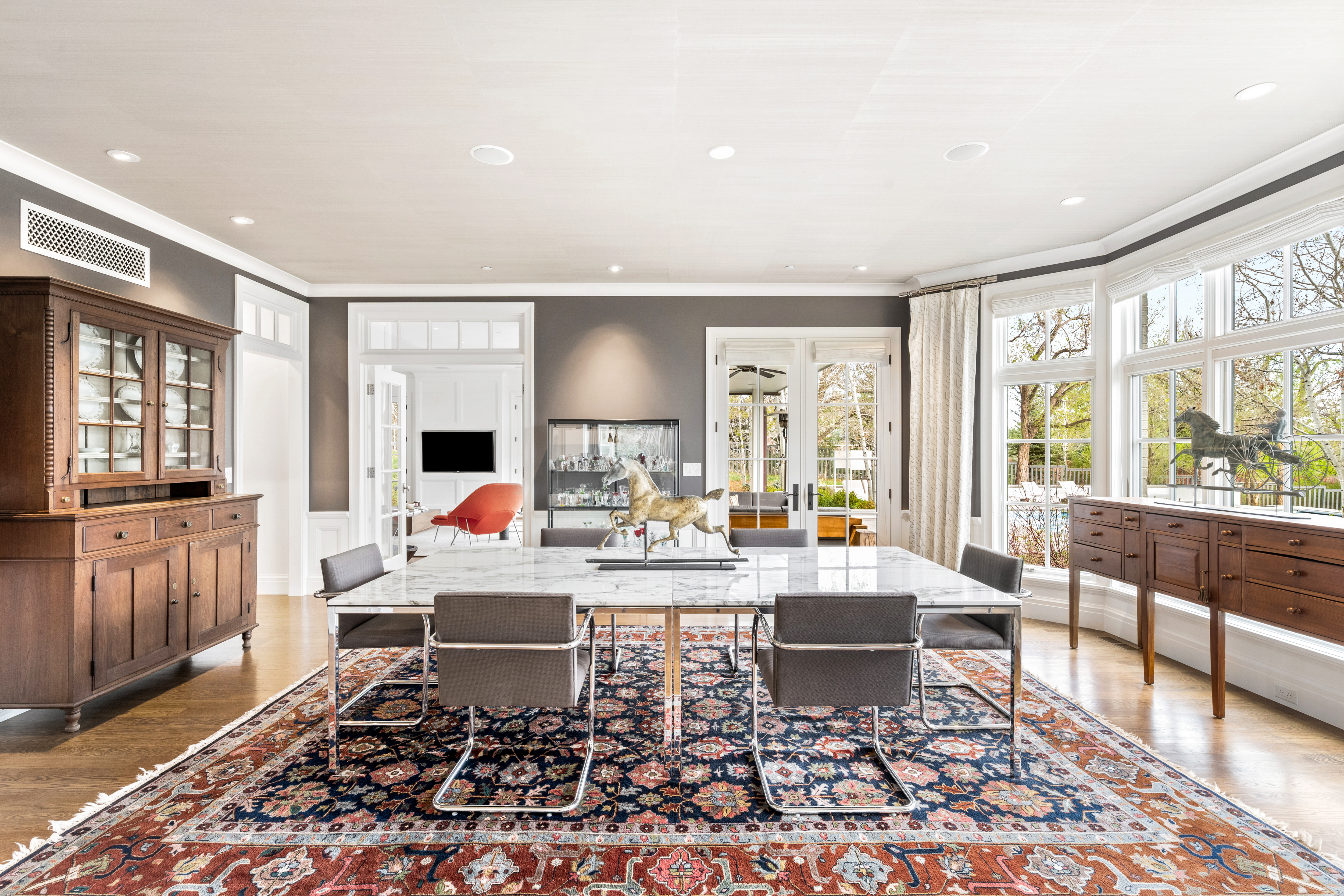 Set behind private gates on nearly 2.5 acres in the heart of Cherry Hills Village, 6 Lynn Road is a refined estate where architectural intention, complete privacy, and the natural beauty of Colorado align seamlessly. A long, manicured approach leads to a residence thoughtfully positioned to capture pastoral views with a backdrop of the mountains framing the property. Inside, the home offers an elevated living experience, where vaulted ceilings, bespoke millwork, and a series of French doors flood the south-facing living spaces with natural light, seamlessly blurring the line between indoors and the expansive outdoor surroundings. The fireside great room, private library, and elegantly scaled living and dining areas are designed to accommodate both intimate moments and larger gatherings with equal ease. At the center of the home, a chef’s kitchen features Wolf appliances, dual ovens and dishwashers, all designed for effortless living and entertaining. Upstairs, the primary suite offers a quiet retreat, oriented to the southern mountains and complemented by a spa-like bath and dual dressing rooms. Additional en-suite bedrooms and a private guest wing provide well-appointed accommodations throughout. The lower level is designed for both relaxation and recreation, featuring a media lounge, wine cellar, impressive fitness studio with sauna, and generous flex spaces. Outdoors, resort-inspired grounds include a pool, sweeping terraces, and expansive lawn areas, all set against a backdrop of the Colorado mountains. Encompassing over 11,700 square feet, this estate represents a rare offering defined by scale, privacy, and a truly exceptional setting.