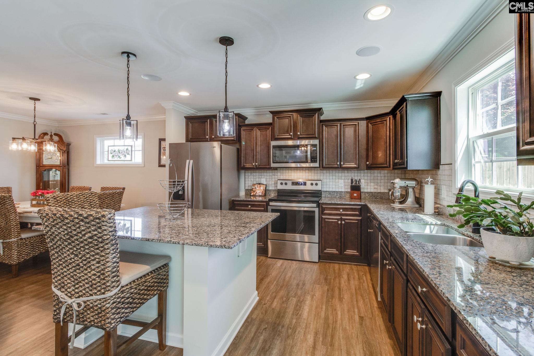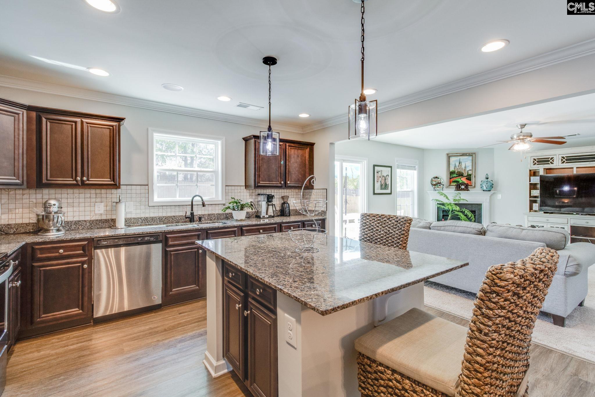 Beautifully designed home in Rutledge Place, full of upgrades and looks and feels brand new! This 5 bedroom, 3 full bath home has been meticulously maintained. The welcoming curb appeal stands out with mature landscaping featuring azaleas, crepe myrtles, and established flower beds. The main living area features an open floor plan with a large great room with gas fireplace, and seamless flow into the dining area and kitchen. The kitchen is well-appointed with granite countertops, tile backsplash, stained cabinetry, center island with pendant lighting, recessed lighting, and stainless steel appliances, including a smooth surface cooktop. Luxury vinyl plank flooring runs through the kitchen and dining areas. A first level bedroom gives you flexibility for use as a guest room, office, or anything else you could need! A full bath is located just down the hall for added convenience. Upstairs, a loft area provides additional living space suitable for a second den or play area. The primary suite features box ceilings, a spacious walk-in closet, and a private bath with double granite vanity, soaking tub, and separate shower. Three additional bedrooms and a full hall bath complete the second level. The outdoors are equally impressive, with a private backyard with a full privacy fence and a spacious patio, ideal for entertaining and outdoor living. Additional special features include a tankless hot water heater, 2 car garage and ceiling fans in every room. Rutlege Place is an established community located right in the middle of everything! Less then 4 miles in one direction to "newer Camden" with Starbucks, Walmart and shopping plazas, and almost the same distance in the other direction to Historic Camden with dining, tons of shopping and fun events!