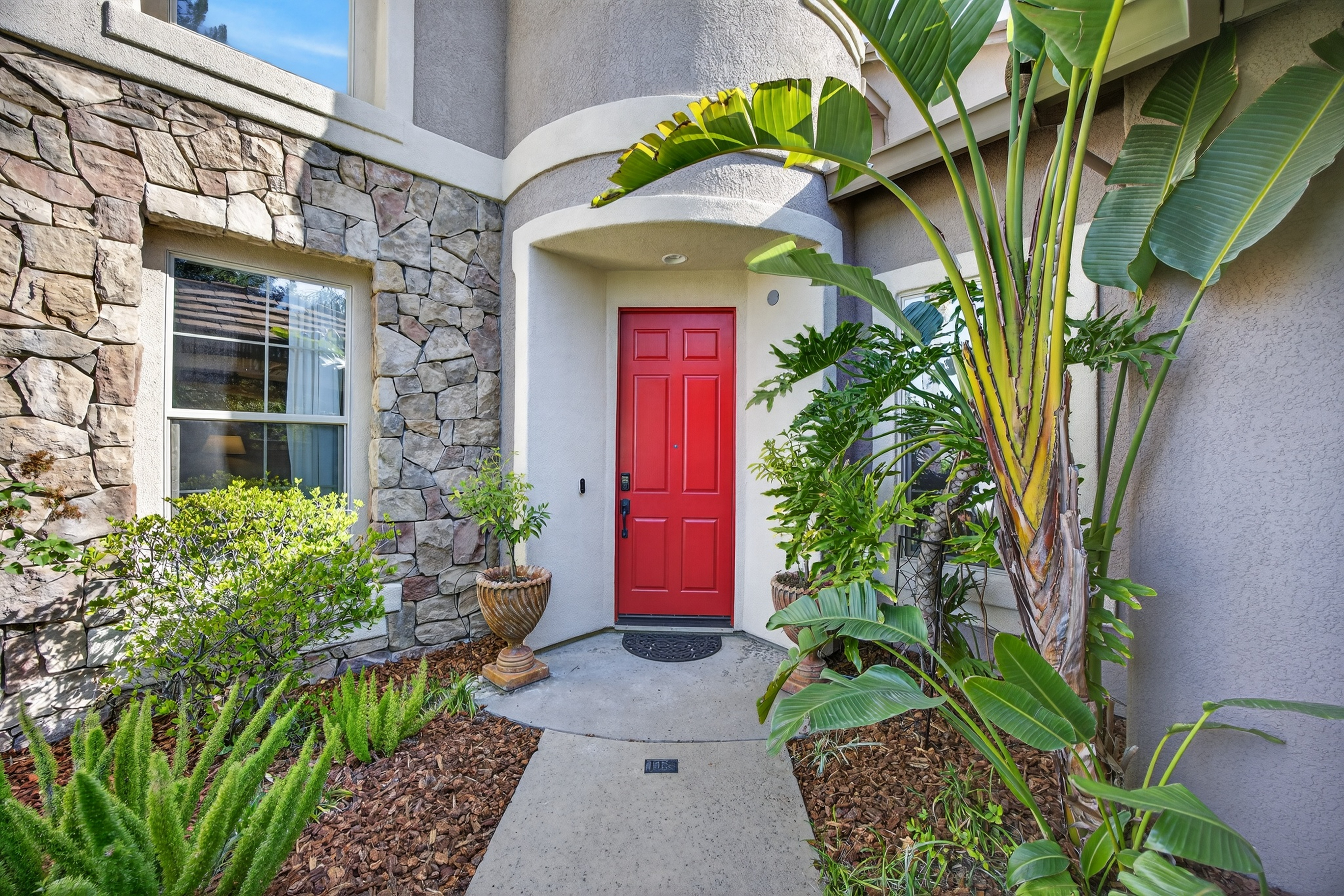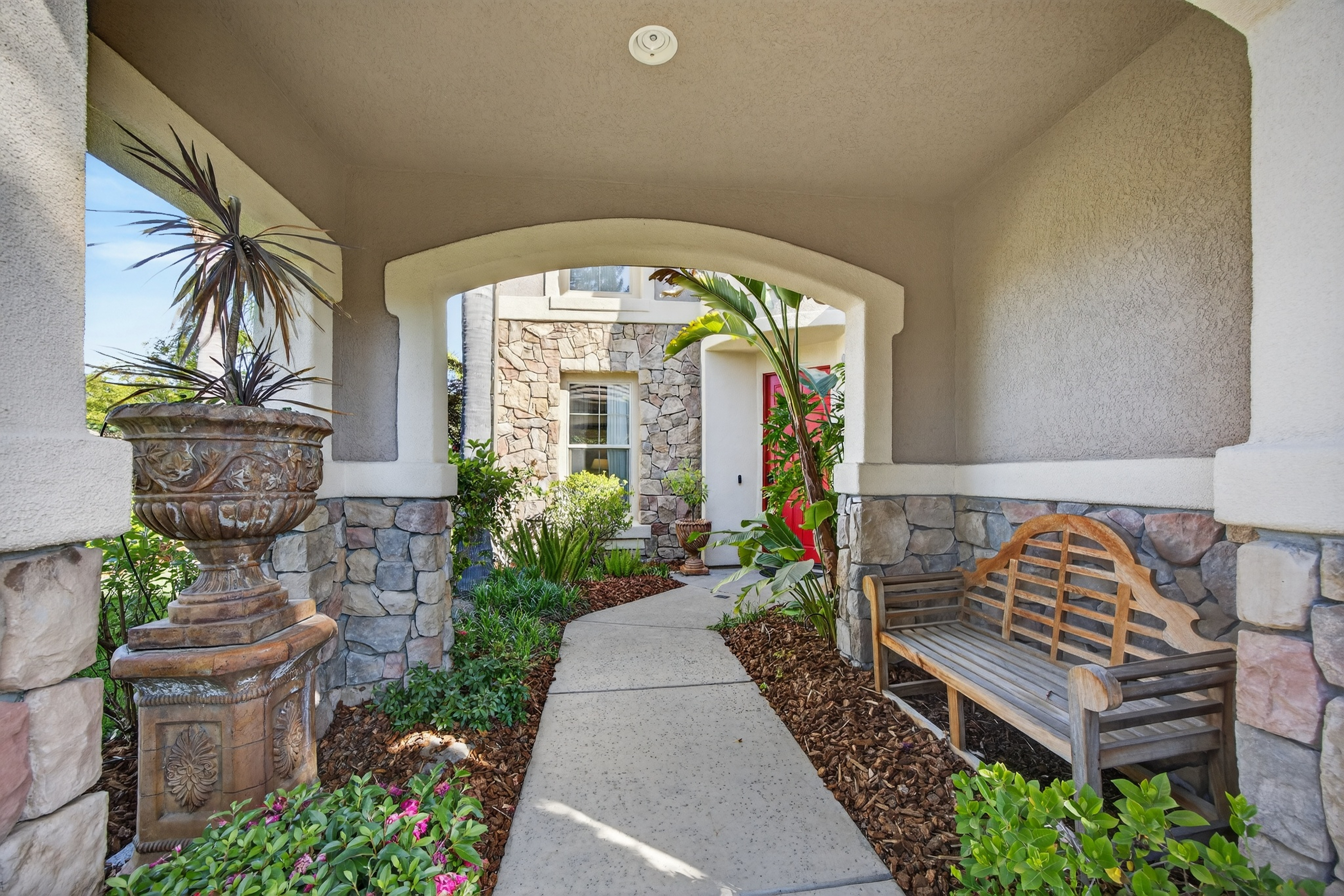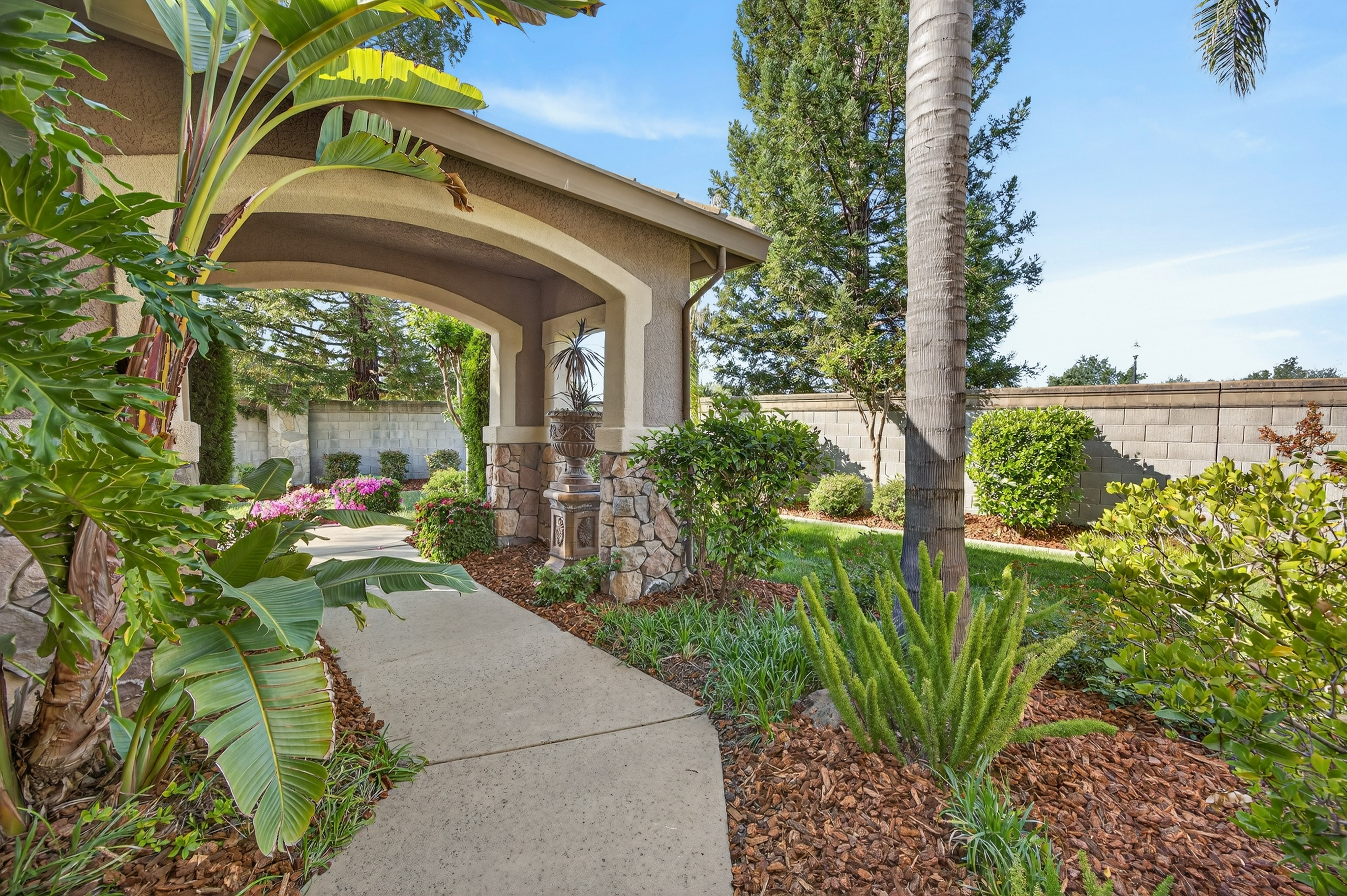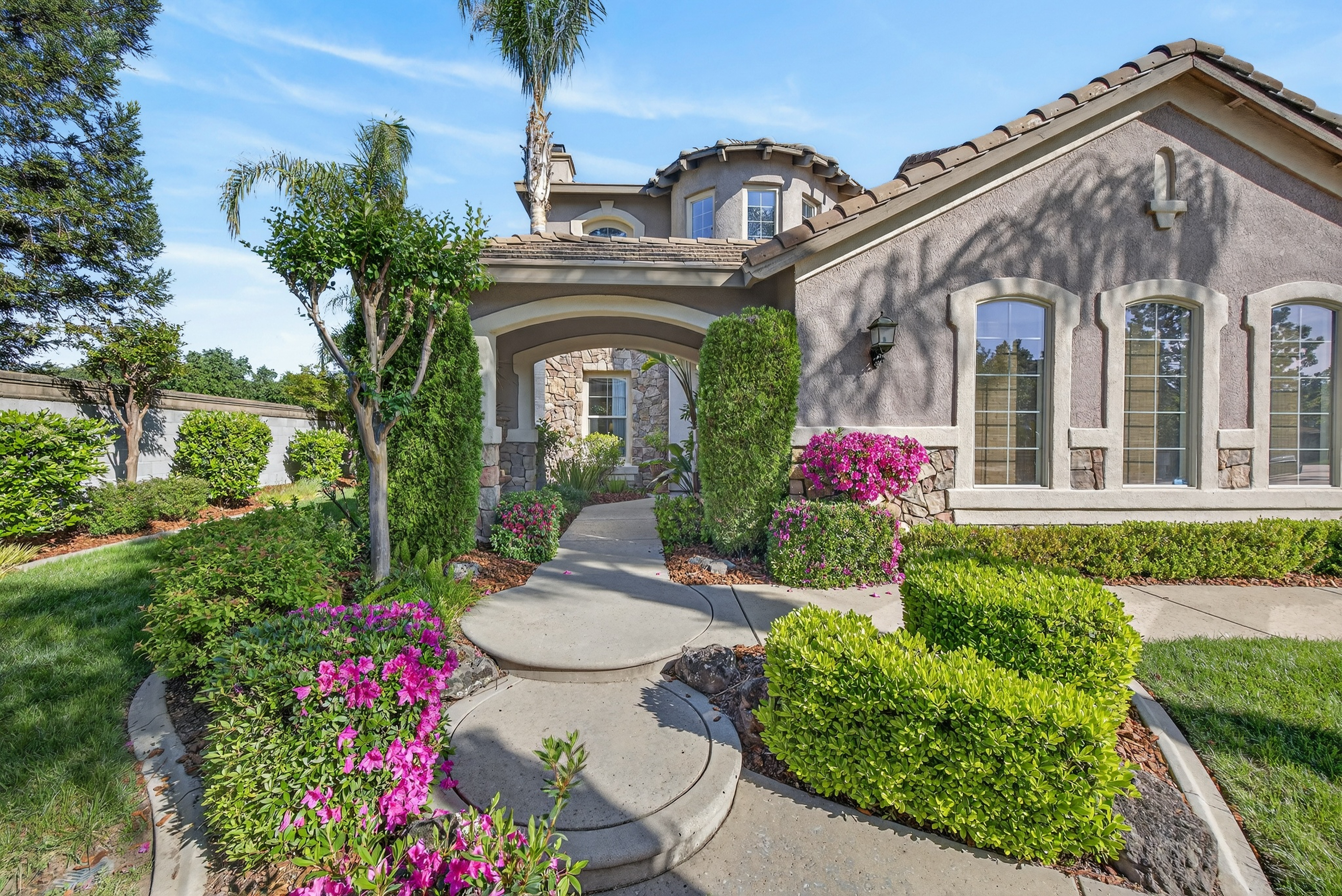 Privately situated within the gated enclave of Esquire at Crocker Ranch, a thoughtfully designed community with dual gated entrances enhancing both exclusivity and a quieter setting, this exceptional residence offers a seamless blend of elegance, comfort, and everyday luxury. Gracefully set on a meticulously landscaped 12,146 sq. ft. lot, the home spans 4,219 sq. ft. of refined living space, where pride of ownership is evident throughout. Natural light fills the interiors, highlighting a timeless aesthetic that feels both warm and elevated. Designed for both intimate moments and effortless entertaining, the main living areas flow with ease. A formal living room with soaring ceilings and a statement fireplace creates an inviting first impression, while the adjoining dining space is complemented by a versatile area ideal for a wine room, card lounge, or library. A private office offers a quiet and functional setting for work or relaxation. At the heart of the home, the kitchen serves as a central gathering place, featuring granite countertops, a generous island with bar seating, and a light-filled casual dining area. It opens seamlessly to the spacious family room, where a second fireplace creates a warm and connected atmosphere. A main-level ensuite bedroom provides flexibility for guests or multigenerational living. Upstairs, the primary suite offers a peaceful retreat with a sitting area and private balcony. Large windows frame calming views of surrounding trees, creating a serene backdrop. The spa-inspired bath features dual vanities, a soaking tub, an oversized walk-in shower, and two walk-in closets. One secondary bedroom includes an ensuite bath, while the others share a well-appointed hall bath. Outdoors, the backyard unfolds as a beautifully landscaped sanctuary, where mature palms and fruit trees surround a sparkling pool with cascading waterfalls. Backing to open space and scenic trails, the setting offers a sense of tranquility and natural beauty. Additional highlights include a three-car garage with epoxy floors, EV charger, low HOA that maintains front landscaping, and the added benefit of Roseville Utility Company services for enhanced efficiency. Ideally located near parks, expansive trail systems, shopping, and dining, and just moments from highly regarded Roseville schools, this home offers an exceptional balance of lifestyle, comfort, and refined living. This is a must see!