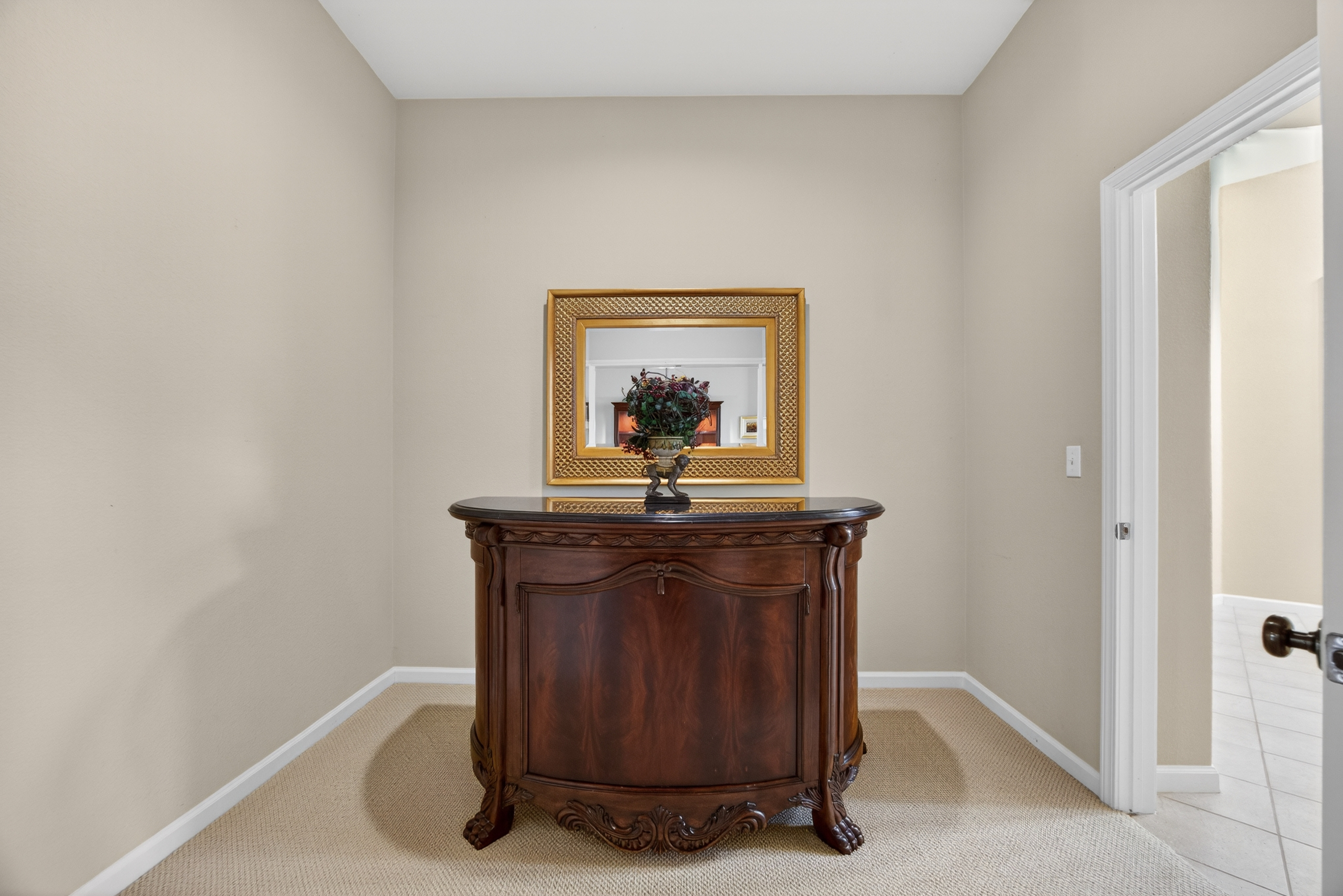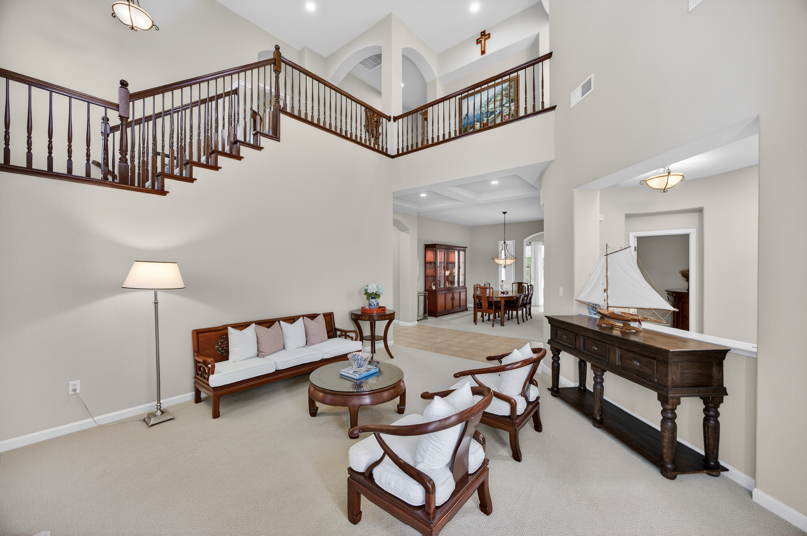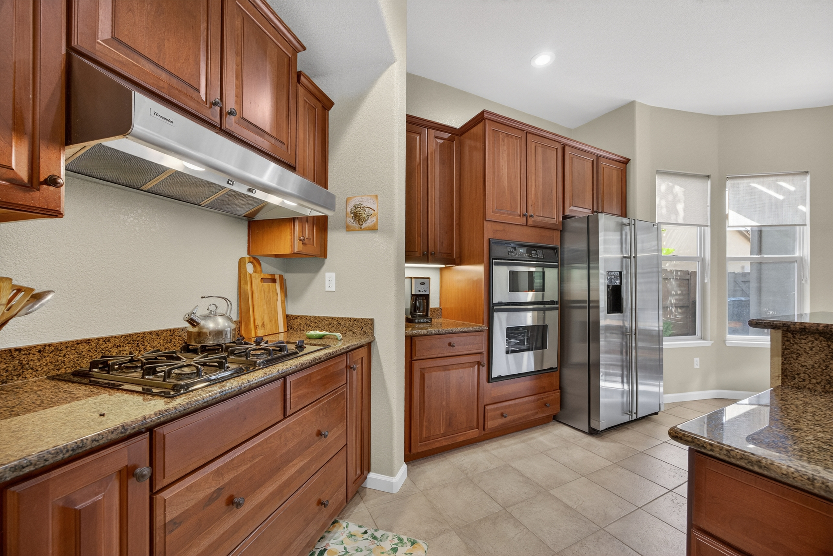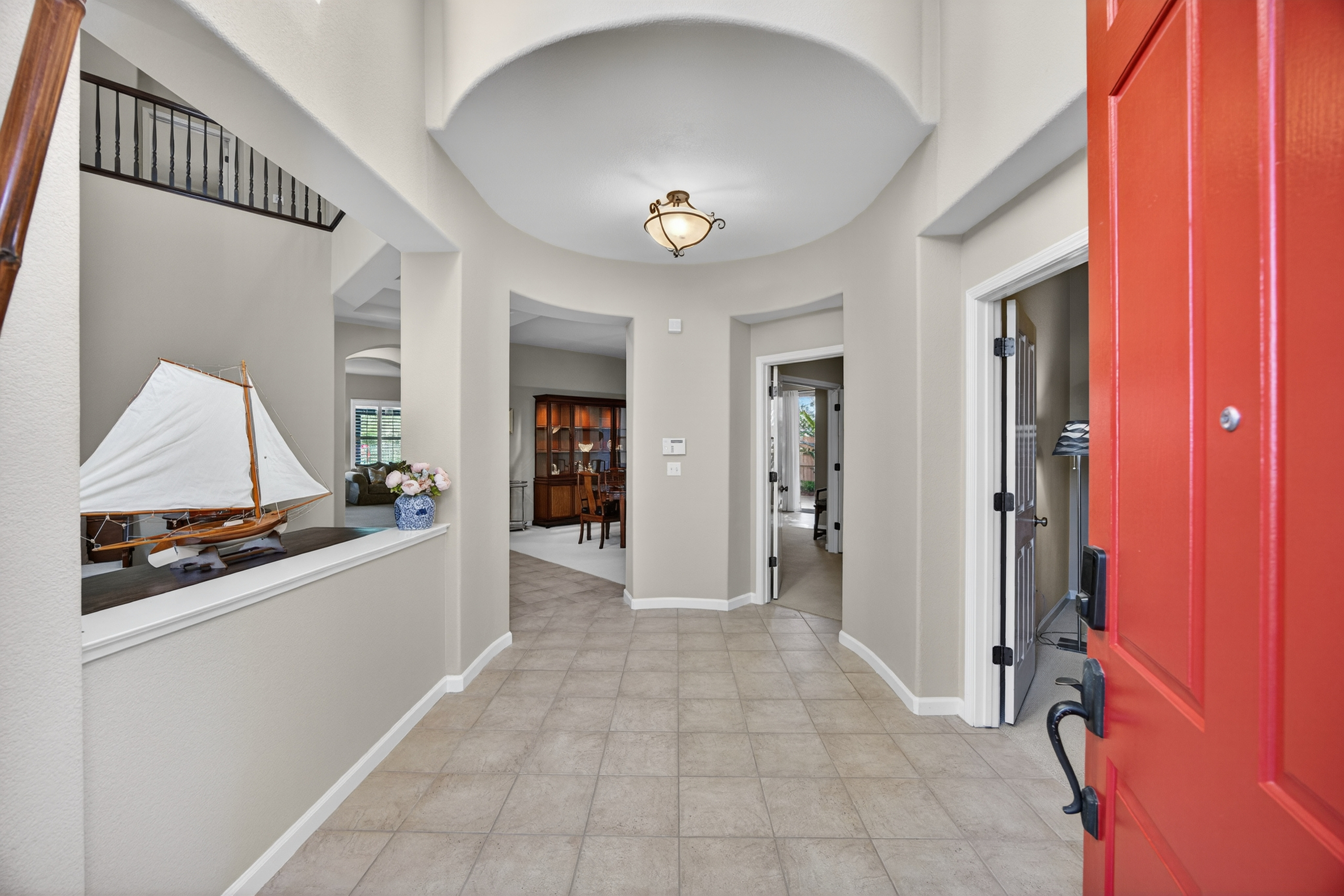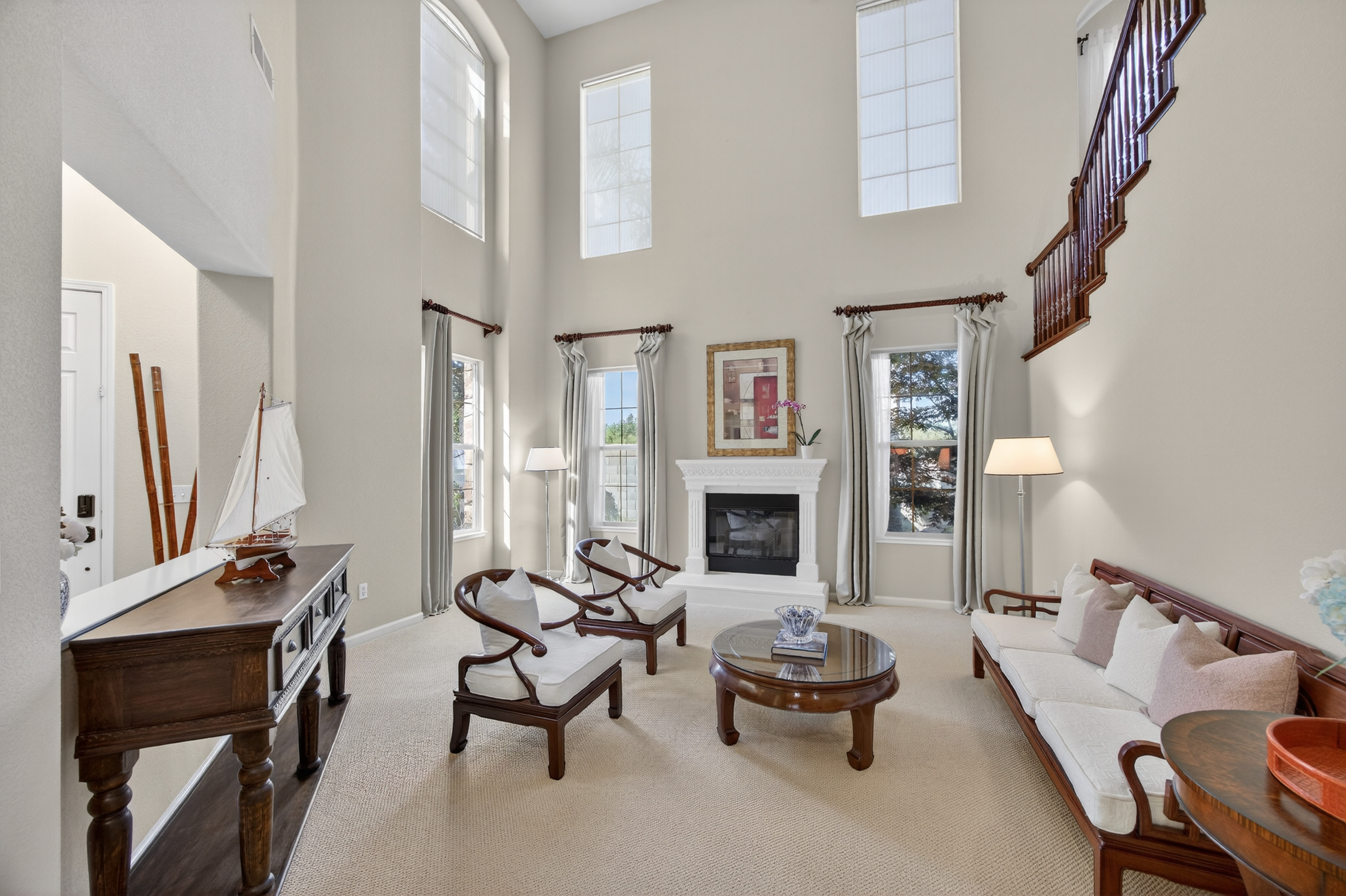 Privately situated within the gated enclave of Esquire at Crocker Ranch, a thoughtfully designed community with dual gated entrances enhancing both exclusivity and a quieter setting, this exceptional residence offers a seamless blend of elegance, comfort, and everyday luxury. Gracefully set on a meticulously landscaped 12,146 sq. ft. lot, the home spans 4,219 sq. ft. of refined living space, where pride of ownership is evident throughout. Natural light fills the interiors, highlighting a timeless aesthetic that feels both warm and elevated. Designed for both intimate moments and effortless entertaining, the main living areas flow with ease. A formal living room with soaring ceilings and a statement fireplace creates an inviting first impression, while the adjoining dining space is complemented by a versatile area ideal for a wine room, card lounge, or library. A private office offers a quiet and functional setting for work or relaxation. At the heart of the home, the kitchen serves as a central gathering place, featuring granite countertops, a generous island with bar seating, and a light-filled casual dining area. It opens seamlessly to the spacious family room, where a second fireplace creates a warm and connected atmosphere. A main-level ensuite bedroom provides flexibility for guests or multigenerational living. Upstairs, the primary suite offers a peaceful retreat with a sitting area and private balcony. Large windows frame calming views of surrounding trees, creating a serene backdrop. The spa-inspired bath features dual vanities, a soaking tub, an oversized walk-in shower, and two walk-in closets. One secondary bedroom includes an ensuite bath, while the others share a well-appointed hall bath. Outdoors, the backyard unfolds as a beautifully landscaped sanctuary, where mature palms and fruit trees surround a sparkling pool with cascading waterfalls. Backing to open space and scenic trails, the setting offers a sense of tranquility and natural beauty. Additional highlights include a three-car garage with epoxy floors, EV charger, low HOA that maintains front landscaping, and the added benefit of Roseville Utility Company services for enhanced efficiency. Ideally located near parks, expansive trail systems, shopping, and dining, and just moments from highly regarded Roseville schools, this home offers an exceptional balance of lifestyle, comfort, and refined living. This is a must see!