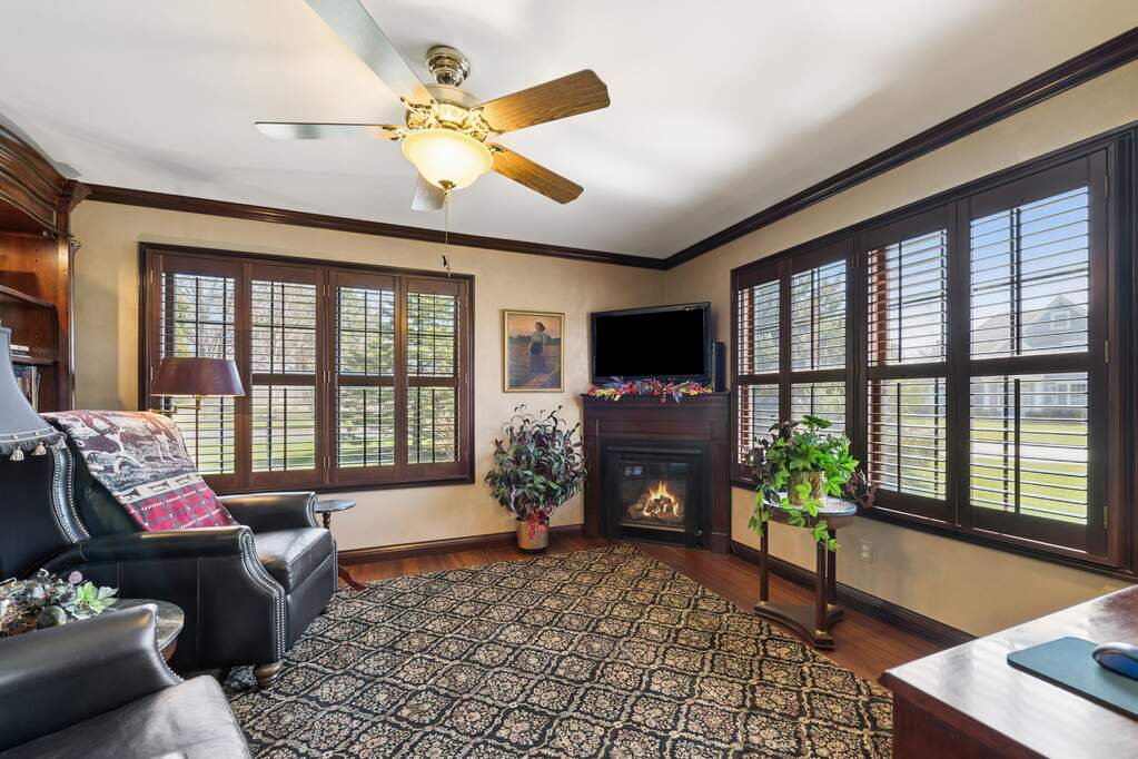 Impressive 5BR/3.5BA custom home blending craftsmanship and effortless living on a beautifully manicured half acre. The open concept main level showcases rich American walnut flooring, living rm w/FP & well-appointed kitchen w/oversized island, SS appl & upgraded cabinetry. Casual and formal dining areas create seamless flow for entertaining. Main level den w/FP & full height bookshelves deliver a library inspired retreat or office. The primary suite offers a spa style bath w/full body shower, whirlpool tub & dual vanities. Upstairs features 4 bedrooms (one ideal as a bonus family rm) & 2 full baths. Lower level has 9' ceilings, plumbed for bath & ready for future expansion. Enjoy summers on the welcoming front porch or backyard patio, located just minutes to Geneva Lake and Fontana Beach.