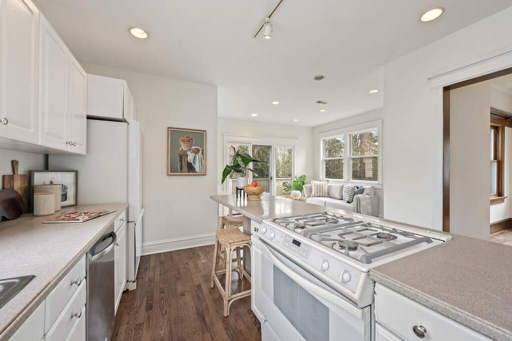 Coveted East Winnetka location just two blocks from Tower Road Beach! This charming 5-bedroom, 3.1-bath home offers timeless character and wonderful living space, complete with an inviting front porch. The living room showcases a coffered ceiling, oversized wood-burning fireplace, and beautiful period millwork. A bright sunroom with built-in bookcases provides the perfect retreat. Hardwood floors run throughout the first floor, which also features a spacious dining room with a bay window and a kitchen with a breakfast bar that opens to the family room. The family room overlooks the back deck and yard-ideal for everyday living and entertaining. A powder room completes the main level. The second floor offers four bedrooms, including a generous primary suite with built-in storage, two closets, and a private bath. Three additional bedrooms share a hall bath; one features a bay window, and one is currently being used as an office. All bedrooms offer ample closet space. The third floor includes a charming treetop bedroom, a full bath, and additional attic storage. An unfinished basement provides endless potential to expand your living space. Unbeatable location close to Hubbard Woods Metra, steps to Tower Road Beach and park, and within the sought-after Greeley Elementary School district. Don't miss this special home in an A+ location. Property is being conveyed as-is.