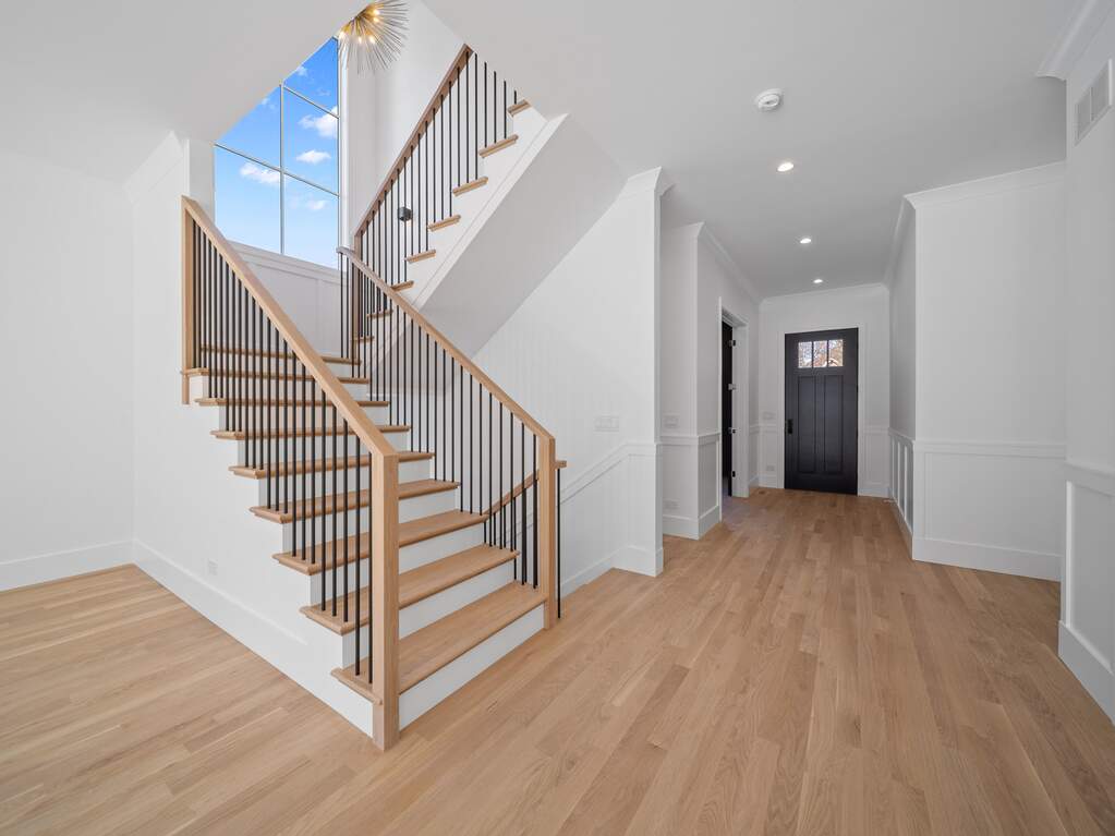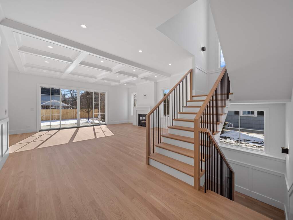 A statement of refined new construction set on one of Glenview's most sought-after streets, this architecturally tailored residence delivers a seamless blend of timeless craftsmanship and modern luxury across three impeccably finished levels. From the moment of entry, a gracious foyer adorned with paneled millwork, crown detailing, and warm hardwood floors sets an elevated tone, unfolding into interiors curated for both everyday living and elegant entertaining. A private office framed by French doors and a richly detailed dining room with tray ceiling offer sophisticated gathering spaces, while a thoughtfully designed butler's pantry-complete with leathered quartzite surfaces, wine refrigeration, and illuminated cabinetry-provides a polished transition into the showpiece kitchen. Taj Mahal quartzite crowns custom inset cabinetry, anchored by a substantial island designed for connection and conversation. Professional-grade appliances including a Wolf range, Sub-Zero refrigeration, Bosch dishwasher, and statement vent hood are complemented by a walk-in pantry and curated storage solutions, marrying beauty with performance. The adjoining family room, defined by a coffered ceiling and striking herringbone tile fireplace, opens effortlessly through sliding glass doors to a paver patio, creating a natural extension of the home's living space. A refined powder room and a highly functional mudroom with custom built-ins complete the main level. Upstairs, the primary suite serves as a private sanctuary, elevated by vaulted ceilings, dual custom walk-in closets, and a spa-inspired bath featuring heated marble floors, dual vanities, an oversized marble shower with rainfall fixture, and a sculptural soaking tub set beneath designer lighting. Secondary bedrooms are equally considered, including an ensuite retreat with heated floors, a Jack-and-Jill bath with dual vanities and private bathing area, and an additional bedroom with generous storage. A well-appointed laundry room and a skylit bonus room provide flexibility for today's evolving lifestyle needs. The fully finished lower level continues the home's commitment to thoughtful design, offering a spacious recreation lounge with custom bar and beverage refrigeration, a fifth bedroom with walk-in closet, and a full bath with heated floors and elevated finishes-ideal for guests, extended family, or private retreat. Mechanical systems reflect quality and efficiency, including a high-performance furnace with humidifier, 75-gallon water heater, sump pump, Nest climate control, and concrete driveway. Positioned in a premier in-town location, this exceptional residence offers the rare convenience of being just moments from award-winning schools, neighborhood parks, the public library, vibrant restaurants, boutique shopping, and the Metra station-an enviable walkable lifestyle without compromising privacy or prestige.