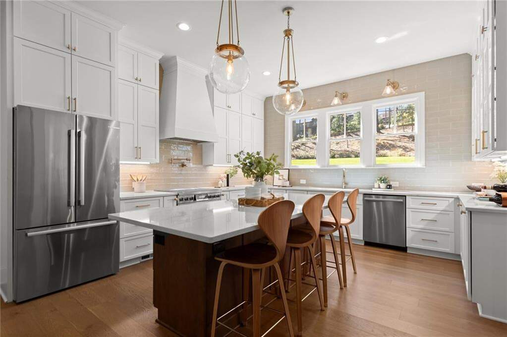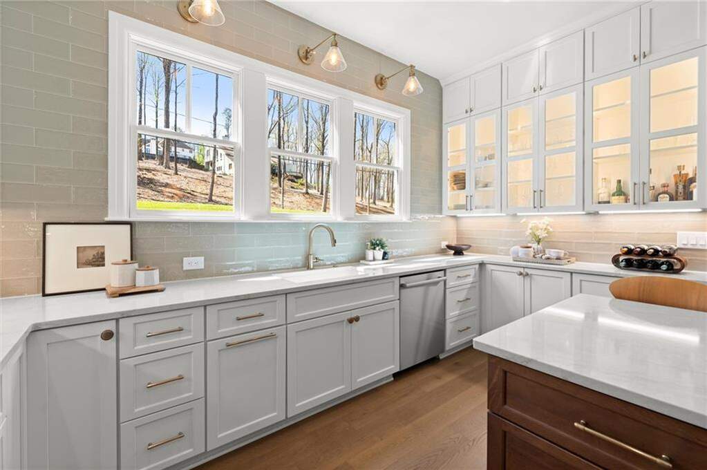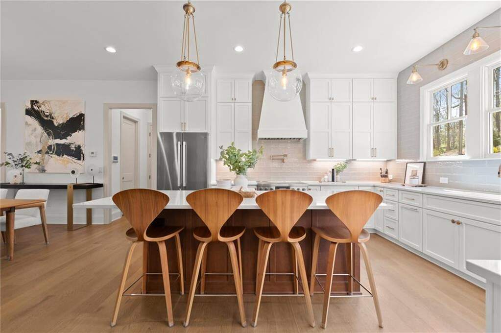 This home includes over $275,000 in new backyard improvements and a gorgeous new basement build-out. Welcome to an extraordinary opportunity in the highly sought-after Whitlock Heights community of Marietta, where this newly constructed luxury home awaits. Nestled on over an acre of meticulously landscaped grounds, this custom-built residence boasts a prime location just five minutes from the vibrant Marietta Square.? As you enter, you are greeted by a sophisticated three-story layout adorned with high-end designer finishes and flowing hardwoods throughout the main levels. The open-concept floor plan seamlessly integrates the living room, dining room, and kitchen, creating an inviting space perfect for relaxation and entertaining. A stunning stone fireplace, complete with a wood mantle and matching floating shelves, anchors the living area, while designer lighting enhances the overall ambiance with bold statement pieces.? The gorgeous kitchen features top-of-the-line selections, including custom cabinetry and gorgeous quartzite counter tops. A spacious oak center island provides ample space for food prep and casual gatherings. Glass-front cabinetry with backlighting adds a touch of elegance, complemented by a stunning range hood and ceiling-height backsplash tile that creates a striking visual effect.? Adjacent to the main living area, a large outdoor deck offers serene views of the private backyard, equipped with soaring vaulted wood ceilings, a built-in outdoor kitchen featuring a beverage fridge, sink, and grill-perfect for alfresco dining and entertaining.? On the main floor, you'll find a convenient three-car garage, a beautifully designed laundry room with custom cabinetry, a mudroom drop zone, and a spacious custom walk-in pantry. A welcoming guest bedroom with an en suite bathroom is also located on this level, along with the spacious primary suite. Bathed in natural light, the primary suite features striking pendant bedside lights and a luxurious bathroom experience, complete with a stylish soaking tub, a lavish tiled shower with a bench, abundant storage, and dual sinks. Ascend to the upper level, where a versatile loft area awaits, ideal for use as an office, playroom, or additional sitting space. Here, you'll find three generously sized bedrooms, including a second primary suite with a sitting area and one with an en suite bathroom. Every bathroom is tastefully adorned with gorgeous tile selections and elegant lighting. The highlight of this home is its newly finished basement designed for entertaining. It includes a sophisticated bar with custom cabinetry, an island with bar counter seating, a sink, under-counter beverage fridge, wine fridge, and ice maker. The spacious living room features rustic barn wood accents and a projector screen-perfect for watching sports and movies with friends and family. Elegant iron doors open to an expansive covered outdoor porch that overlooks the newly built out and beautifully landscaped backyard, complete with a fire pit area. The fenced-in backyard is an entertainer's paradise, thoughtfully developed with stone retaining walls and pathways leading to the fire pit. The basement also hosts a full bedroom with a custom closet and en suite bathroom which could also easily be used as a rec room or home gym, plus an additional half bath for guests, and plentiful unfinished storage space. For pet owners, a dedicated dog room with a sink and doggie door ensures convenience. The basement is beautifully finished with stained concrete flooring, making it an ideal gathering space. This exceptional newer home seamlessly combines luxury living with amazing indoor and outdoor entertaining options in a highly sought-after established community in a prime location close to Marietta Square -a truly enviable lifestyle awaits you in this remarkable property.