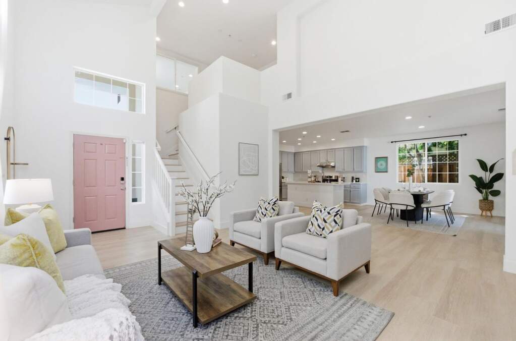 Distinguished 4-bedroom, 2.5-bathroom home located in the Seabreeze Community of Union City. This home brings the best of Union City to your doorstep. This beautifully remodeled residence features an open-concept floor plan designed for entertaining. The heart of the home includes a light-filled living room with dramatic high ceilings and a chef-inspired kitchen equipped with designer cabinetry, a large center island, and luxurious quartz countertops. The grand suite offers a walk-in closet with a streamlined organizer and a spa-like bathroom featuring a dual-sink vanity and a walk-in shower. Additionally, the versatile room off the primary bedroom is ideal for a home office or nursery. Extra-large two-car garage with ample storage space. The home features natural wood-colored flooring throughout and is conveniently located near local shops, restaurants, and amenities.