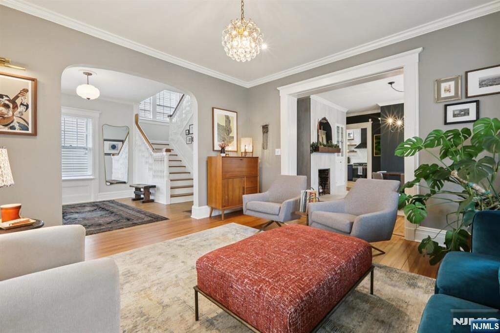 This stunning and spacious Victorian set on a corner lot, lined with charming cherry blossom trees, embodies the sought-after Montclair lifestyle, where the city meets the suburbs. Timeless architectural details greet you at the wraparound porch before entering the double-door vestibule, leading to a grand foyer and impressive staircase. Rich in historic charm - crown moldings, decorative trim, stained glass windows - all thoughtfully integrated with modern updates. Custom built-ins frame the formal study, flowing seamlessly into the dining room with stunning fireplace and large windows that fill the space with natural light. Bright, inviting kitchen offers stainless steel appliances, quartz countertops, and a breakfast bar that opens to a relaxed living area. Full bath and powder room complete the 1st floor, ideal for entertaining. The 2nd floor features four bedrooms and two full baths, including oversized primary, while the 3rd floor offers two additional bedrooms perfect for guests or home office, plus a large walk-in storage room. Basement includes addtl. storage, gym space, laundry, and utility areas. Outside, a serene private patio and gated yard w/ fountain and lush landscaping evoke an English garden. Rare 3-car garage, paved driveway, and bonus shed provide ample parking and storage. Ideally located near the Library, Wellmont Plaza, Chvrch Street, Montclair Center, Bay St and Walnut St NJ Transit. This lovingly maintained 1897 home is a true architectural gem!
