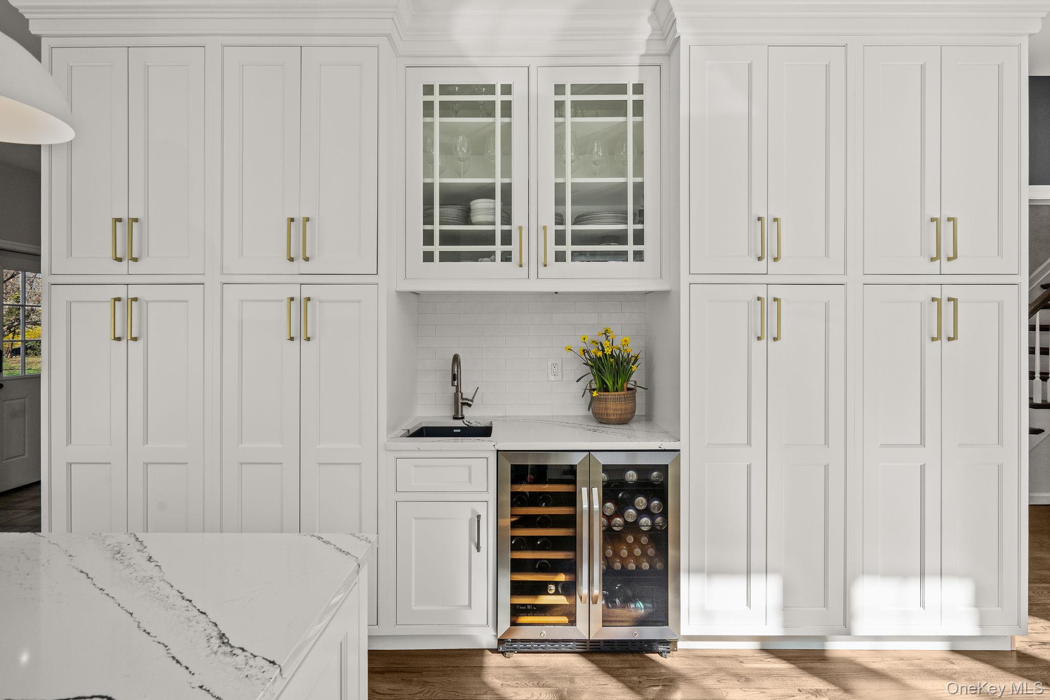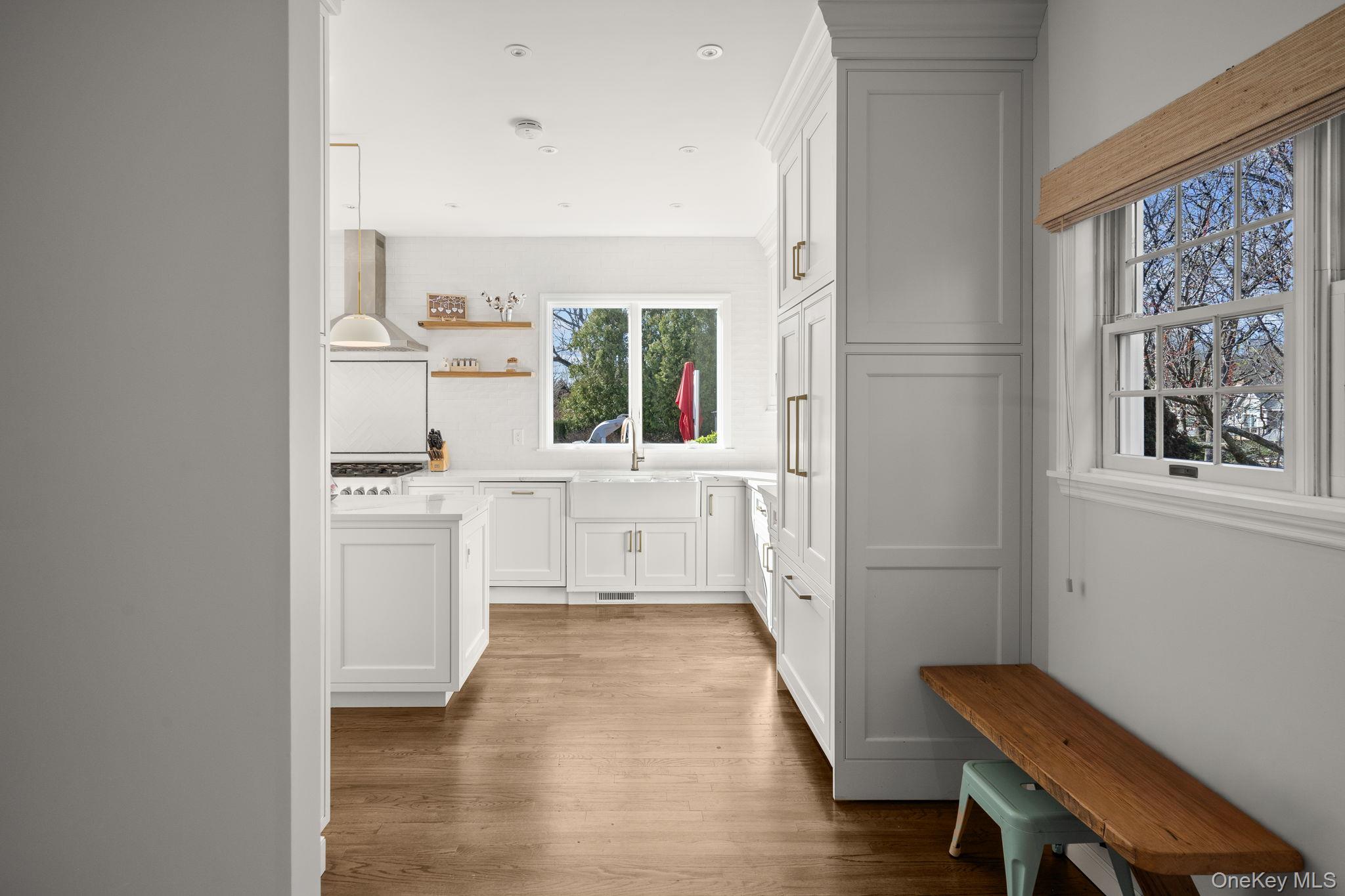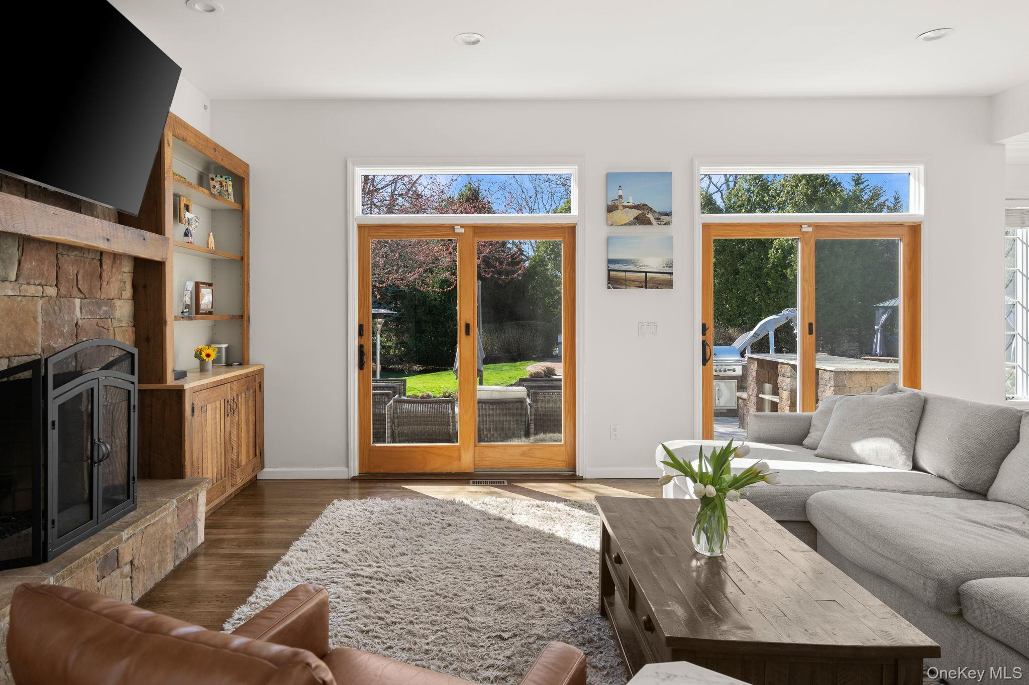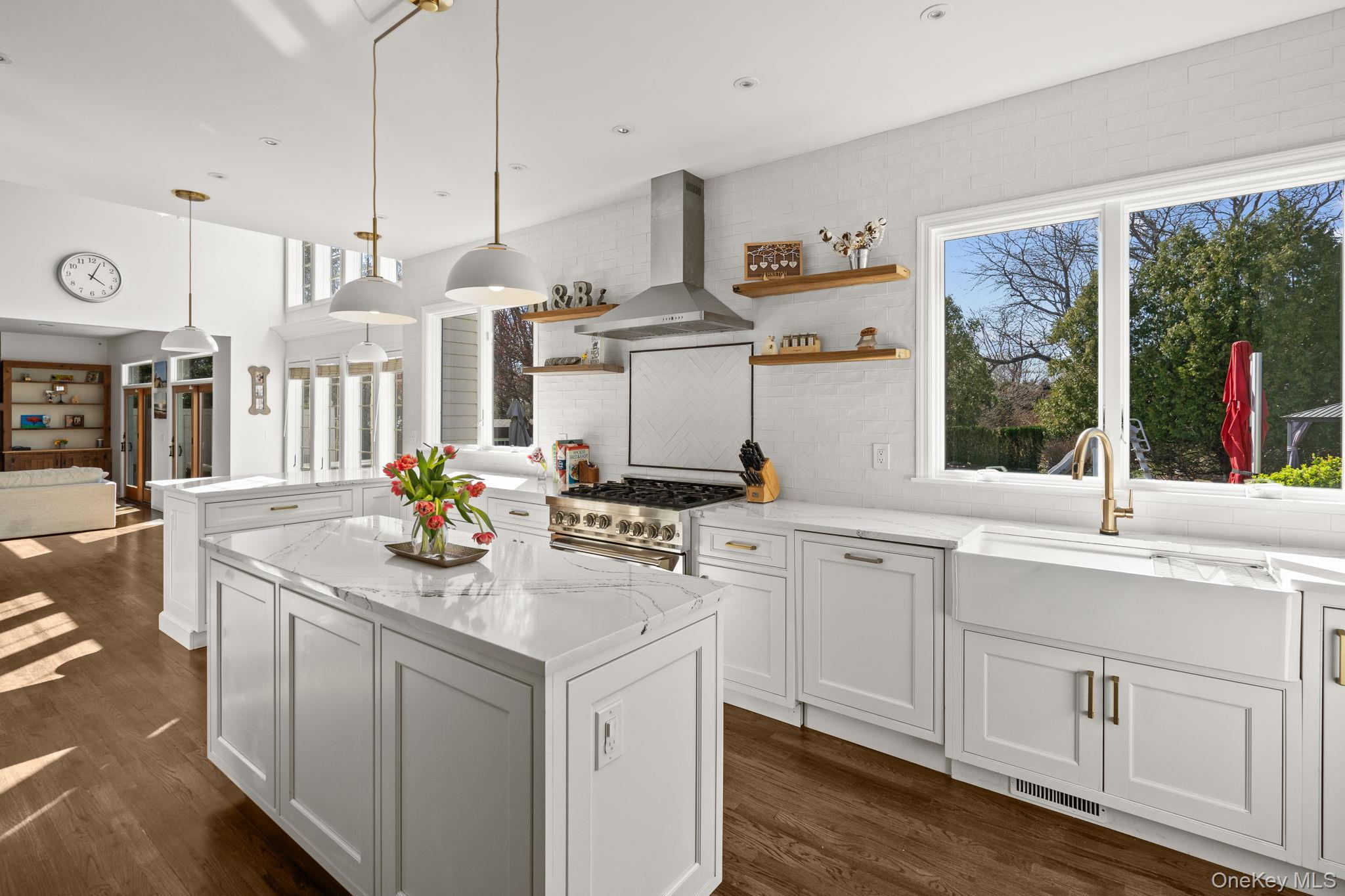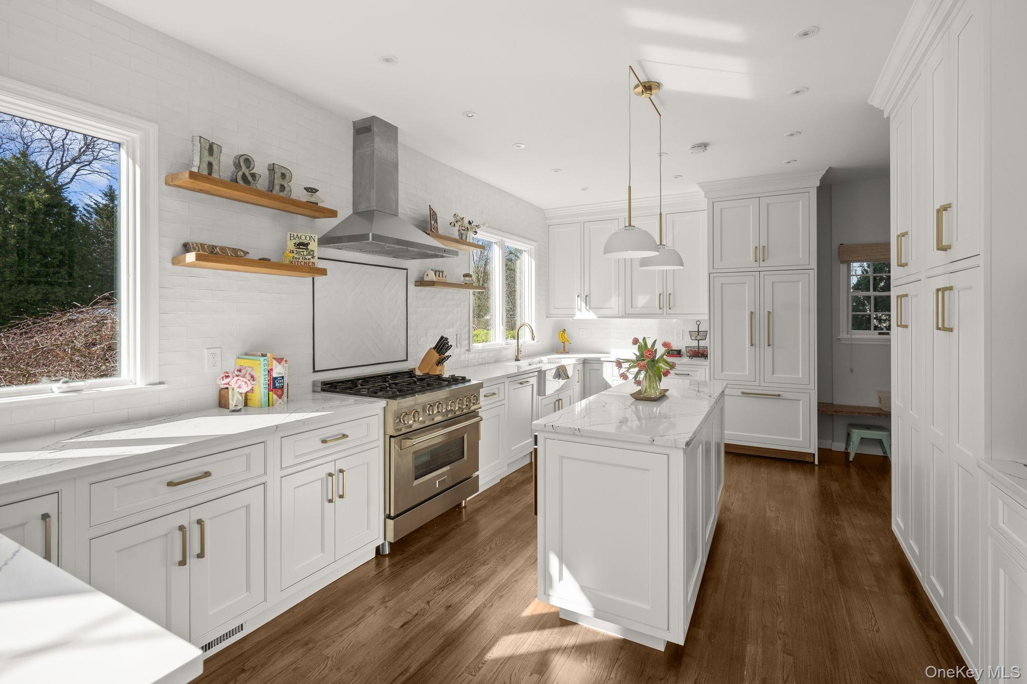Tucked away in Northport, this impeccably cared-for residence offers an impressive combination of scale, ease, and fabulous enhancements, surrounded by bucolic plantings that provide both beauty and a heightened sense of seclusion. A long, gracious entrance driveway sets the tone, leading to a home for refined living and memorable gatherings.The main level is designed with a natural flow, featuring a generous great room, formal dining area, secluded office, inviting den, powder room, and a functional mudroom with laundry, garage access, and a secondary staircase. The centerpiece is a remarkable, newly renovated eat-in kitchen, appointed with quartz surfaces, bespoke cabinetry, a farmhouse sink, wine refrigerator, and a stylish wet bar—perfectly suited for entertaining. On the upper level, the expansive primary suite offers a tranquil retreat with its own bath, while three additional bedrooms and well-designed baths provide comfort and flexibility for residents and visitors alike. The lower level adds even more versatility with high ceilings, fitness area, recreation space, and plentiful storage.Outdoors, the grounds unfold into a secluded retreat, enhanced by lush, pastoral landscaping. A saltwater pool and fully equipped outdoor kitchen create an ideal setting for warm-weather enjoyment or quiet relaxation.Additional features include a whole-house water filtration system, a full-home generator, in-ground irrigation, and natural gas service connected to the outdoor barbecue, along with storage sheds—providing year-round comfort, convenience, and peace of mind.