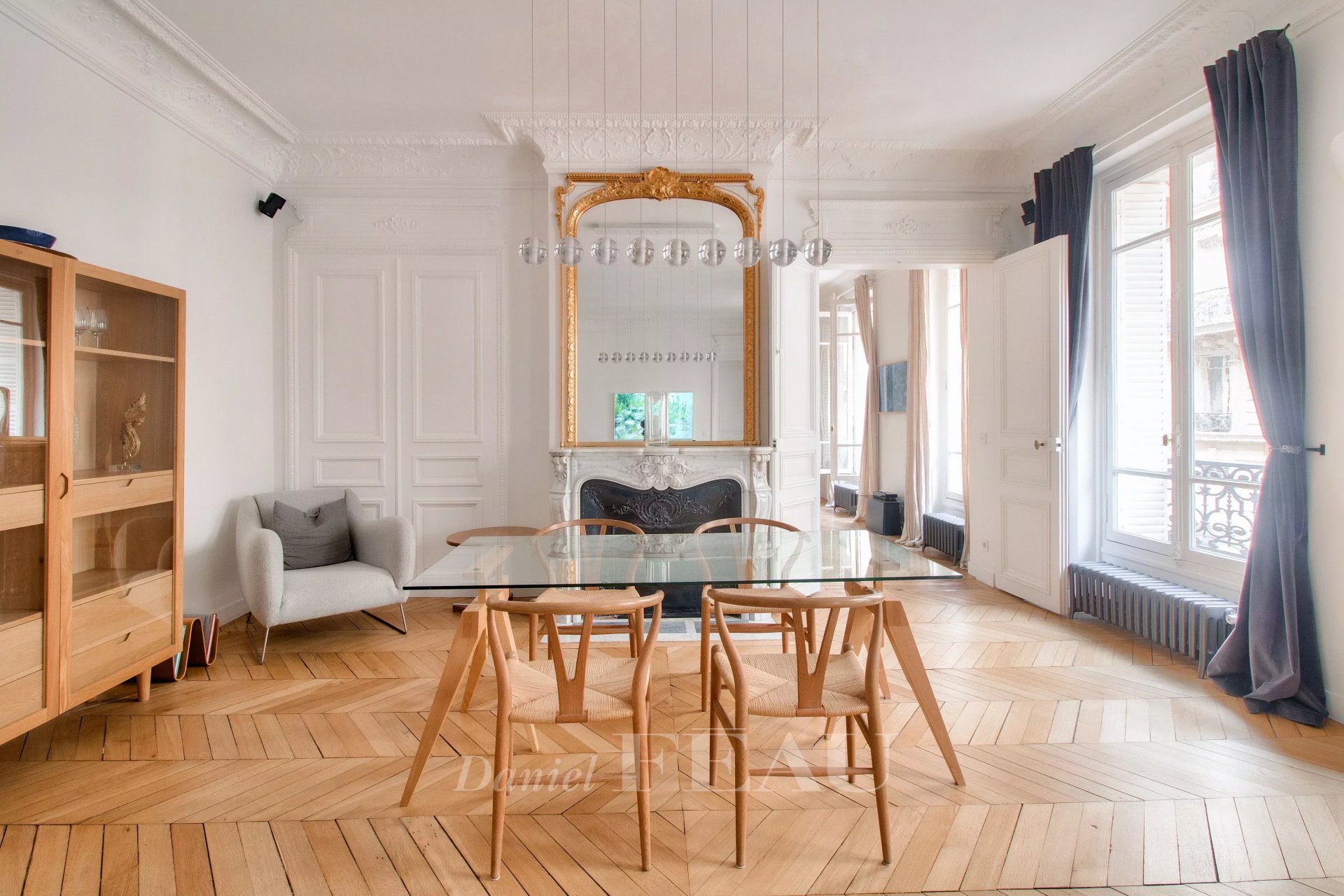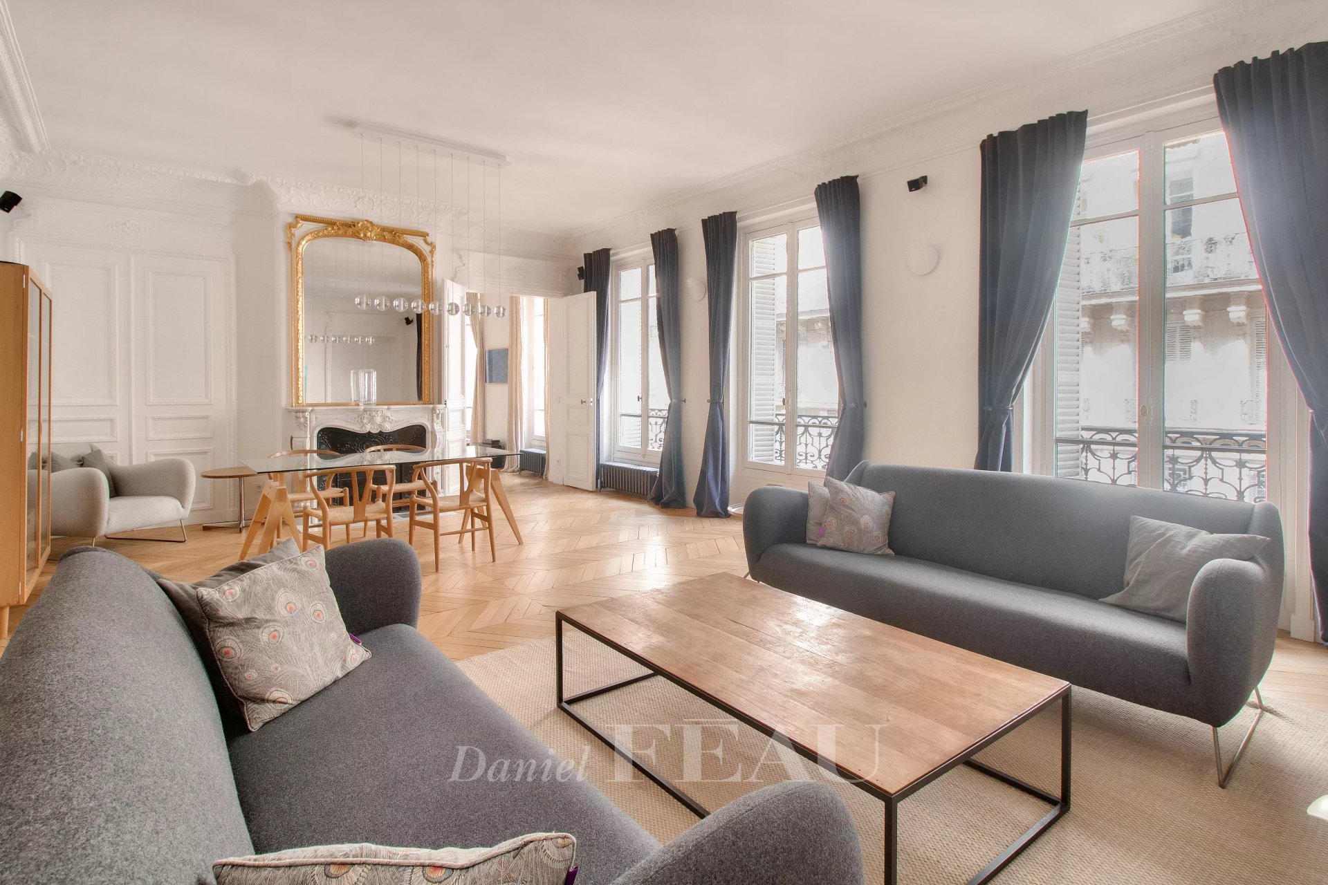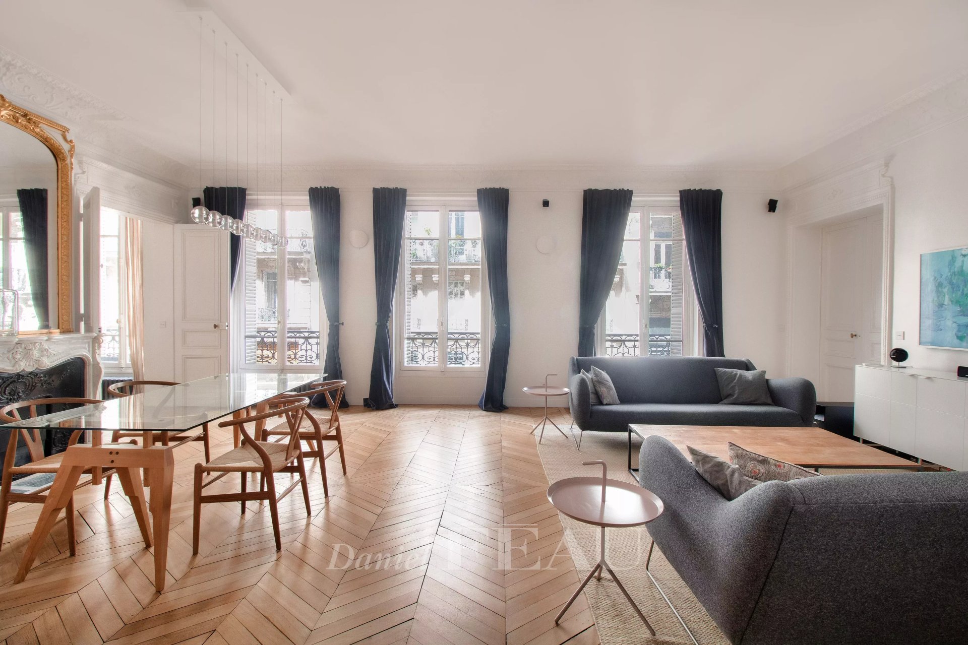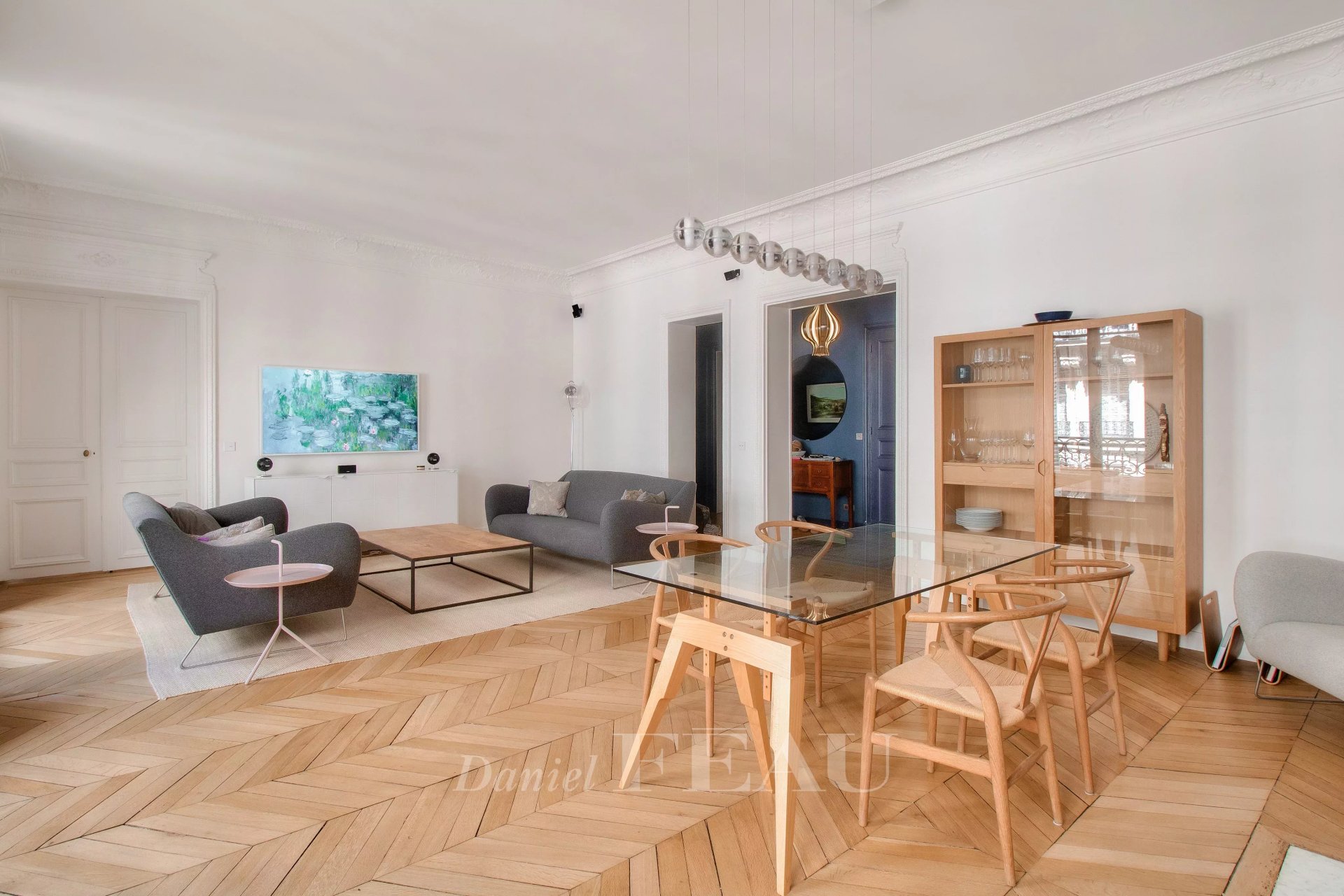 Rue de la Néva, just steps from Ternes metro station and Parc Monceau, on the first floor of a high-end building, this magnificent furnished apartment with four bedrooms is available.