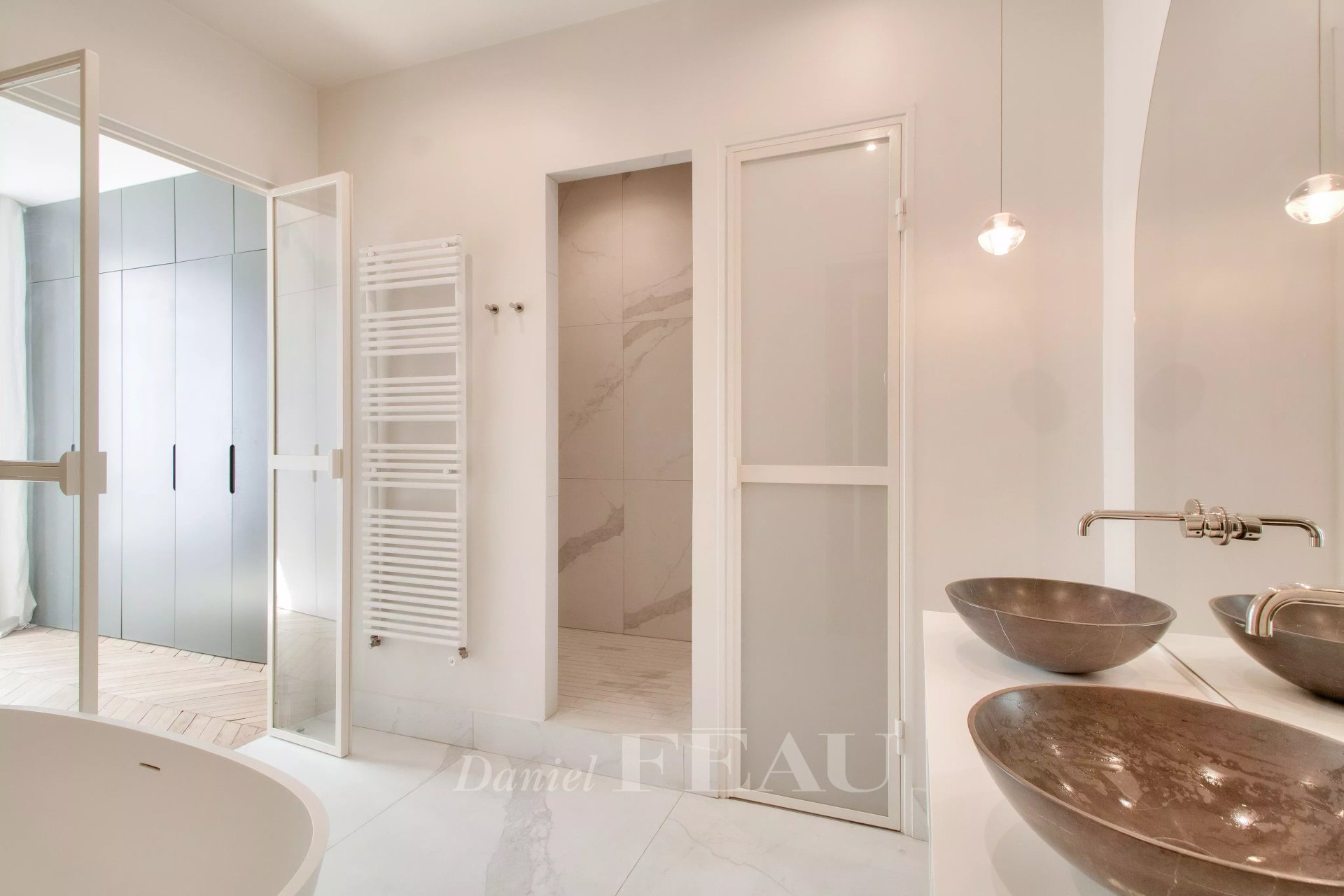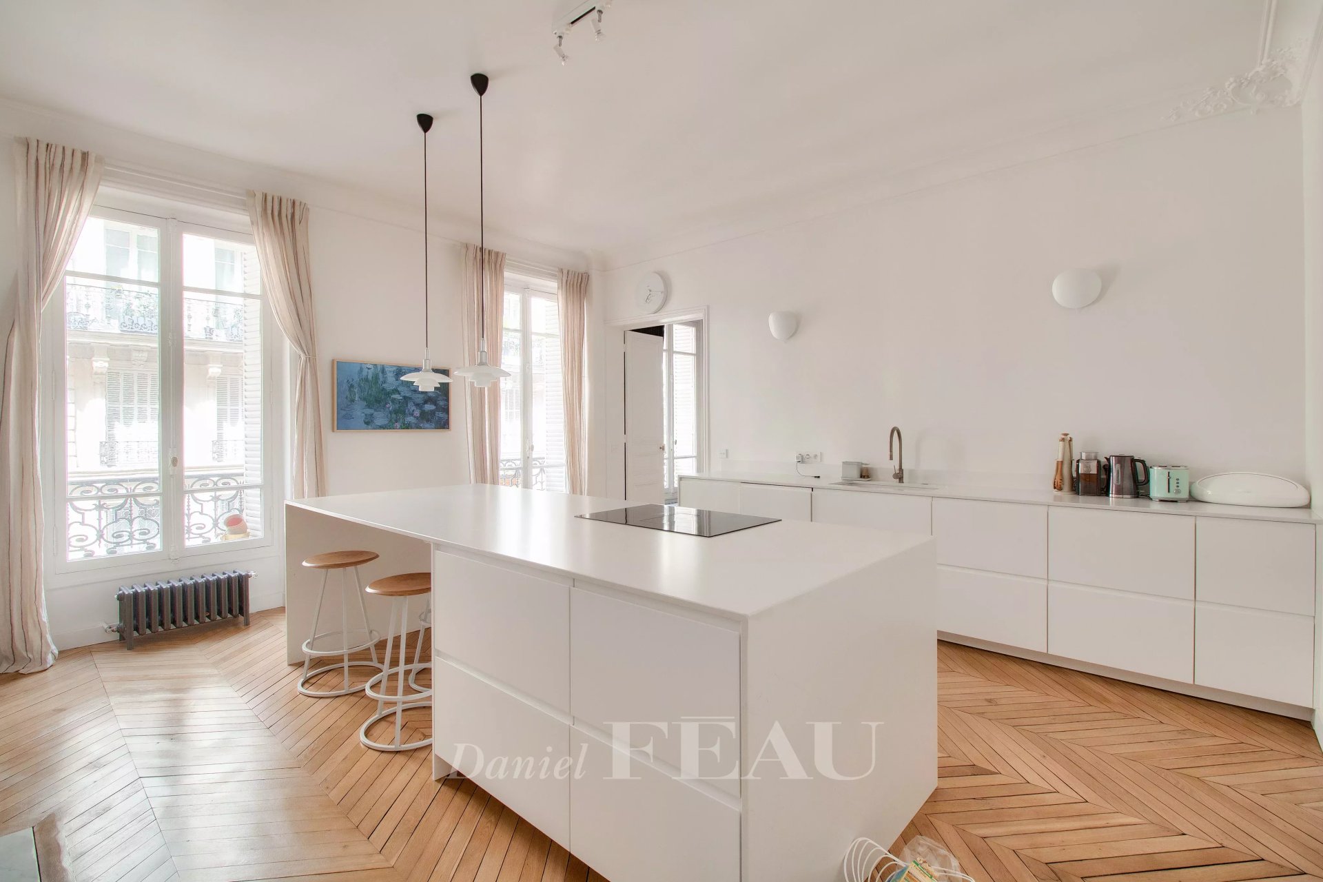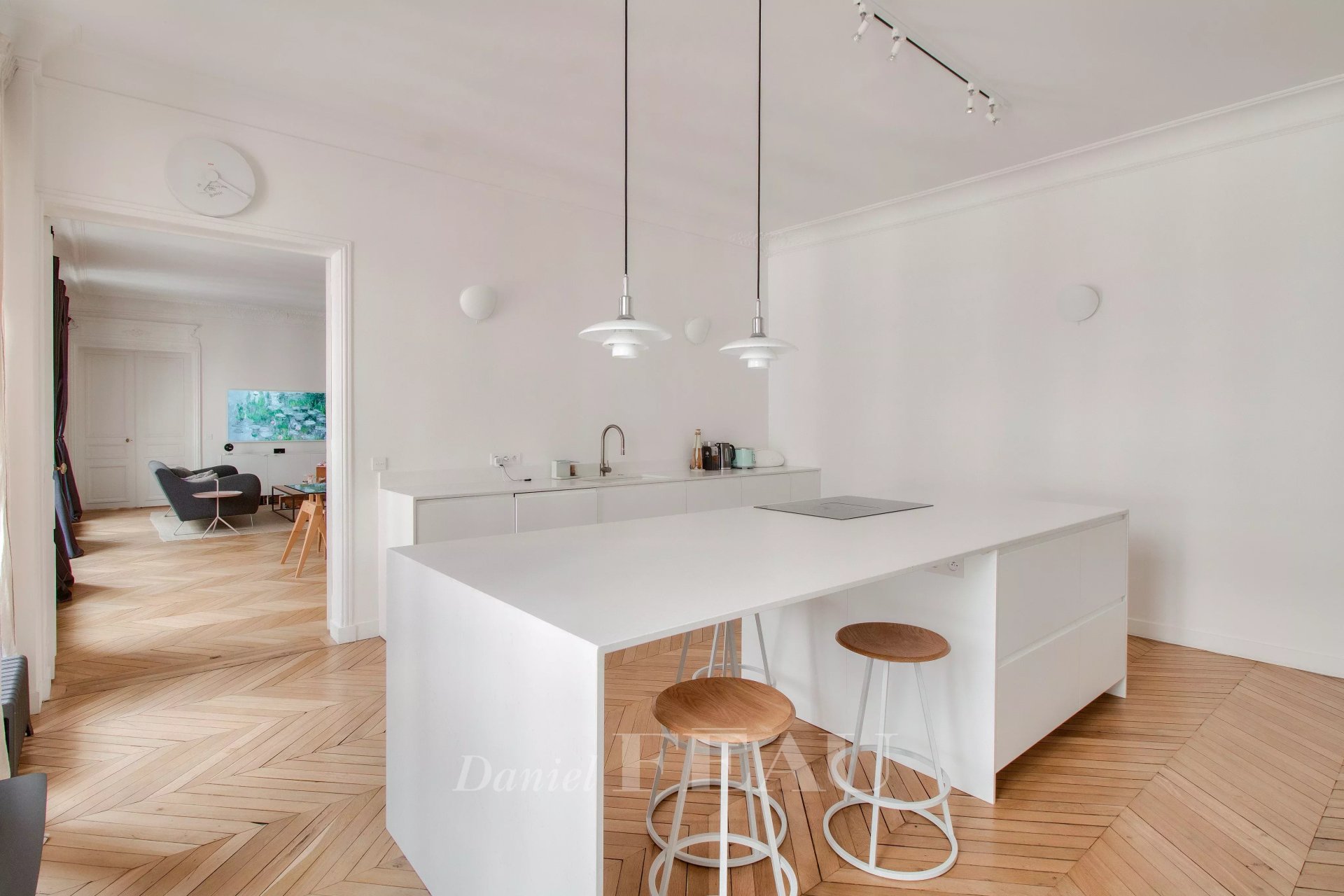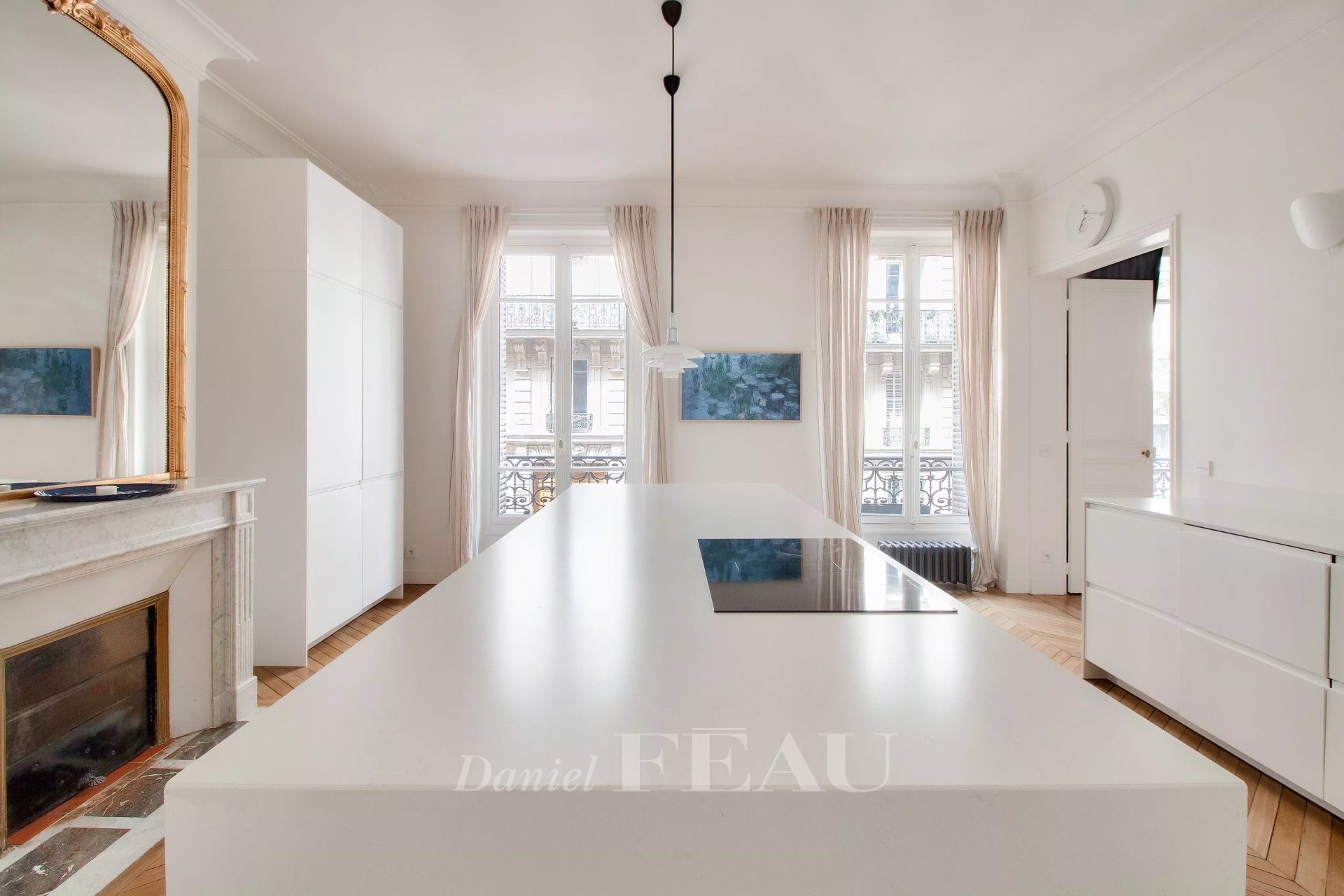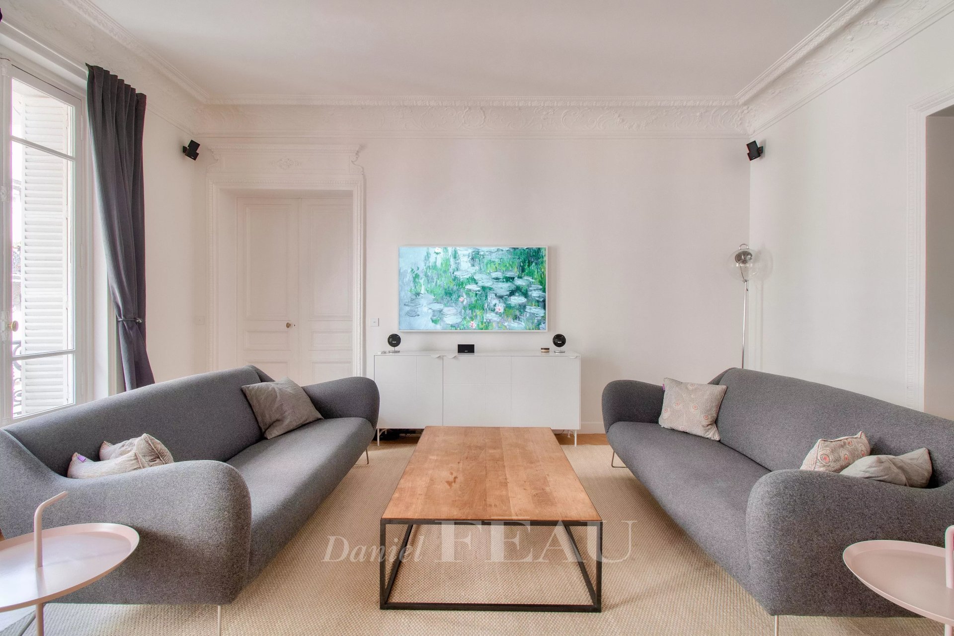 Rue de la Néva, just steps from Ternes metro station and Parc Monceau, on the first floor of a high-end building, this magnificent furnished apartment with four bedrooms is available.