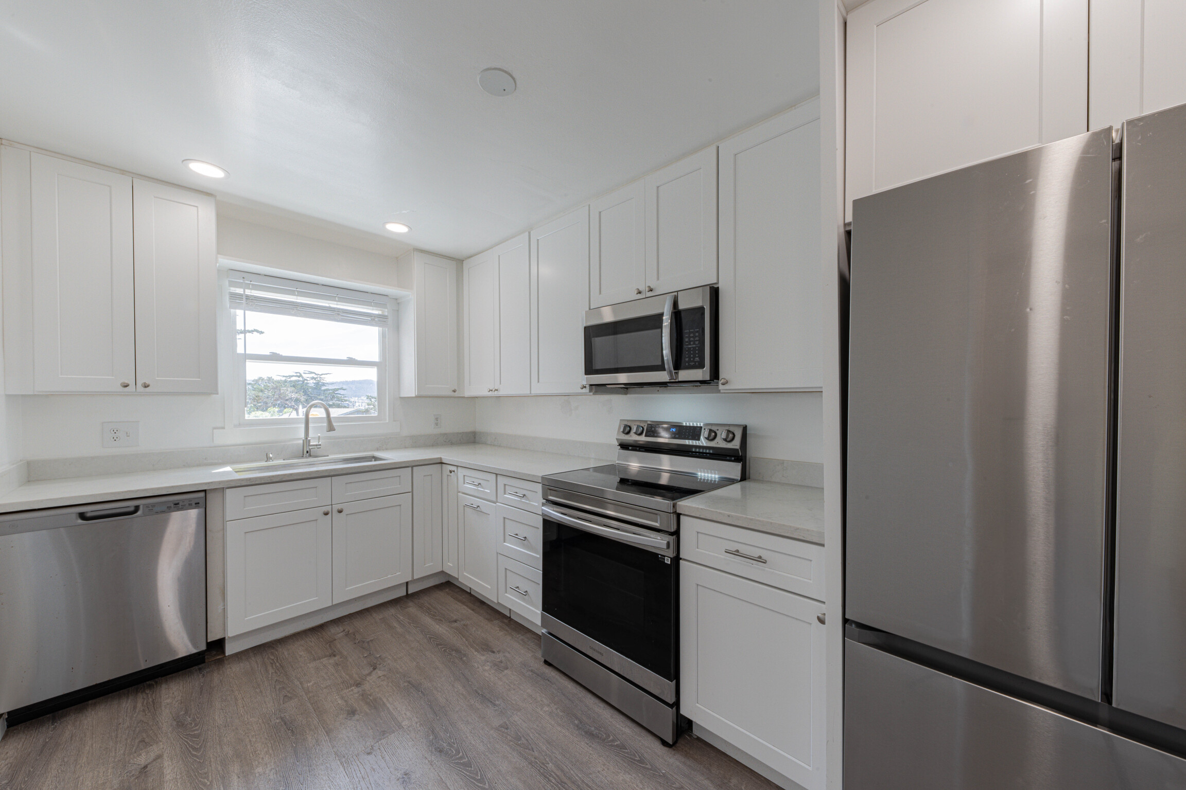 Charming single-level 3BD/1BA home in Seaside with peek-a-boo bay views from the expansive backyard deck. Updated kitchen with quartz countertops and newer vinyl plank flooring throughout. Features include new garage door, washer/dryer area in garage, solar panels, and EV charger. Situated on a 7,400± sq ft lot with ADU approval from the City of Seaside, ideal for expansion or investment. Convenient location with easy access to local amenities and commuting routes.