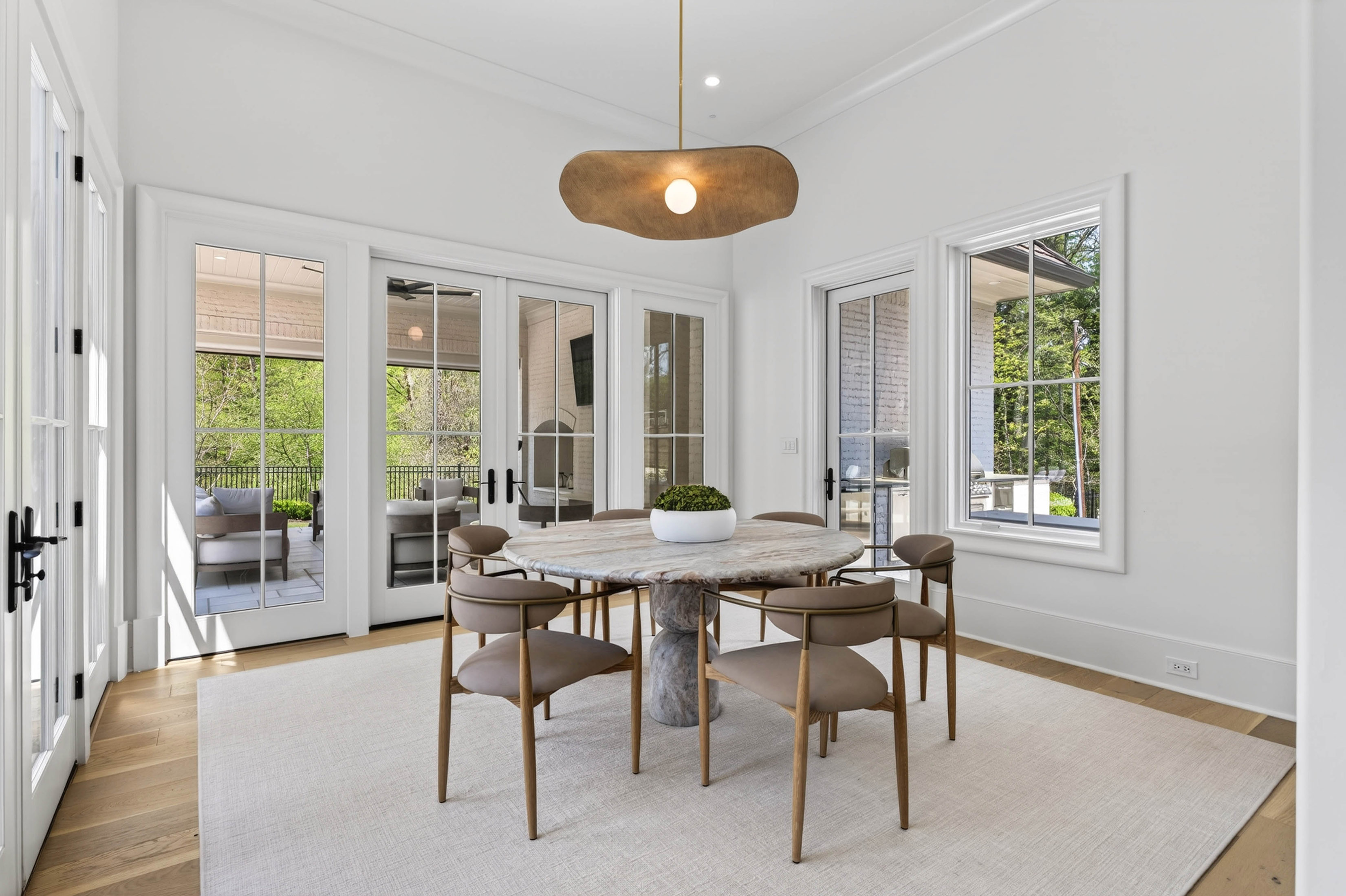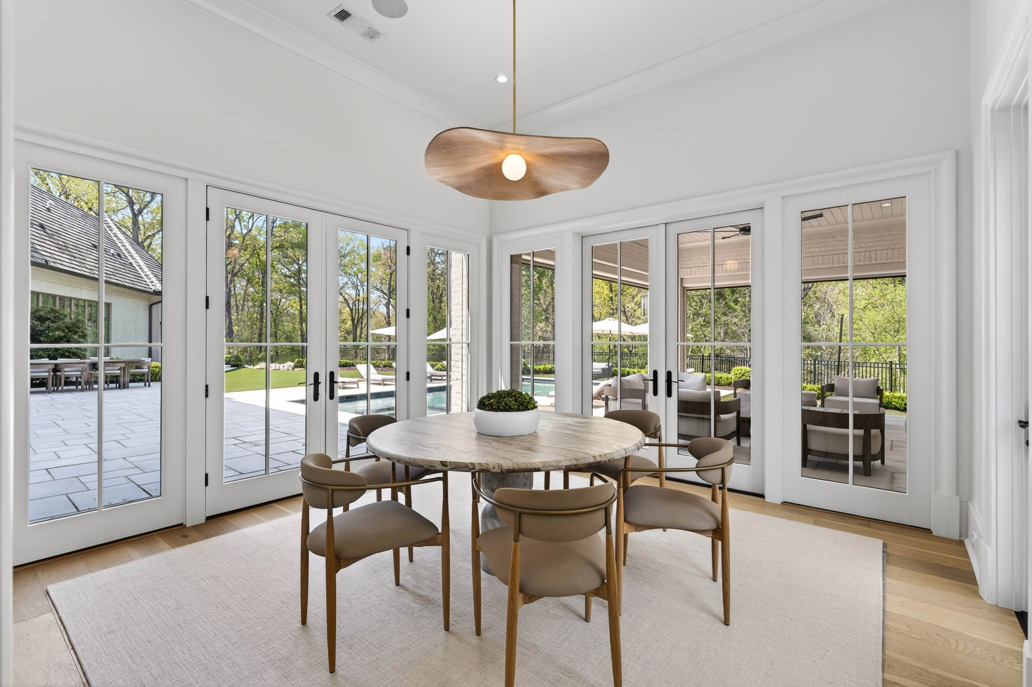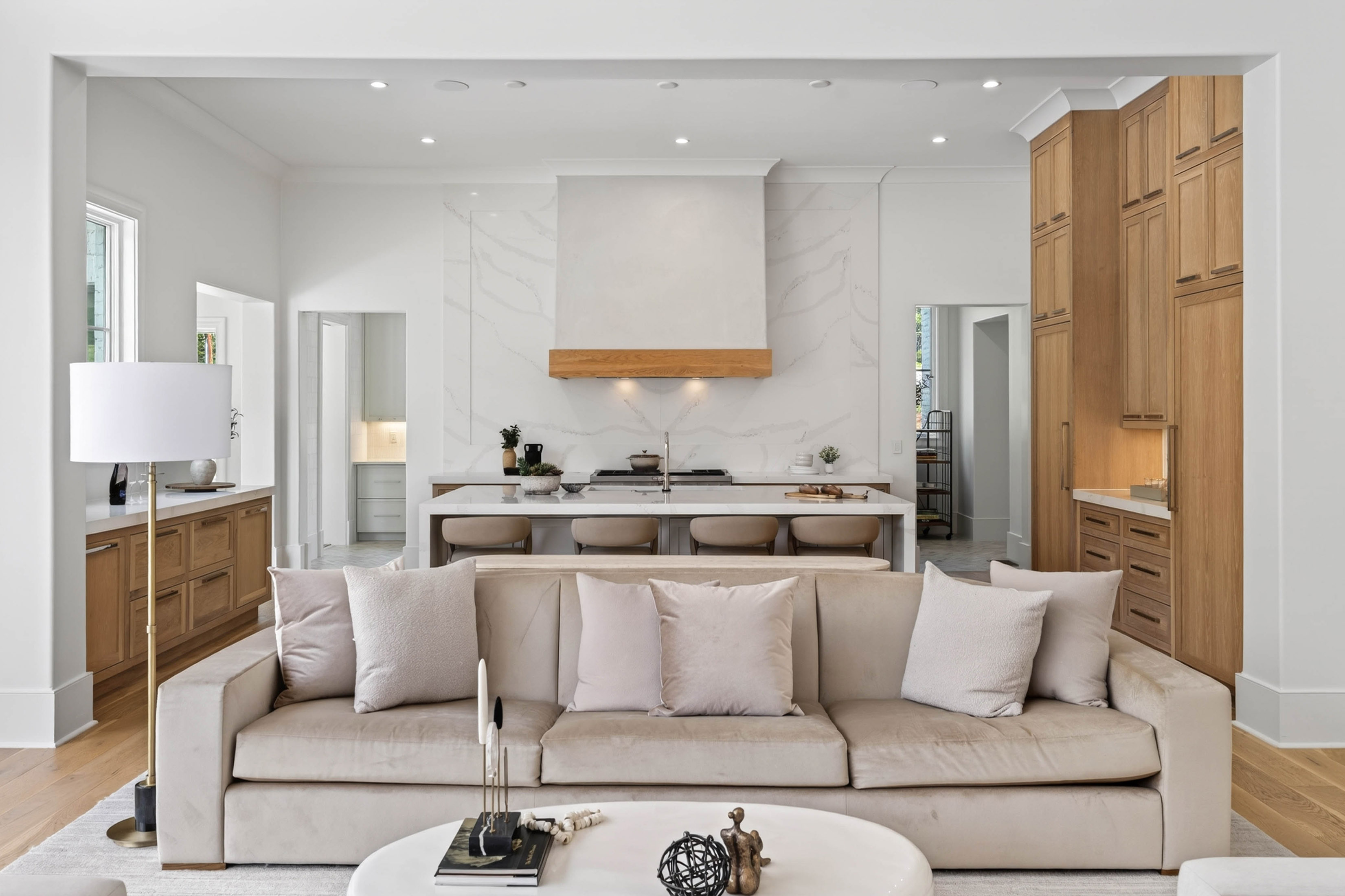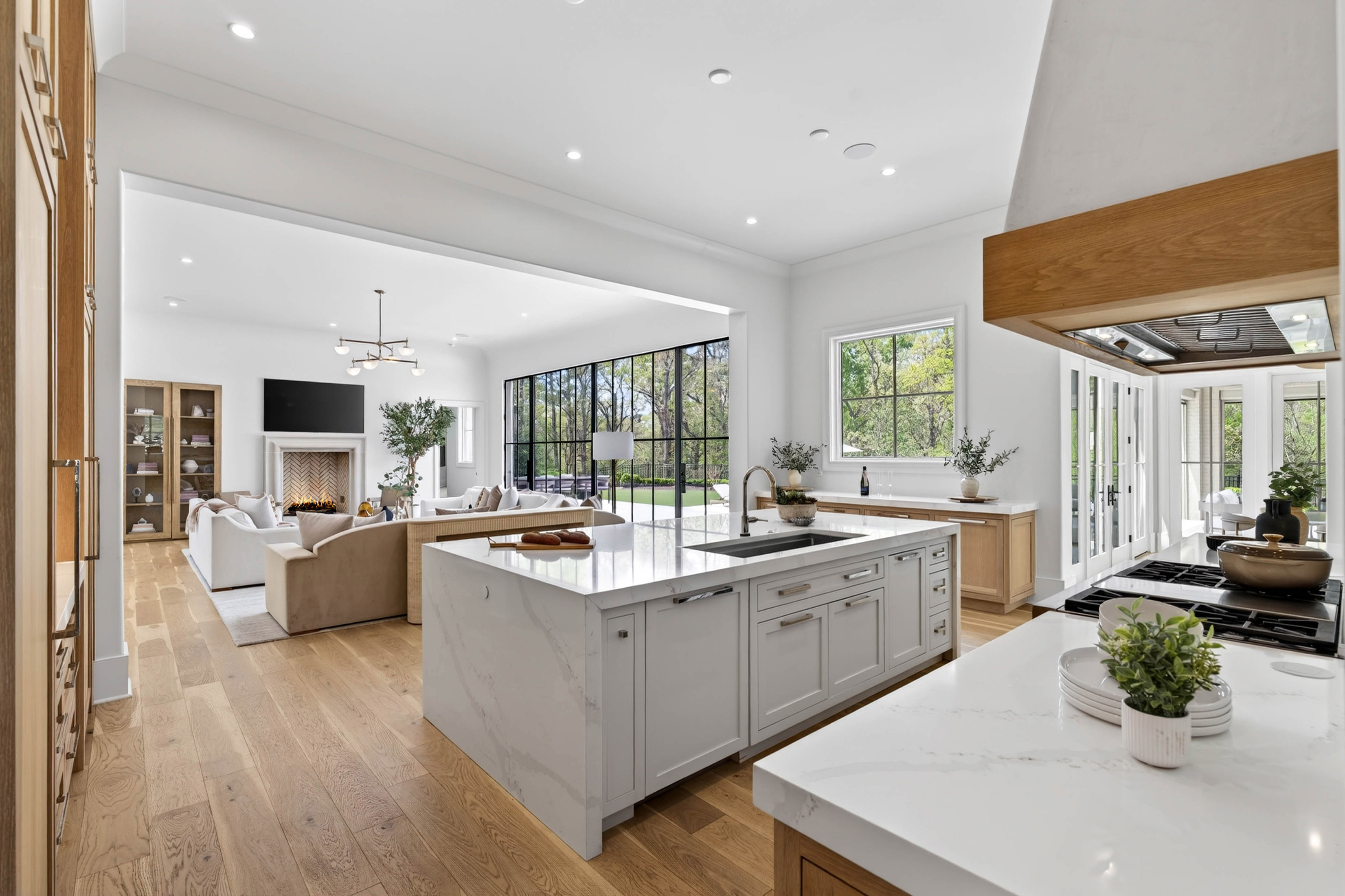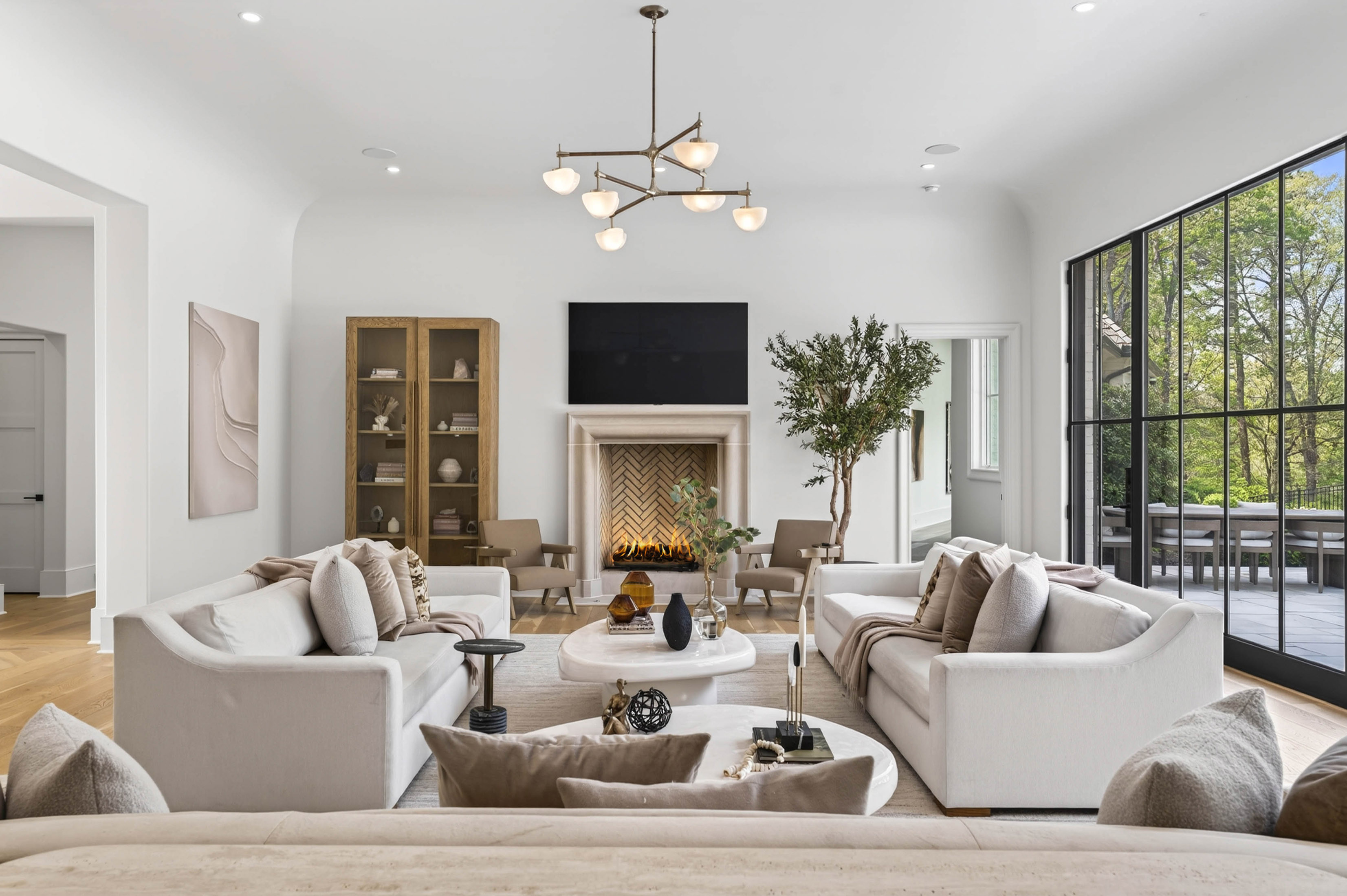Set behind gates on 2.3 private, beautifully manicured acres in one of the city’s most coveted enclaves of luxury estates, the property delivers an amenity package rarely achieved in a single residence: a resort-quality pool and spa with tanning ledge, covered fireside pavilion with automated Phantom screens, outdoor kitchen, plumbed firepit, sport court with pickleball, enclosed sports field for soccer and batting practice, inground trampoline, and expansive professionally turfed grounds, all enhanced by lighting, security, and impeccable landscaping. Designed by Castro Design, the transitional architecture is both striking and timeless, pairing painted white brick, a cedar roof, an abundance of steel windows and doors, and a four-car garage with a warm, richly layered interior of exceptional scale and livability. Inside, a gracious floor plan unfolds with grand yet comfortable living spaces designed equally for elegant entertaining and effortless daily life. The expansive great room is complemented by a substantial formal dining room and a private fireside study on the main level. At the heart of the home, the designer kitchen is a true showpiece, appointed with waterfall quartz countertops, bespoke cabinetry, and a full suite of premium appliances, while an exceptional supporting cast includes a fully equipped scullery, butler’s pantry, breakfast room, oversized mudroom with custom built-in lockers, and main-level laundry. Privately situated down a long dedicated hallway, the main-level primary suite is a retreat unto itself, rivaling those found in the finest boutique hotels. The suite offers a breakfast bar with refrigeration, a boutique-caliber dressing room, and a private massage room that could easily serve as additional closet space or a wellness treatment room. The marble-clad bath is nothing short of spectacular, featuring oversized white oak fluted dual vanities with waterfall marble countertops, a dramatic dual-entry shower, freestanding soaking tub, and dual water closets. Upstairs, four generously proportioned ensuite bedrooms with soaring ceilings are accompanied by a second laundry room, an open-concept family lounge, and a dedicated homework or craft room, offering ideal flexibility for family living. The finished terrace level is an outright destination, curated for entertaining on a grand scale and for year-round recreation. This level features an expansive family room with dual seating areas, two fully equipped bars, a full kitchen, guest suite, private fitness studio with sauna and cold plunge, and an extraordinary indoor children’s gymnasium complete with foam pit and obstacle course. The walk-out backyard is among the finest private recreational environments in the Atlanta market, seamlessly extending the home’s living experience outdoors while delivering an unmatched level of versatility for entertaining, wellness, sports, and family life. With its extraordinary architectural presence, comprehensive amenity suite, and one of the most complete lifestyle offerings to come to market in Sandy Springs, this is far more than a newly built home. It is a true estate property and a standout offering within the upper tier of Atlanta luxury real estate.