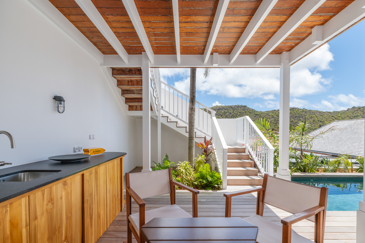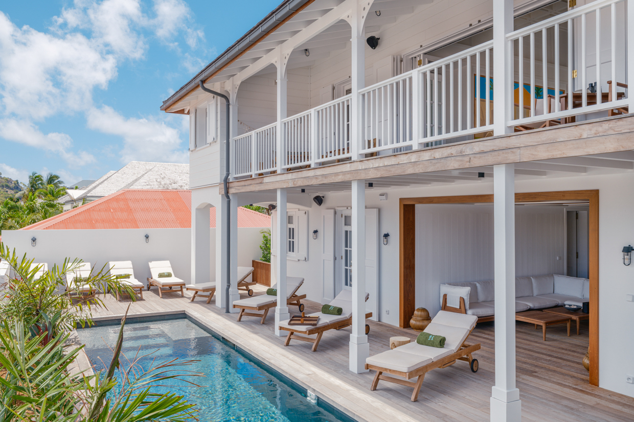 Villa Hippocampe invites you to a serene escape, blending modern comfort with Caribbean charm in the heart of Gustavia.New construction designed by architect François Pécard, the property blends naturally into its surroundings. Spread across two levels, it features shingle roofs, white cladding, and custom woodwork, with details reflecting the island’s traditional architecture.As soon as you enter, a vast and bright living space unfolds, bringing together an open living area, dining area, and fully equipped kitchen. Light tones, natural materials, and decorative touches inspired by the island’s colors create an elegant and welcoming atmosphere. Large openings lead onto a covered terrace that offers a breathtaking view of the harbor, where yachts and boats gently rest at anchor.The master bedroom, located next to the living room, enjoys direct access to the covered terrace. It features a spacious walk-in closet and a private en-suite bathroom.A staircase leads to the lower level, which hosts four additional bedrooms, all offering the same level of comfort, as well as a second terrace with a large pool overlooking the view. Shaded lounges, reading corners, and dining areas provide ideal spaces for relaxing, whatever the mood.A rare feature completes the property. A wheelchair lift connects the two levels and ensures full accessibility for people with reduced mobility.Only a few minutes’ walk from shops, restaurants, and Shell Beach, Villa Hippocampe offers the perfect setting to fully embrace the St Barts lifestyle.