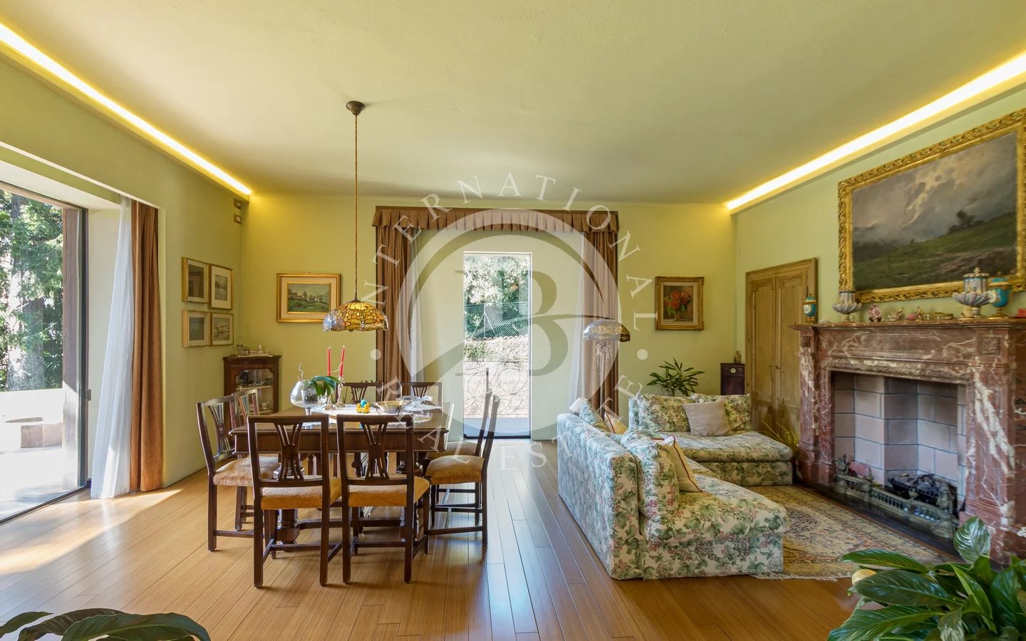 This prestigious historic residence is situated just 200 meters from the shores of Lake Como, in the heart of the enchanting village of Tremezzo. Originally built in 1873, the property underwent a meticulous conservative restoration that seamlessly blends 19th-century aesthetics with the most modern technological standards, offering 660 sqm of refined elegance across four levels.The ground floor welcomes guests into a vast salon featuring early 20th-century frescoes and soaring ceilings, flooded with light through large windows. A tea room and a dining room with a fireplace define the formal living area, complemented by a professional kitchen. A modern staircase and an elevator connect the floors, leading from the master suite—complete with a whirlpool tub and lake-view balcony—to the attic with exposed beams. The basement is dedicated to absolute well-being, housing a private spa with a sauna and a spectacular indoor pool. This pool, through a fluid connection system, extends outdoors, allowing one to swim from the interior to the garden in a single body of water.The villa is immersed in a lush garden of approximately 1,300 sqm, ensuring maximum privacy. The centerpiece of the park is the 10x4 meter outdoor pool, directly connected to the indoor basin and surrounded by a private solarium, perfect for enjoying the Larian climate in total tranquility. The property includes an underground garage for six cars with electric charging stations, perfectly integrated into the landscape and directly connected to the living areas, combining historic charm with maximum contemporary functionality while preserving the aesthetic harmony of the private greenery.Energy efficiency is guaranteed by geothermal systems, solar panels, and high-performance underfloor heating and cooling. The entire infrastructure is managed by an advanced home automation system, transforming the residence into a modern smart home controllable via an app. The union of period finishes, a cutting-edge wellness area with interconnected pools, and energy independence makes this property a unique example of sustainable luxury and technological comfort on Lake Como.Tremezzo, the gem of the lake's western shore, is famous for its patrician villas and botanical gardens. The villa enjoys a privileged position that allows the lakeside to be reached on foot, while guaranteeing extreme privacy and proximity to the most exclusive services in the area.Located on the western shore of the lake, Tremezzois one of the mostrenowned and sun-drencheddestinations on Lake Como. Famous for the architecturalmasterpieces of Villa Carlotta and the iconicGrand Hotel, the villageoffers an aristocraticatmosphere and breathtakingpanoramas stretching from the Alpine peaks to Bellagio.Living in Tremezzo meansenjoying the perfect blend of nature and sophistication: with itslushbotanical gardens, eliterestaurants, and elegantlakesidepromenade, itis the premier choice for thoseseeking the authenticDolce Vita in one of the world'smostexclusive settings.200 m from Lake Como25 km from Como75 km from Milan Malpensa Airport77 km from Milan30 km from Lugano