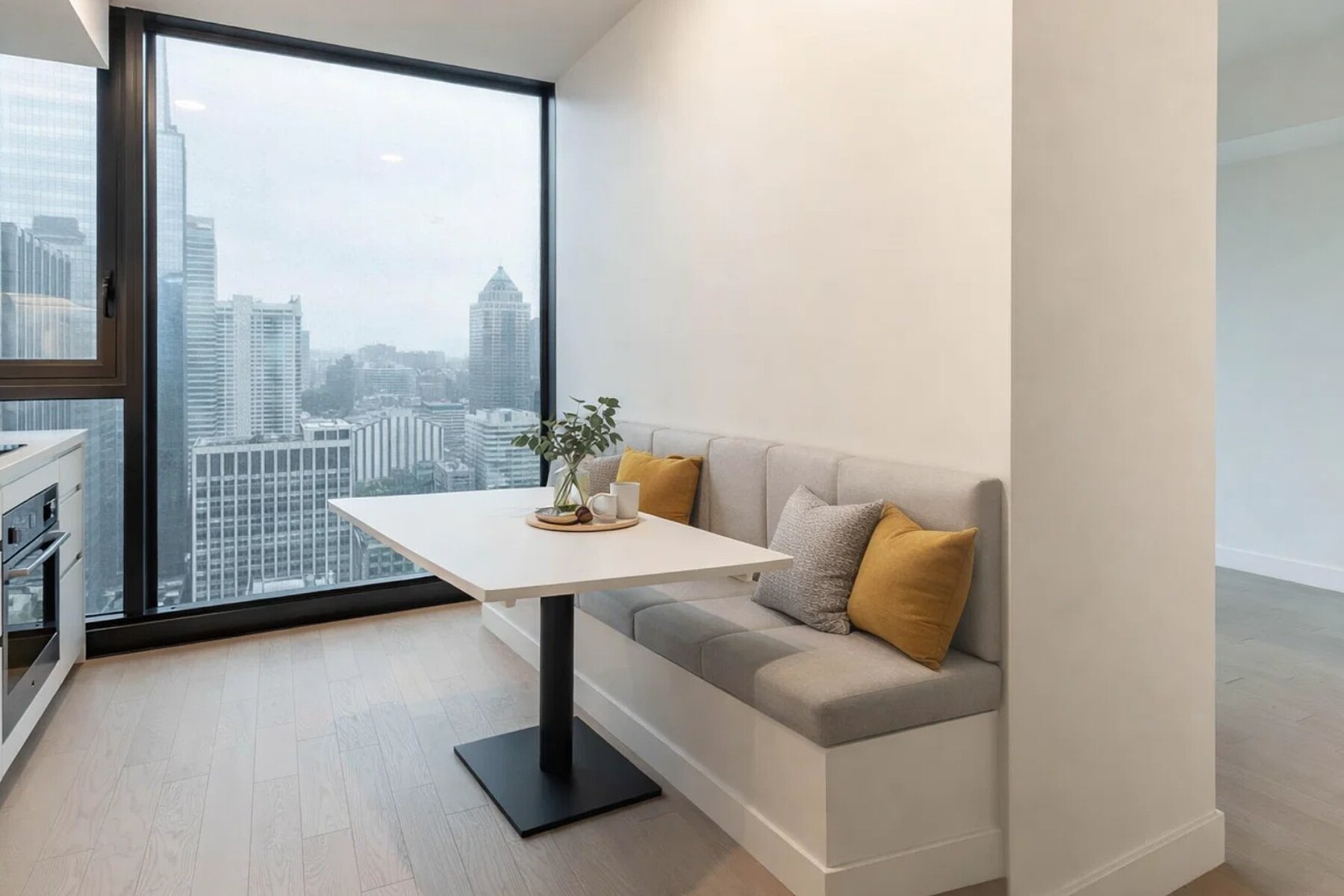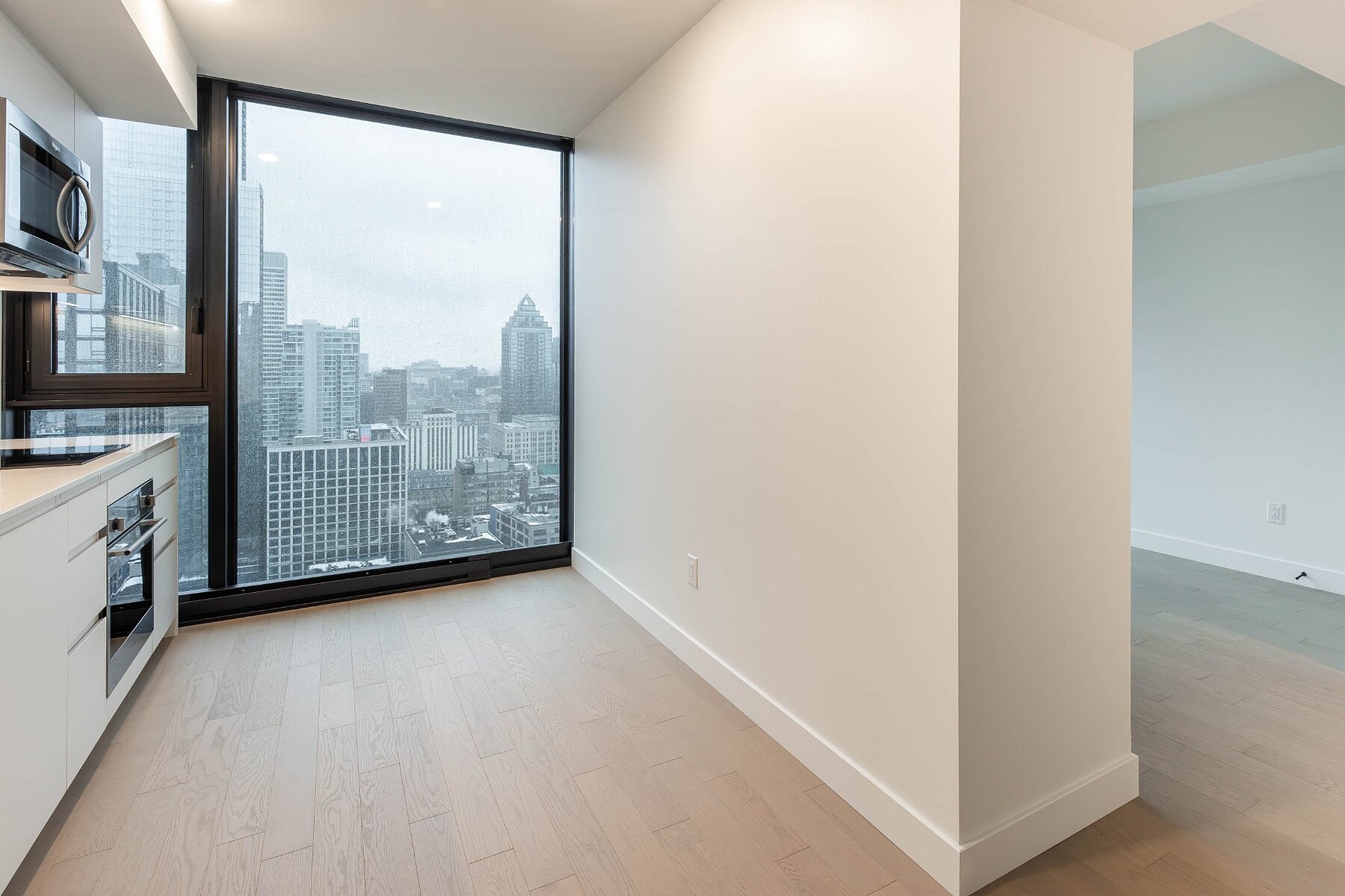 Maestria, an icon of the Quartier des Spectacles, blends signature architecture with refined design in the heart of downtown. This approx. 421sqft studio, southwest-facing, features floor-to-ceiling windows, exceptional natural light, and inspiring city views. Contemporary kitchen, quality finishes, and an efficient layout make it the perfect pied-à-terre or turnkey investment. Over 40,000sqft of common areas (pools, spa, gym, lounge, etc.) complete the lifestyle.