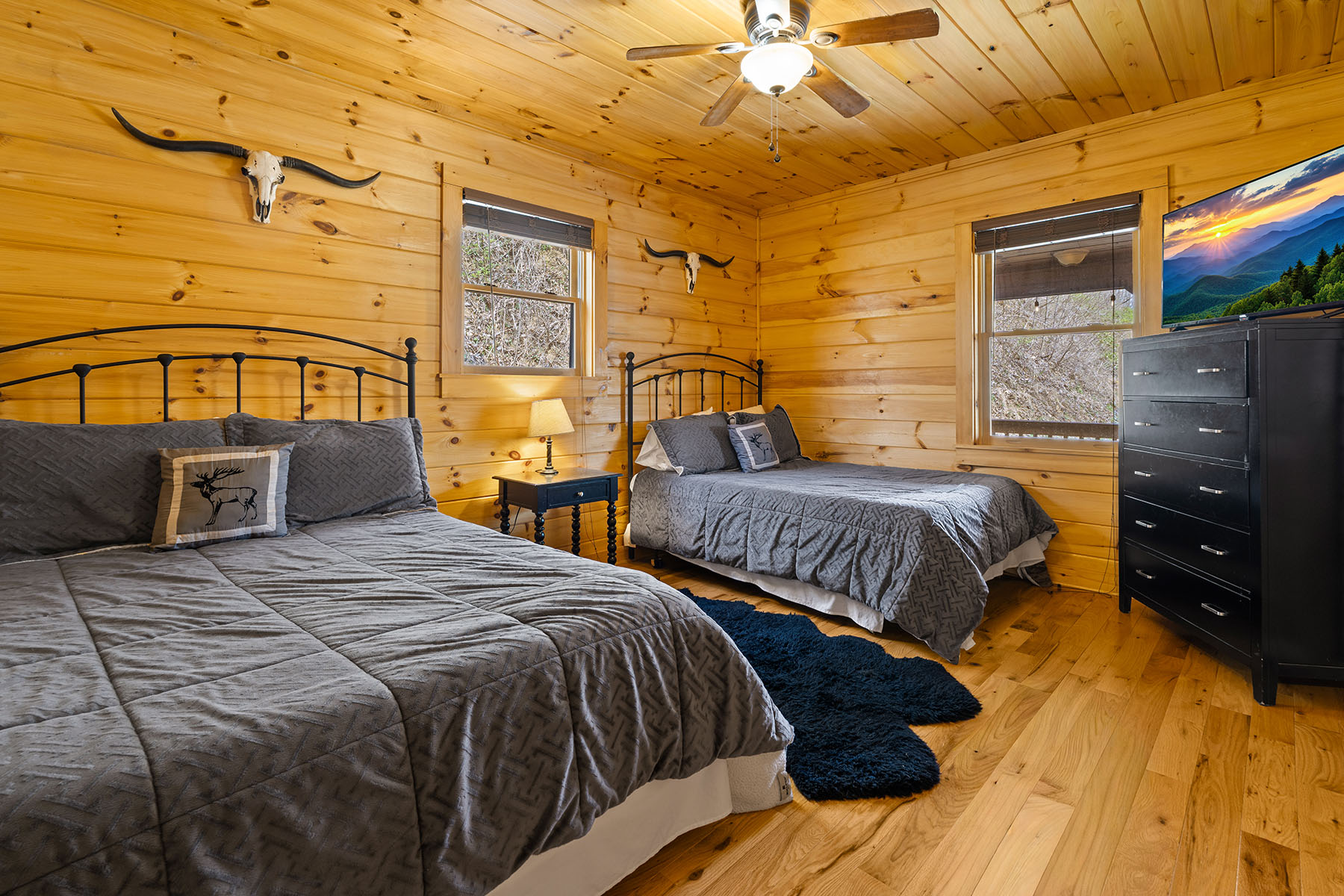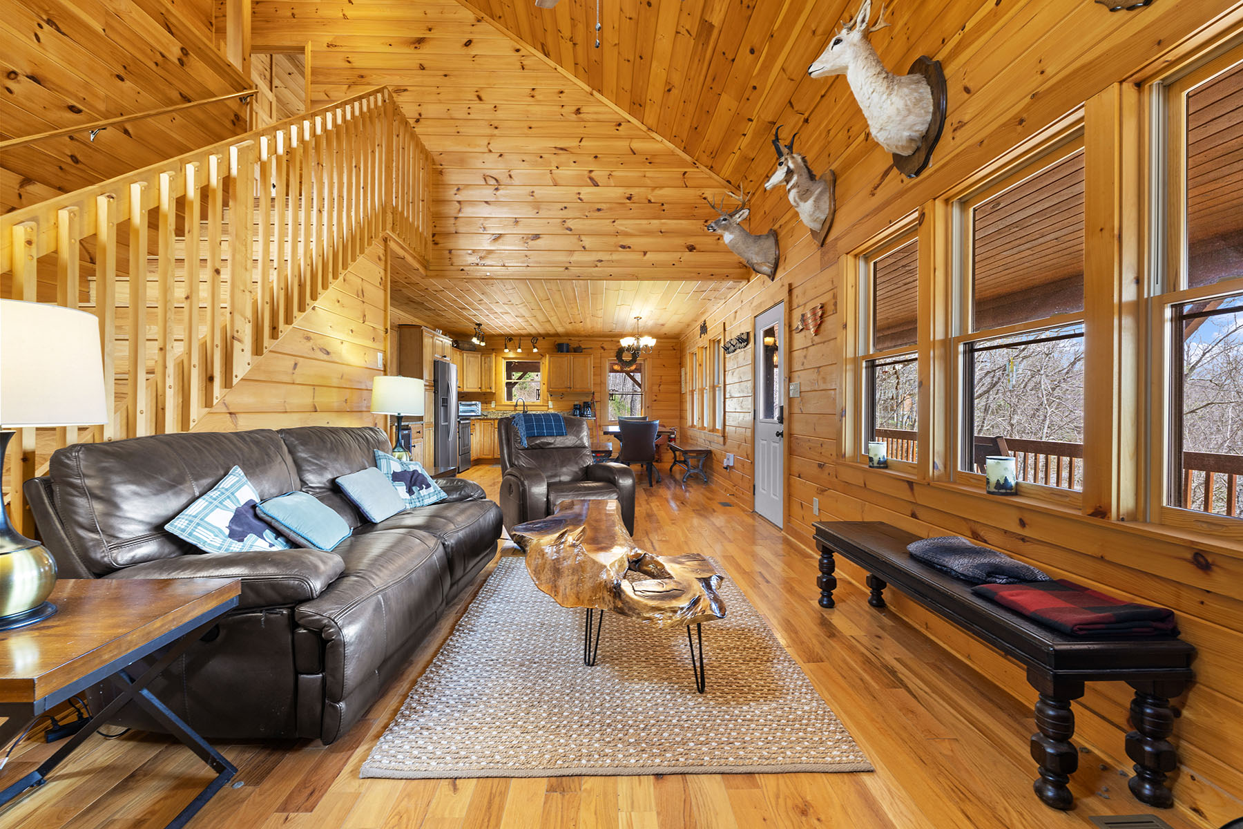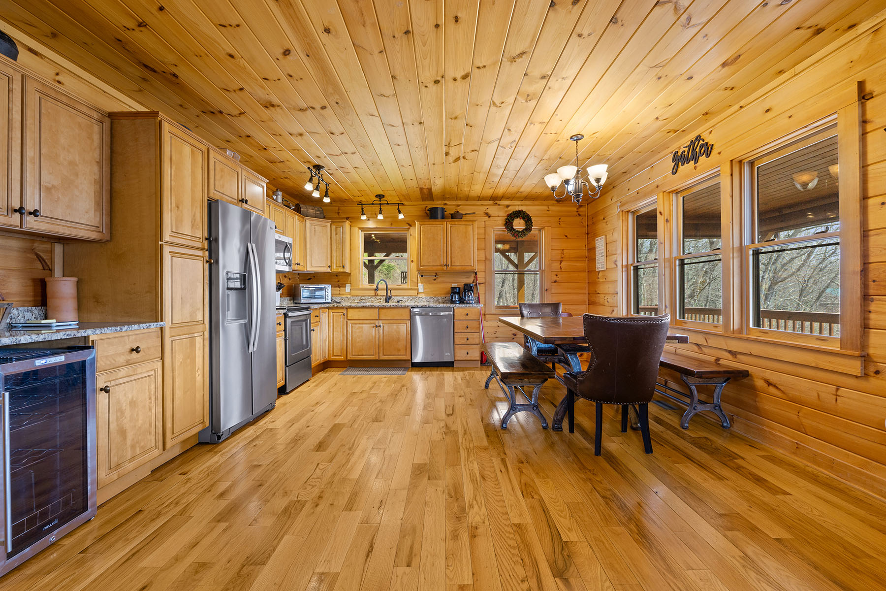 The upper level includes a loft and a primary bedroom suite with a full bath. The lower level provides additional living space with a den or recreation room, full bath and flexible use areas suitable for guests or extended living. Currently an extra room has bunk beds and serves as another sleeping area. The Rec room has billiards and air hockey tables, a media watching area and a bar with a 2nd wine fridge. Amenities include internet availability, a fire pit area, hot tub and an electric vehicle charging station. Trash service is managed with a bear-resistant containers. The large covered porches are wonderful for all types of weather.