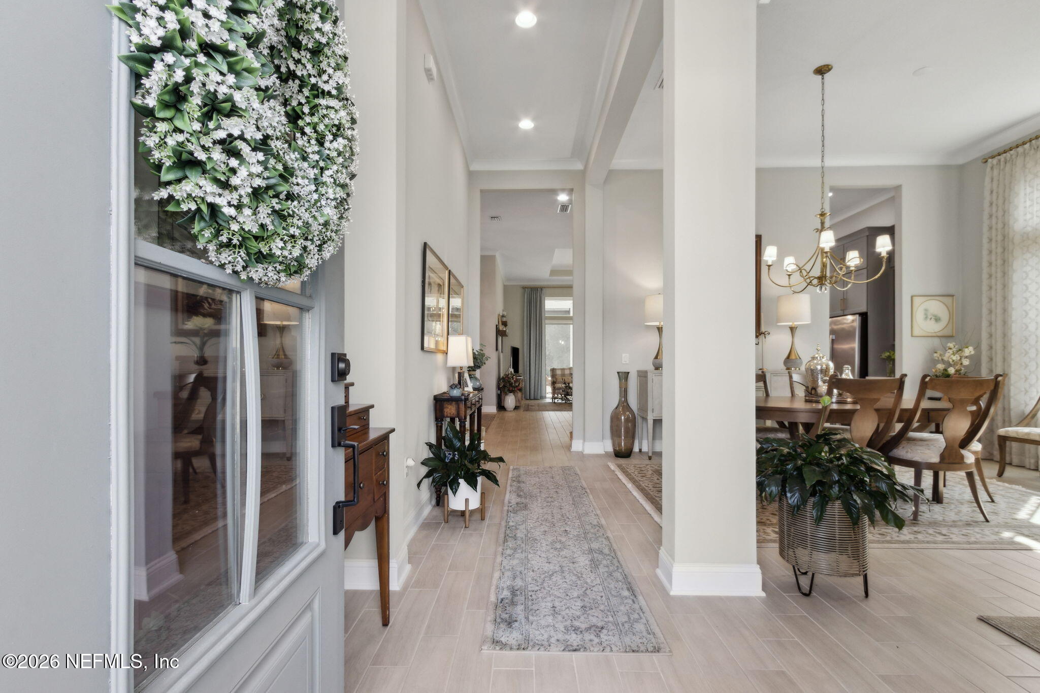 Stunning home located within Amelia National, a coveted resort style neighborhood, offering an unparalleled lifestyle surrounded by luxury amenities. Set on a larger lot, this home offers beautiful landscaping and a large pond view providing privacy in a calm serene environment. If you are considering new construction, you might want to see this home first. Many of the costly upgrades and after closing add on features have already been completed and with impeccable taste. Custom made drapes, custom lighting, custom closets in every room as well as the pantry, garage floor epoxy coating, extended screened paver lanai, upgraded crown molding and more. This open floor plan home with high ceilings throughout features a gourmet style kitchen with quartz countertops, double stacked cabinets, double ovens and a large island for seating and entertaining. Wood look upgraded tile flooring throughout except for secondary bedrooms, natural light streaming in from an abundance of windows and an owners suite with not one but two custom closets! The above mentioned community amenities include a newly refurbished Tom Fazio golf course, golf pro shop, large resort style pool, Har-Tru tennis courts, large club house with full service dining room, game room and gym. The CDD bond has been PAID OFF, which is and additional added bonus to choosing this home. Amelia National is only minutes away from the beautiful beaches of Amelia Island, quaint historic downtown Fernandina Beach with shops, restaurants, art studios and more as well as a short drive to JAX international airport, downtown Jacksonville and south Georgia. Schedule your tour today!