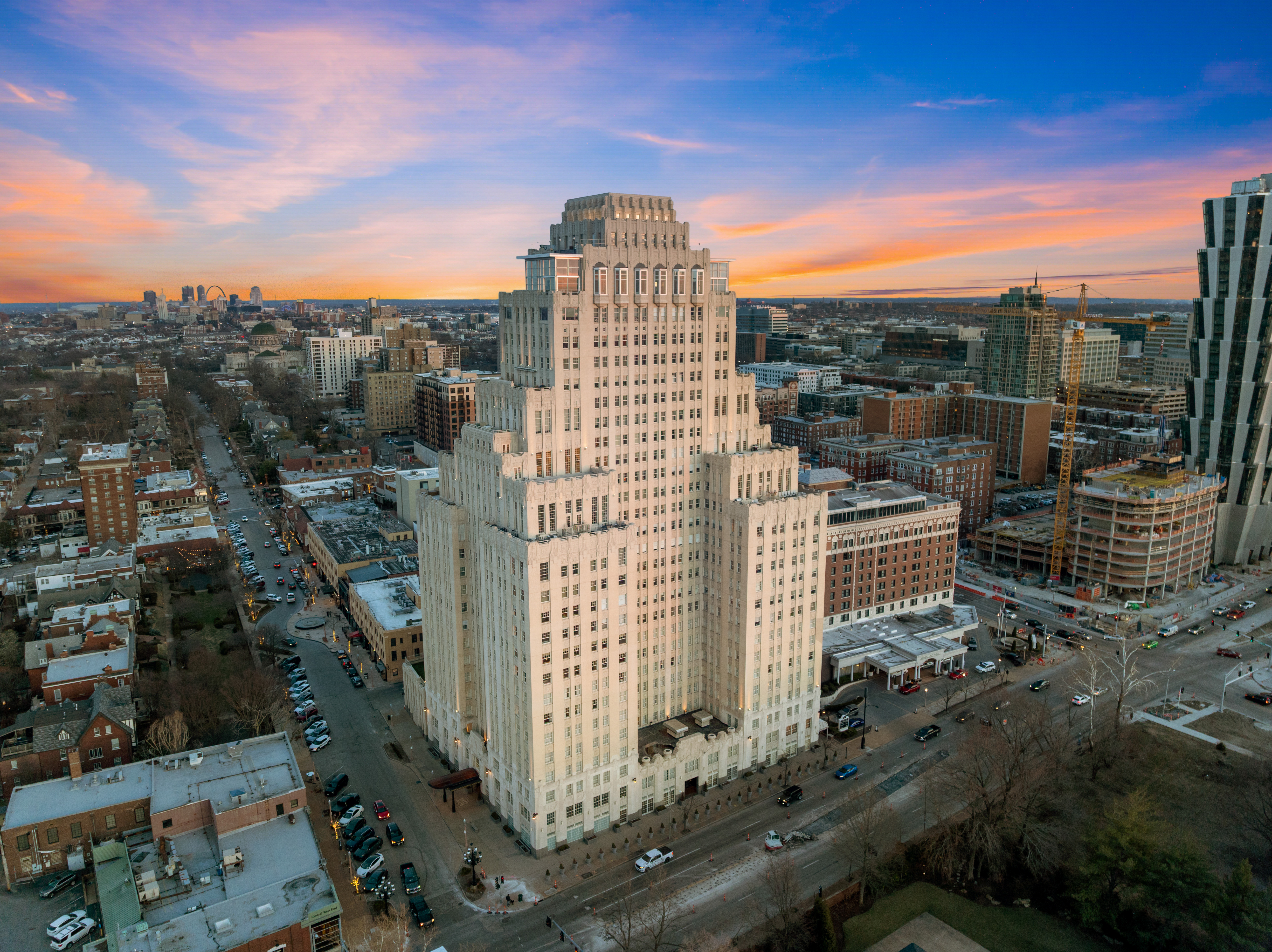 In real estate, location is often revered as the ultimate driver of value, but there is one factor even more powerful: the inability to replicate. This extraordinary residence offers both. Perched high above the city, this rare two-level condo is anchored by an expansive ~1,000 sq ft private terrace with jaw-dropping, unobstructed views spanning Forest Park and the St. Louis skyline. From sunrise to sunset, the perspective is cinematic and ever-changing, offering a constant visual connection to the best of St. Louis, an experience that simply cannot be recreated. Words can only begin to describe the scale, depth, and emotional impact of these views.Inside, the home is a masterclass in thoughtful design. Custom wood features are treated as art, highlighted by a striking floor-to-ceiling peek-through fireplace framed in rich architectural woodwork. The main level offers a large eat-in kitchen, spacious living room with soaring views, formal dining room, bedroom suite, generous laundry room, half bath, and an incredible library/office wrapped in floor-to-ceiling built-ins, ideal for work-from-home living without compromise. A dramatic open staircase, worthy of Architectural Digest, leads to the second level featuring a flexible loft space ideal for a theater, lounge, or secondary office, and a breathtaking primary suite with dual bathrooms, dressing area, and abundant closet space. A second private terrace off the primary suite offers what may be the best morning coffee space in all of St. Louis.Residents of The Chase Park Plaza Residences enjoy a truly unmatched lifestyle with 24-hour doorman and concierge services, valet parking, fitness center, swimming pool, private movie theater, multiple on-site dining options, and direct access to the iconic Chase Park Plaza, combining luxury, convenience, and prestige in one of the city’s most irreplaceable locations.