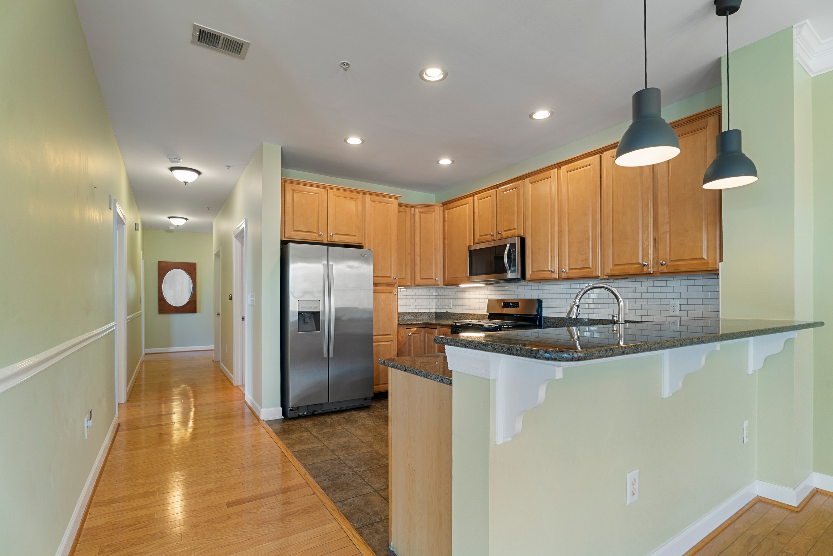 Experience refined downtown living in this beautifully appointed 2-bedroom, 2.5-bath condominium ideally situated at 35 E All Saints Street #104 in the heart of vibrant Frederick. Just steps from the scenic Carroll Creek Linear Park, this residence offers a seamless blend of comfort, accessibility, and an engaging urban lifestyle. Thoughtfully designed, the home features two spacious bedrooms, each with its own private en-suite bath, along with a convenient half bath for guests. Wider doorways and hallways, along with strategically placed grab bars, provide enhanced accessibility without compromising style. Multiple private balconies invite you to enjoy fresh air and the surrounding charm of downtown living, while generous interior closet space ensures ample storage within the unit.