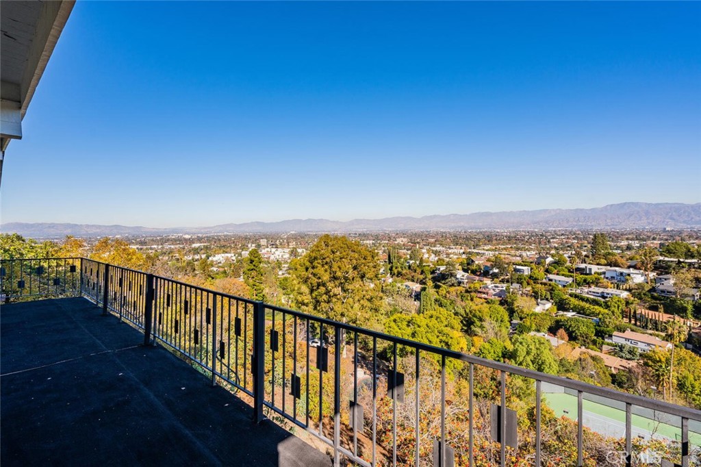 South of the Boulevard! Mid-Century home with amazing 270-degree unobstructed panoramic mountain, valley and canyon views from almost every room. Luxury living at the end of a quiet cul-de-sac. The gated and private grassy front yard leads to this bright and open living space. Enter through the double glass doors and experience the explosive jet-liner views. High exposed post & beam ceilings, stone fireplace, and wide plank wood floors run throughout most of this home's interior plus a huge balcony overlooking the valley. The Formal Dining area is open to the Living Room and Kitchen and has a custom wet bar plus more of those views. The Chef's Kitchen offers quartz counters, stainless steel appliances, upgraded cabinets and of course more of those outstanding views. There are 3 Bedrooms, 2 with views, including the Primary Bedroom Suite with a walk-in closet and spacious Primary Bathroom with quartz counters, double sinks, deep spa tub plus separate shower with multiple shower heads and seating. Detached bonus room is great for gym or additional storage, plus spacious 2-car garage. With a prime location in the hills above Sherman Oaks and easy access to Ventura Blvd shops and dining plus great access to Beverly Hills via Coldwater Canyon, this move-in ready lease residence is not to be missed! LANDLORD REQUIRES RENT TO BE PAID IN ADVANCE IN 6 MONTH INCREMENTS.