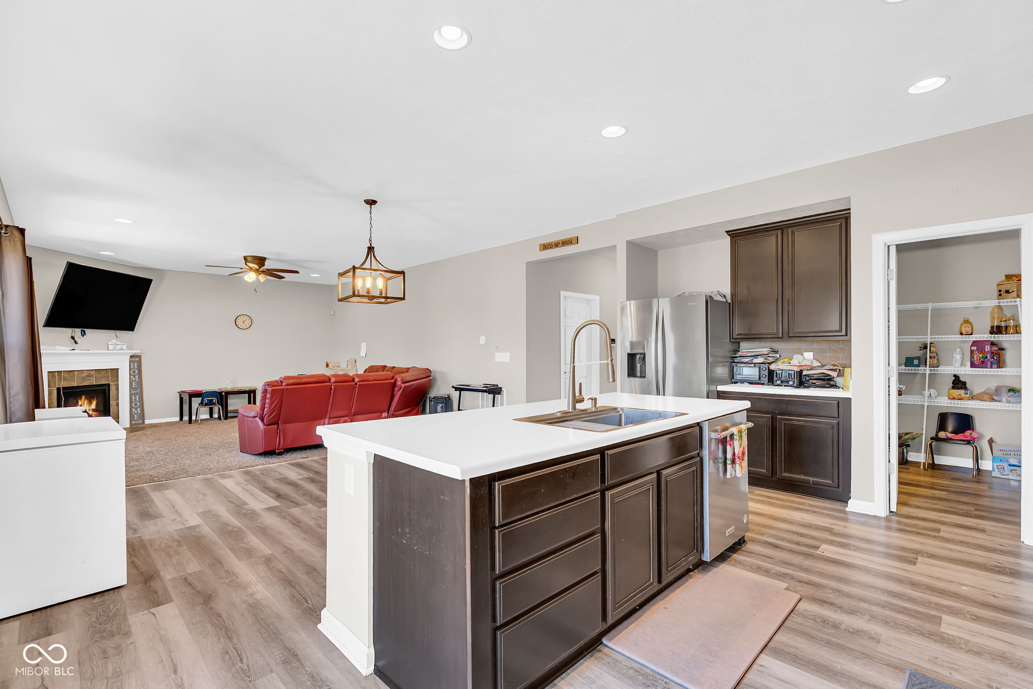 Room for everyone and then some! This spacious five bedroom, three and a half bath home offers the perfect blend of comfort, flexibility, and everyday livability in a convenient Greenwood location close to shopping, dining, and major routes. The main level features a dedicated home office, ideal for remote work, hobbies, or a quiet retreat. The open-concept kitchen flows seamlessly into the living room, creating a welcoming space to gather. A large center island with breakfast bar seating anchors the kitchen, while the adjoining living area offers warmth and charm with a cozy fireplace. Upstairs, you'll find four generously sized bedrooms along with a versatile loft that provides additional living space perfect for a media area, playroom, or reading nook. The finished basement expands your options even further, offering a spacious recreation room ready for game nights, movie nights, or hosting guests, along with a fifth bedroom and full bathroom for added convenience. Step outside through the sliding glass doors and enjoy your own backyard retreat featuring a beautiful pergola-covered patio and a fully fenced yard, ideal for relaxing evenings, outdoor dining, or weekend gatherings. With its flexible spaces, inviting layout, and fantastic location approximately 25 minutes from downtown Indianapolis, this home offers the perfect combination of function and lifestyle.