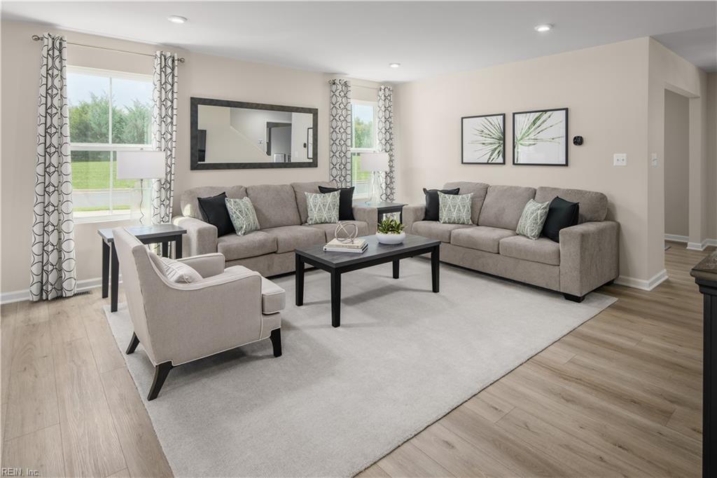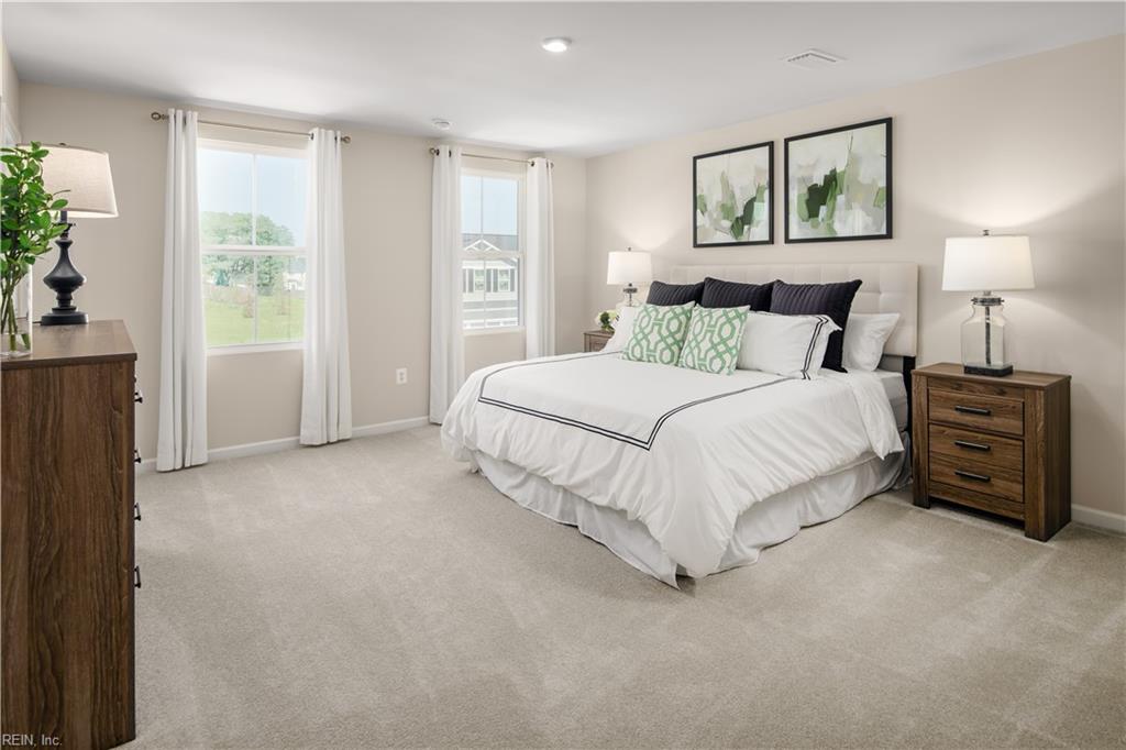Own a beautiful new construction single-family home offering exceptional value near Hampton Roads. The Hazel features a 2-car garage, an expansive great room, and a gourmet kitchen with a large island overlooking the dining area - perfect for everyday living and entertaining. A first-floor guest suite provides flexibility, while the front flex room is ideal for a home office/play space. Upstairs, you'll find three spacious bedrooms with large closets, a shared hall bath, and a second-floor loft. The luxury owner's suite includes a dual-vanity bath and two large closets. Enjoy a spacious backyard, low Camden County taxes that translate into lower monthly payments, and desirable community amenities such as a pool and clubhouse. Conveniently located just minutes off Route 17 and only 15 minutes to Chesapeake. Tours are by appointment only - RSVP for your sneak preview this weekend and discover why The Hazel delivers space, comfort, and unbeatable value.