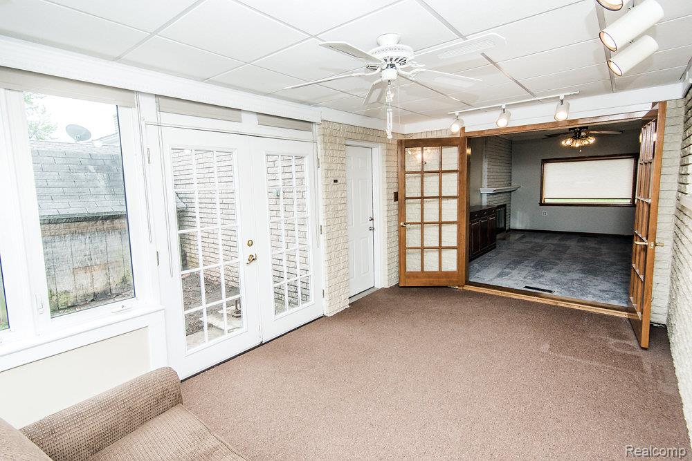 Beautifully maintained, open concept ranch in a sought after subdivision in Warren, within walking distance to De La Salle Collegiate on a large corner lot. Updated kitchen with custom cabinets, Large Family Room/Dining Rm for entertaining including a gas fireplace. French Doors open into a 4 seasons room w/lots of windows. Living Rm offers a huge bay window for beautiful natural light (TV & TV Mount included in Living Rm). All bedrooms have hardwood floors. Large full bath on entry level with additional full bath in basement. Finished basement with new windows, 2.5 car mechanics garage with electrical, 2022 - new roof & Solar panels including Generac battery back-up for furnace. New fascia and soffits, newer seamless gutters with gutter guards, added blown-in insulation. Nicely landscaped yard & paver brick walkway. Easy access to shopping and expressways. Hurry before your dream home is gone!