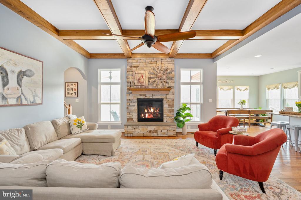 Welcome to a truly exceptional custom-built home featuring five bedrooms and four full bathrooms that is nestled on 3 private acres. This thoughtfully designed home blends comfort, function, and timeless style. From the moment you enter, you'll notice the craftsmanship and attention to detail throughout-featuring striking wood beams, elegant tray ceiling, custom lighting, beautiful tile work, and a gorgeous stone fireplace that anchors the main living area. The heart of the home flows seamlessly, offering both open gathering areas and intentional spaces designed for flexibility and organization. The gourmet kitchen features a double oven and gas cooking that extends effortlessly from the living areas to the outdoors, where a covered porch and patio overlook a private backyard oasis complete with a saltwater pool and mature landscaping. Designed with versatility in mind, this home offers a highly desirable and hard to find floor plan. Inside you'll find generously sized bedrooms, including a luxurious primary suite with a soaking tub, walk-in shower, and walk-in closet located on the main level. Step out onto the covered porch from your bedroom to enjoy the peaceful and serene surroundings. Additionally on the main level, there are