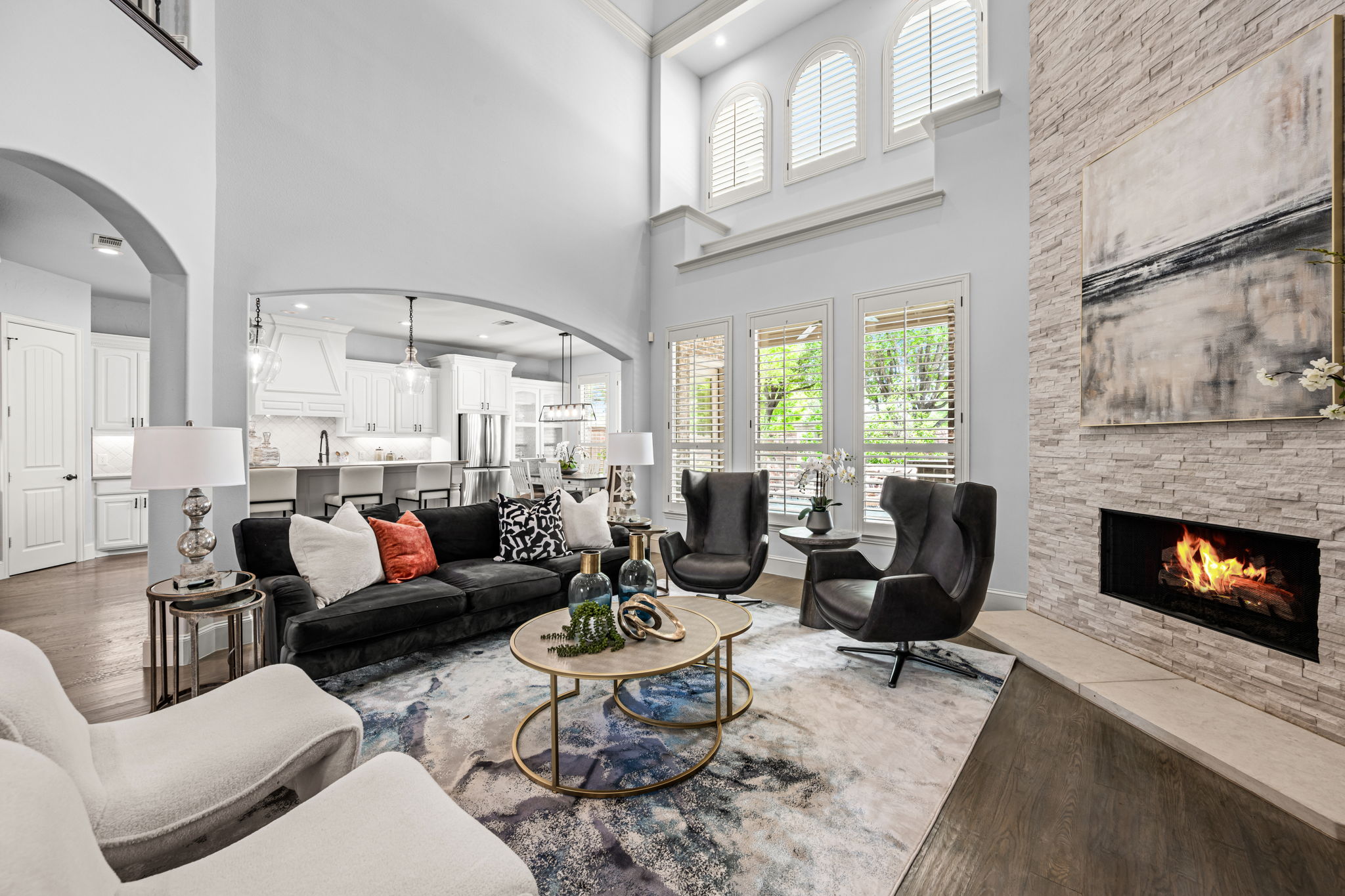 Shaddock Creek Estates. Meticulously maintained, this ivy clad traditional offers 5 bedrooms, 5 baths and 4,538 sq ft of refined family living on a professionally landscaped lot. The stone-and-brick façade and mature plantings announce a home that balances classic curb appeal with thoughtfully updated interiors and generous, and flexible spaces designed for everyday life and entertaining.Step inside to an open plan main level where natural light pours through expansive windows, and an effortless flow connects formal and casual living areas. The main level primary suite is a private retreat with a warming fireplace, walk in closet outfitted by California Closets and an en suite bath with dual vanities, separate shower, and soaking tub tailored for comfort. A downstairs private study with custom built ins provides quiet workspace options, while the utility room—finished with room for an extra fridge—answers practical needs.Upstairs, three bedrooms share expansive living areas anchored by a large game room and a dedicated media room—ideal for movie nights, gaming or a secondary lounge. The well configured floorplan preserves separation between living zones so life and entertaining coexist without compromise. Storage is abundant, including an oversized 3 car garage that accommodates vehicles, gear and seasonal storage.Outdoor spaces read like a private resort: a sparkling pool with cascading waterfall, outdoor kitchen with built-in, gas grill, firepit and a Wisteria covered arbor create multiple alfresco rooms for dining, relaxing and lively gatherings. The landscape design emphasizes privacy and flow between interior and exterior living, augmenting the home’s strong indoor outdoor lifestyle appeal.Located in sought after Shaddock Creek Estates in Frisco, this traditional brick-and stone residence blends classic architectural character with modern amenities—chef friendly kitchen flow, media and entertainment spaces, home office options, generous garage and utility features, and a resort-style backyard. Ideal for buyers seeking a distinguished, move in ready executive style, single family home in a premier Frisco neighborhood.Shaddock Creek Estates living includes winding walking/biking trails and a community pool and playground. Located in top-rated Frisco ISD and minutes from the PGA headquarters, The Star, premier shopping and dining, and major highways.