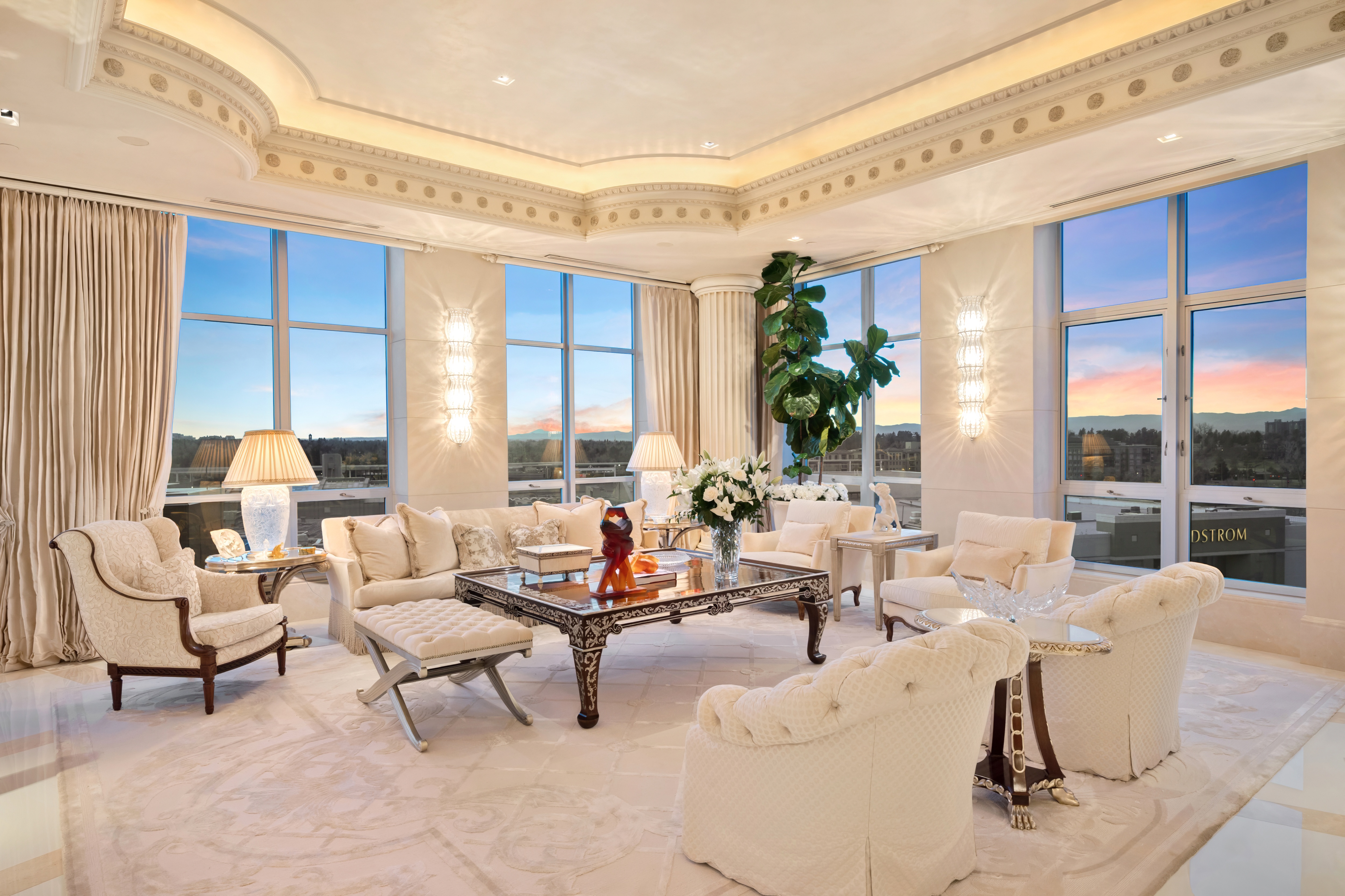 Expertly envisioned and curated, this extraordinary penthouse is a masterclass in design, craftsmanship, and timeless European elegance. Rich mahogany walls, bespoke millwork, and 10-foot doors create a striking sense of arrival, while tailored materials and soft ambient lighting establish an atmosphere that is both grand and intimately refined. Perched in the heart of Cherry Creek, the residence pairs a sophisticated European aesthetic with a floor plan designed for elevated entertaining and effortless daily living. Expansive living spaces unfold beneath soaring ceilings and walls of glass, capturing natural light and framing breathtaking mountain views over the iconic Denver Country Club golf course. A formal dining room graciously accommodates 30+ guests, complemented by a richly appointed mahogany study and two beautifully finished en-suite guest rooms. The primary suite is a private sanctuary, featuring an expansive bedroom, dual custom closets designed to impress the most discerning buyer, and an elegant, spa-inspired bath that evokes a five-star retreat. A remarkable 1,230 square foot terrace extends the living experience outdoors, offering an extraordinary setting for elegant gatherings or quiet evenings immersed in panoramic city lights and Colorado sunsets. Spanning over 7,100 finished square feet, the residence also includes four dedicated parking spaces. At NorthCreek, residents enjoy a level of privacy, security, and service reserved for the world’s finest addresses, with dedicated concierge, valet, and porter services. All just moments from the acclaimed dining, luxury boutiques, and renowned galleries of Cherry Creek North.