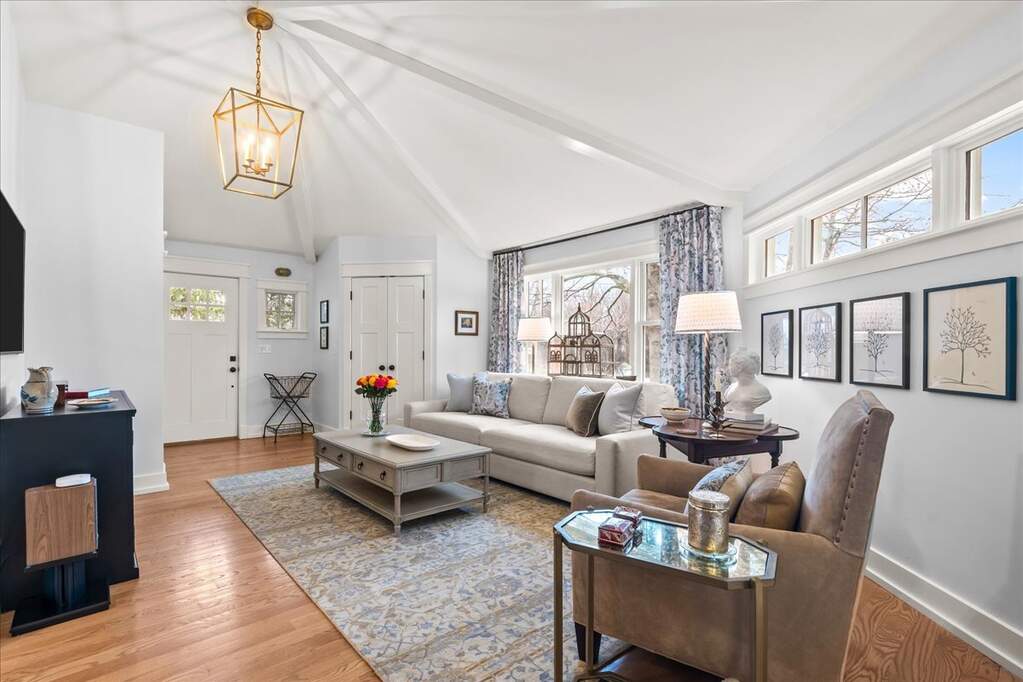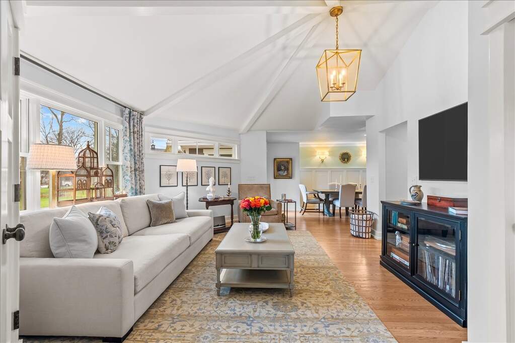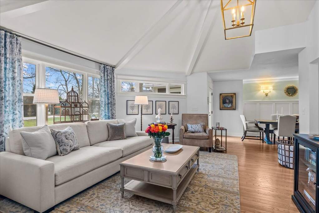 Perfection abounds in this delightful ranch-style home, where gorgeous hardwood floors and soaring ceilings create a warm, inviting feel throughout. The current owners have completed extensive updates, highlighted by a stunning new gourmet kitchen (2024) featuring soft-close cabinetry, a center island, quartz countertops, and Wolf & Subzero stainless steel appliances. The beautiful living room flows seamlessly into the dining room with gorgeous tall wainscoting and access to an outdoor patio, while the kitchen opens to a cozy family room with a fireplace and sliders leading to a second patio-ideal for indoor-outdoor living. The private primary suite offers a walk-in closet, a luxurious en suite bath, and direct access to the patio. Three additional bedrooms provide comfortable space for family or guests. Additional improvements include new windows (2017), two newly paved patios with a new fence (2024), plantation shutters, updated light fixtures (2024), a new generator (2024), hot water heater (2017), roof (2017), and furnace (2017). Ideally located near Northcroft Park, shopping, and schools-this home is truly an absolute gem!