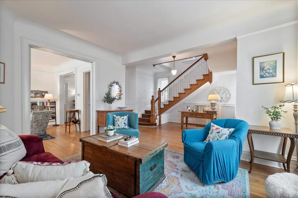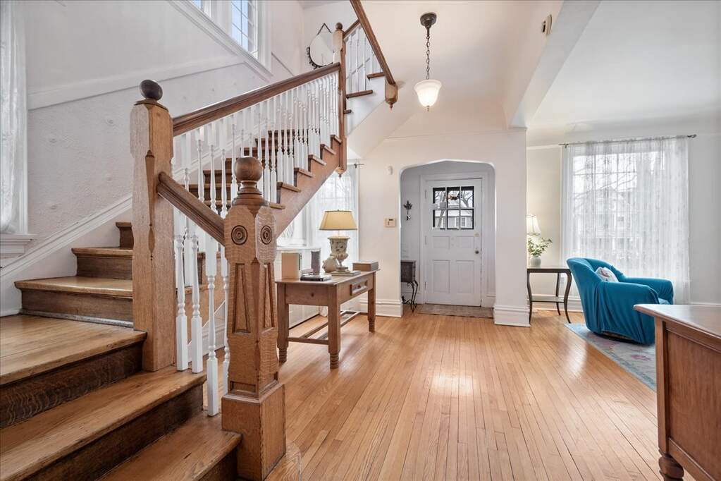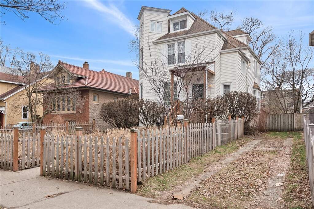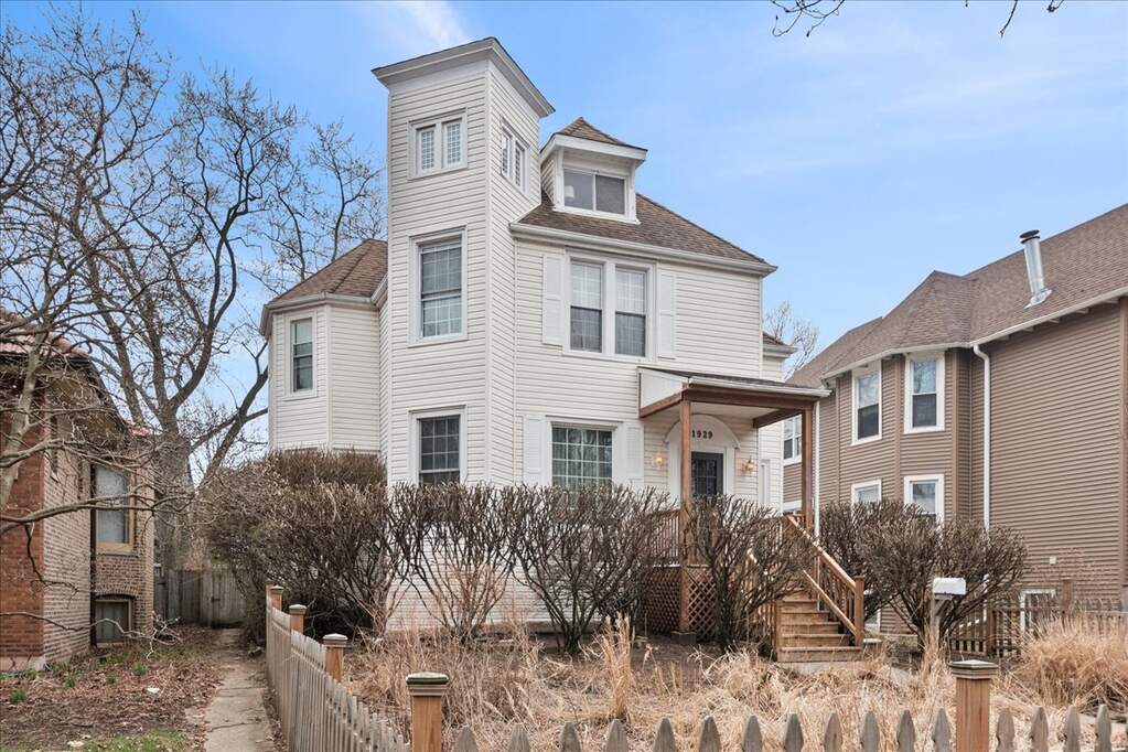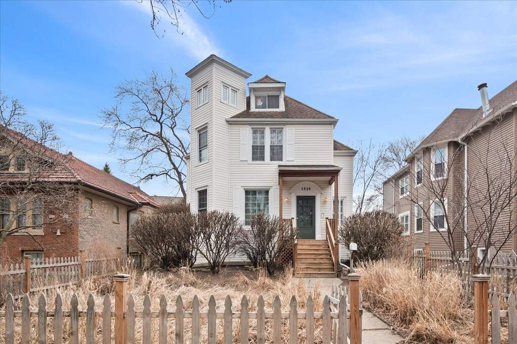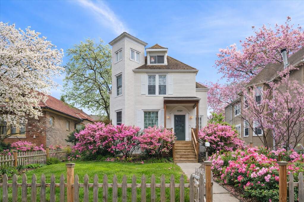 Welcome to 1929 Lunt Ave - a beautifully maintained 1870s farmhouse that seamlessly blends original character with thoughtful modern updates. Set on a lush, oversized 50 x 170 lot, this property offers the rare convenience of a driveway along with a newer two-car garage. From the moment you enter, you'll be struck by the home's bright, airy feel and timeless architectural details. The main level is designed for both everyday living and effortless entertaining, with a natural flow between the living room, dining room, family room, and kitchen. Highlights include a gracious foyer, sun-drenched formal living room, and a warm, inviting family room featuring a gas fireplace and custom built-ins. The stunning formal dining room showcases an original tin ceiling and bay window, creating a truly memorable space. A full bath, beautifully renovated kitchen, and versatile breakfast room-perfect as an office or playroom-complete the first floor. Upstairs, four spacious bedrooms offer abundant natural light and generous closet space. The bathroom is a true retreat, featuring a walk-in shower, soaking tub, and walk-in closet. Don't miss the convenient second-floor laundry room. The semi-finished third floor provides flexible space for a home office, playroom, or additional storage. Step outside to enjoy the expansive private deck and backyard-ideal for entertaining, gardening, or simply relaxing. Perfectly positioned across from Lunt Playlot Park, you'll enjoy green space and a playground just steps from your front door. Lovingly cared for, this is a home filled with warmth, character, and lasting memories-ready for its next chapter. This is an as-is, estate sale.