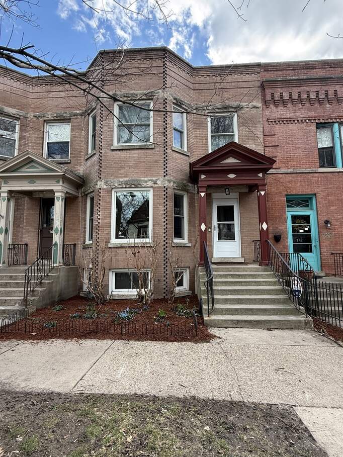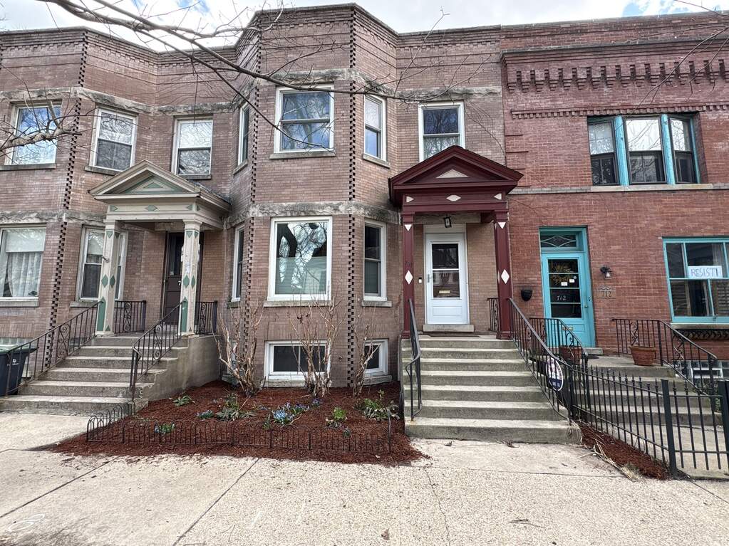 Timeless charm meets modern living in this beautifully maintained 1899 rowhouse, in the heart of Evanston. From the moment you step through the double-door entry, you're welcomed by soaring 9.5-foot ceilings, original hardwood floors, and stunning vintage details, including intricate trim and classic doorknobs. A mudroom area, at the entry, provides a space to hang coats and leave shoes. Large, updated Anderson windows throughout provide incredible natural light throughout the day. The oversized living room is perfect for relaxing or entertaining, anchored by a cozy gas fireplace. The thoughtfully updated kitchen, with quartz counter tops, white cabinets, tons of pantry space, a breakfast bar and stainless-steel appliances opens seamlessly to the dining area, creating an ideal space for everyday living and gatherings. A butler pantry off the dining room adds both character and functionality. Great flow from the kitchen to the deck and backyard makes indoor-outdoor entertaining easy. The backyard has a large paver patio, space for a garden, is fully fenced and has access to a private alley behind the home. An updated 1/2 bath conveniently finishes off the first floor. Beautiful hardwood stairs bring you upstairs where you'll find three bedrooms, plus one additional tandem bedroom. The spacious primary suite offers an additional flex area-ideal for a private in-home office or sitting area. The hall bath features a large soaking tub, skylight, heated floors, and classic black-and-white tile. Generous closet space throughout. The basement has been dug out, is already plumbed for a full bathroom, and has direct access to the backyard, providing incredible potential to expand your living space. Use this space for your storage needs and transform the rest into a family room, guest space, in-law suite or any unique space you can dream of. All of this and an unbeatable location-just steps from the Metra and El trains, the Main and Chicago Avenue shops and restaurants, parks, schools, and an easy walk to Lake Michigan. With easy access to Northwestern and downtown Chicago, this home truly offers the best of Evanston living.