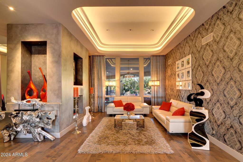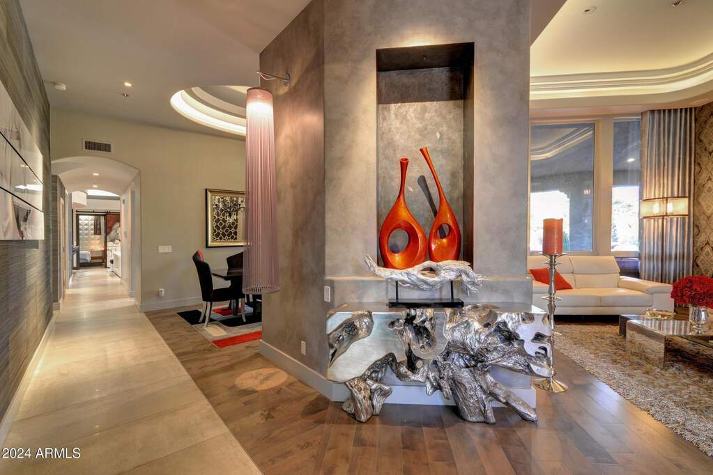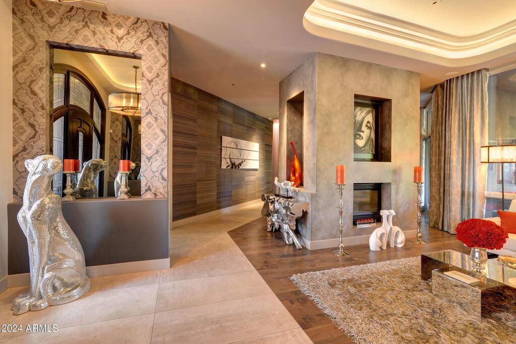 Step inside a premier Scottsdale Cactus Corridor custom home with no HOA. This 5,400 sq ft with detached guest house features ample elegance and luxury. Very chic home for both a private oasis like living or over the top entertaining. Features include acre plus lot with resort style backyard, pool/spa water features, open air shower, sports court, firepit and BBQ kitchen. The inside oasis features graceful details with elegant ceilings, custom lighting throughout, luxury finishes, Alderwood cabinetry, and travertine floors. Primary retreat includes jetted tub/steam shower. Chef's kitchen has SS Dakor appliances, expansive island and much more. Detached guest casita with kitchen includes flex space as a fitness center or getaway retreat. Come see the gorgeous home for yourself today!