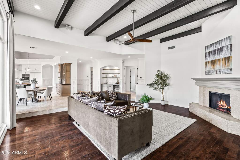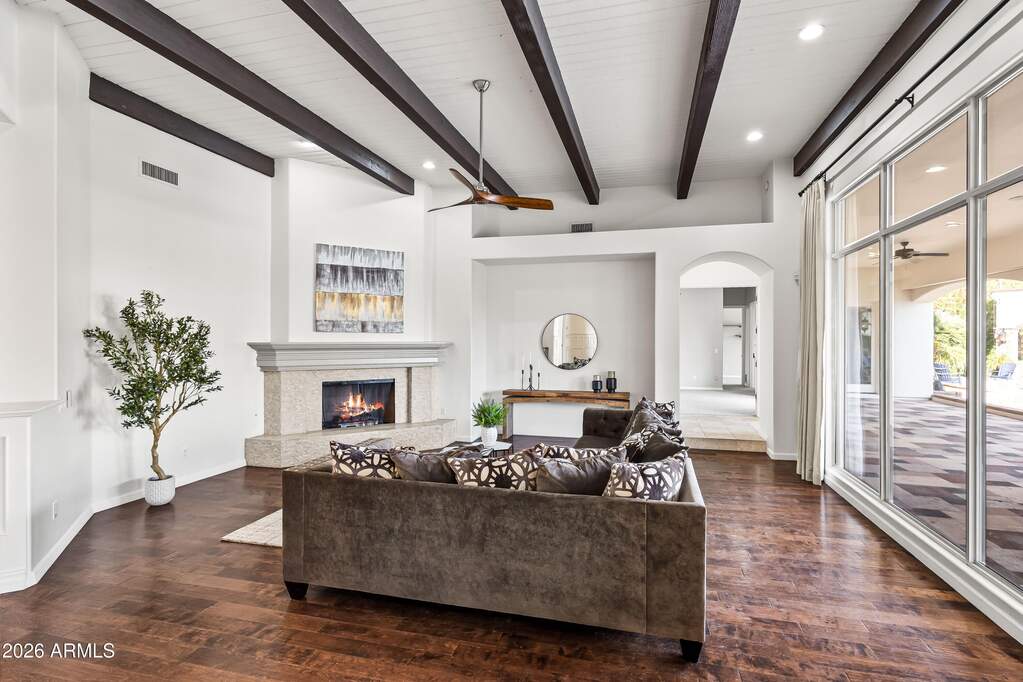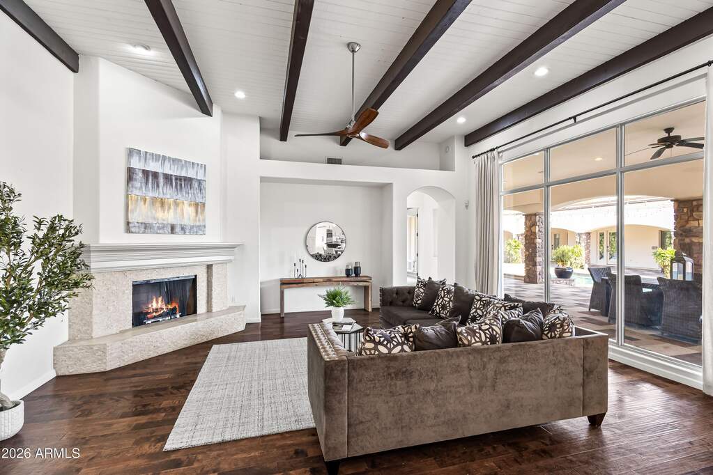 Gated 1-acre lot in the exclusive enclave of Ironwood at Camelback Country Club. With only nine homes in this quiet, highly sought-after Paradise Valley community, this estate offers exceptional privacy, luxury, and direct access to the 7th hole. The main residence showcases timeless architectural details including soaring ceilings, arched entryways, paneled walls, and multiple gas fireplaces. The well-designed layout features formal living and dining rooms, along with a dedicated study complete with built-in shelving. Designed for both everyday living and elevated entertaining, the open-concept family room flows seamlessly into the chef's kitchen, appointed with premium Wolf and Sub-Zero appliances, a butcher block island, breakfast nook, and walk-in pantry. The primary suite is a private retreat with direct outdoor access, a cozy sitting area with fireplace, and a spa-inspired bath featuring dual vanities, a freestanding soaking tub, oversized walk-in shower, and a custom walk-in closet with integrated laundry. The backyard is ideal for year-round entertaining, offering a heated pool and spa, multiple covered patios, an exterior fireplace, and fire pit with ample space to relax and gather. A fully equipped guest house enhances the property with its own kitchen, game room, living area, and expansive movie theater--perfect for multi-generational living or extended stays. Additional highlights include a 5-car garage and a premier location just minutes from Arizona's top resorts, fine dining, shopping, and entertainment. A rare opportunity to own a luxury golf course property in one of Paradise Valley's most intimate and desirable communities.