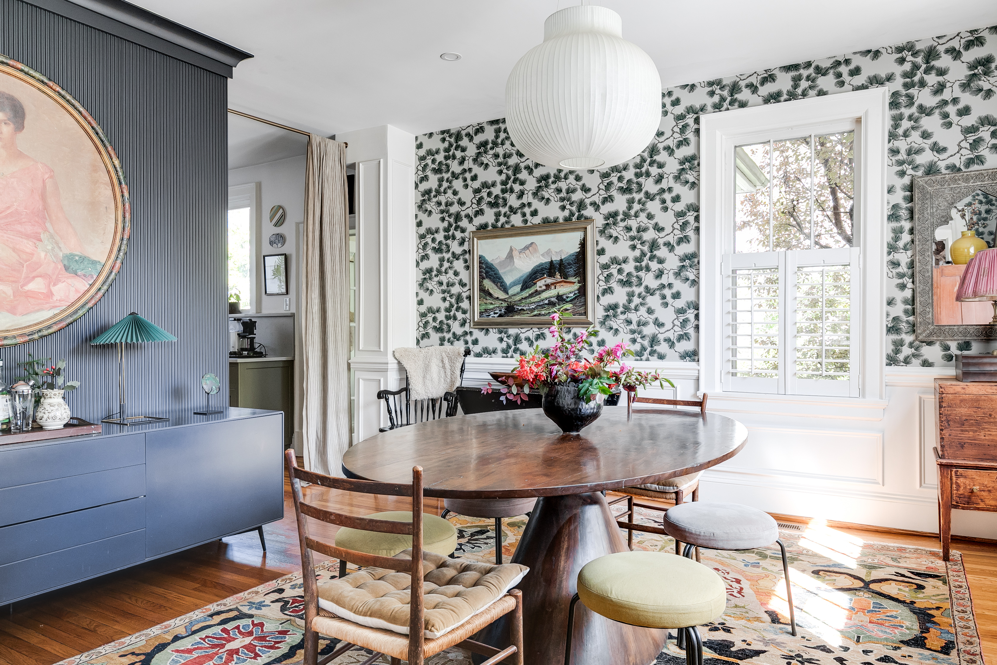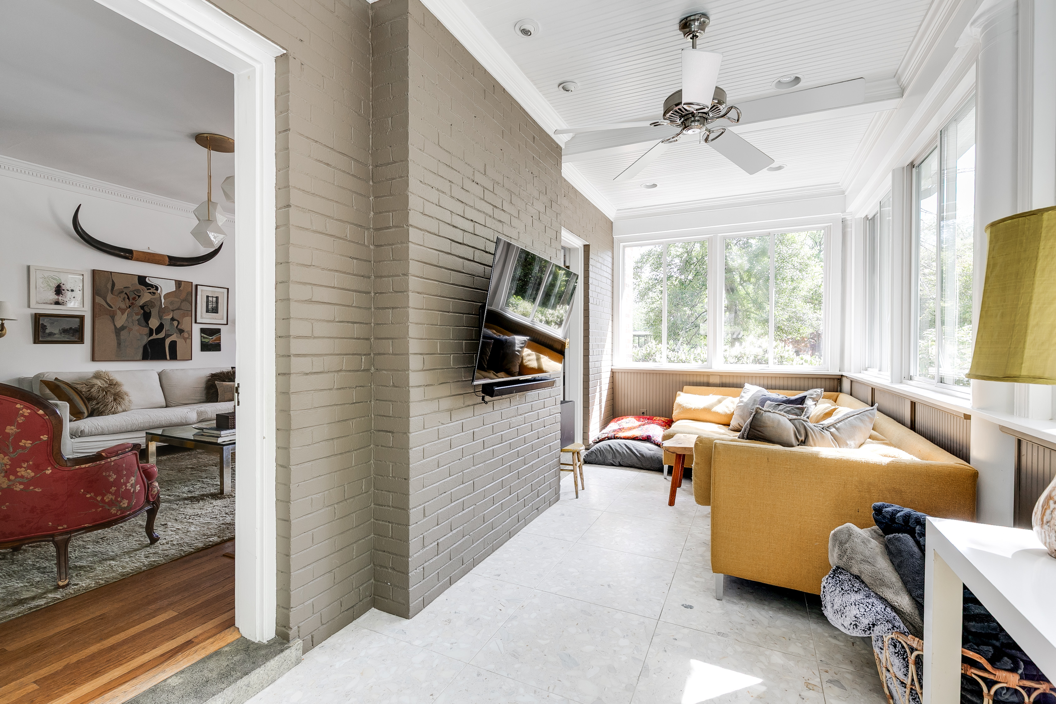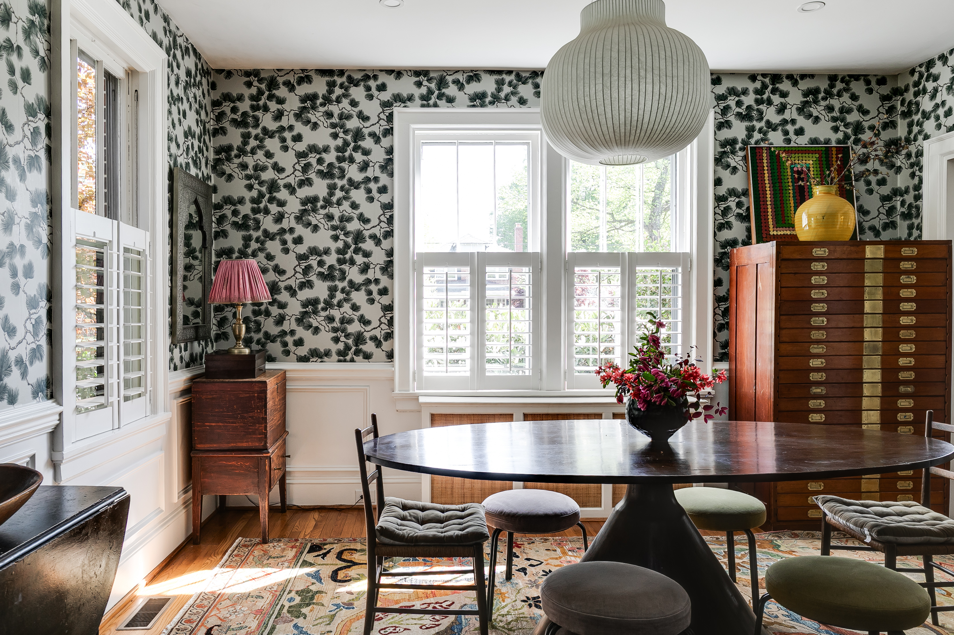 Welcome to Ginter Park's most distinguished Avenue. Listed on the National Register of Historic Places, this storied neighborhood was developed by Richmond's own Lewis Ginter—and this impressive brick and slate Colonial carries that legacy forward on over half an acre of established gardens and a well maintained pool. The covered back porch with double-sided gas fireplace leads to an ipe deck perfect for grilling, then opens to a brick-surround pool framed by a wisteria-draped pergola. Beyond the pergola, the lush manicured lawn extends generously—ideal for serious lawn games and everything else a backyard should do. Natural light moves through the home all day. The inviting foyer opens to professionally designed interiors where modern lighting and a sophisticated palette set off the original hardwoods and elaborate moldings. The spacious living and dining rooms welcome large gatherings while still feeling intimate. The renovated kitchen is the most inviting space for families to prep dinner together—custom cabinetry, honed Caesarstone countertops, stainless Viking range and fridge, range hood and pendant lighting create a dream kitchen that perfectly complements the home. The primary suite offers a walk-in closet with custom shelving and a spa bathroom with heated floors—a standard carried through to the additional bathrooms and sunroom. Three more bedrooms with updated fixtures and custom built-in closets. Bonus rooms—an all-season sunroom, home office and mudroom—balance the first floor, ensuring everyone has a place for their interests. An additional 1,148 SF of naturally lit unfinished basement handles laundry, gym, workshop & storage, with a shed in the backyard for the overflow. Drive through the motorized gate to find ample parking and a 1.5-car garage. A peaceful property within blocks of Bellevue & MacArthur Avenues’ best restaurants, stores, shops, Bryan Park & the farmer's market—and the sycamore-lined streets of one of Richmond's most beloved historic neighborhoods. Don't miss the video tour!