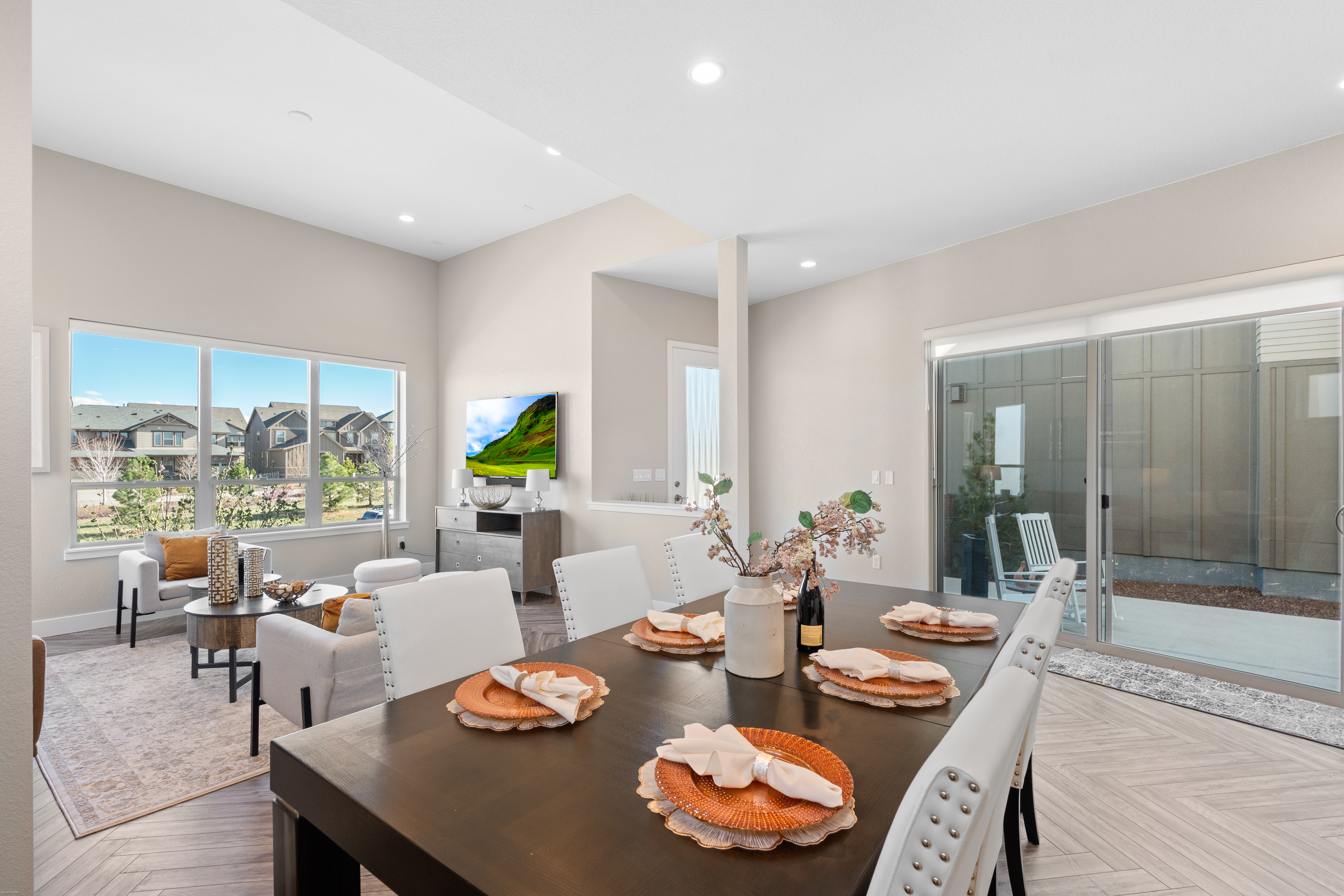 There’s a difference between a home that simply looks good and one that truly lives well. This one delivers both.Modern 4-bedroom, 4-bathroom home in Sterling Ranch with upgraded finishes, open-concept living, and a fully finished basement; designed to stand out from typical builder-grade homes.From the moment you walk in, the difference is clear. Wide-plank herringbone flooring, abundant natural light, and a thoughtful layout create a home that feels elevated from the start. The kitchen is the centerpiece, featuring an oversized quartz island, two-tone cabinetry, full-height designer backsplash, gas range, and seamless flow into the dining and living areas, ideal for both everyday living and entertaining.A large sliding glass door extends the living space outdoors, creating an easy indoor-outdoor connection to the private patio; perfect for relaxing or hosting.The main level also includes a dedicated office or flex space, offering versatility for work-from-home or additional living needs.Upstairs, the spacious primary suite offers a clean, modern retreat with a dual vanity and glass-enclosed shower, while secondary bedrooms are well-sized and thoughtfully positioned.The finished basement adds valuable flexibility with a large rec/media space, additional bedroom and bathroom, and room for a gym, guests, or multi-generational living.Life in Sterling Ranch extends well beyond the home itself. With access to community centers, pools, fitness spaces, parks, and miles of interconnected trails, the neighborhood is built around an active and connected lifestyle; offering both convenience and a sense of place within one of the area’s fastest-growing communities.This is the difference between a home that simply meets expectations—and one that’s been designed to deliver more at every turn.