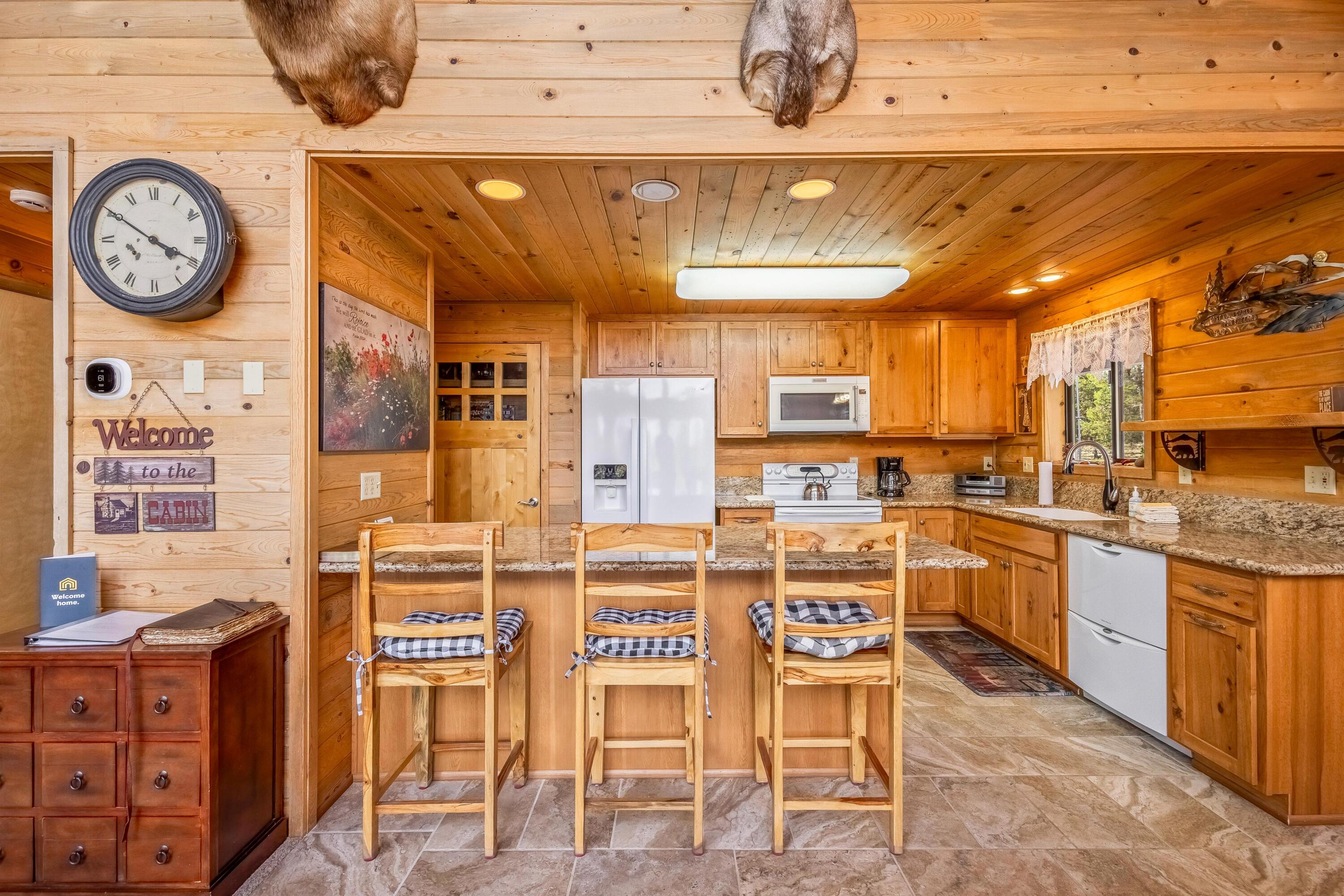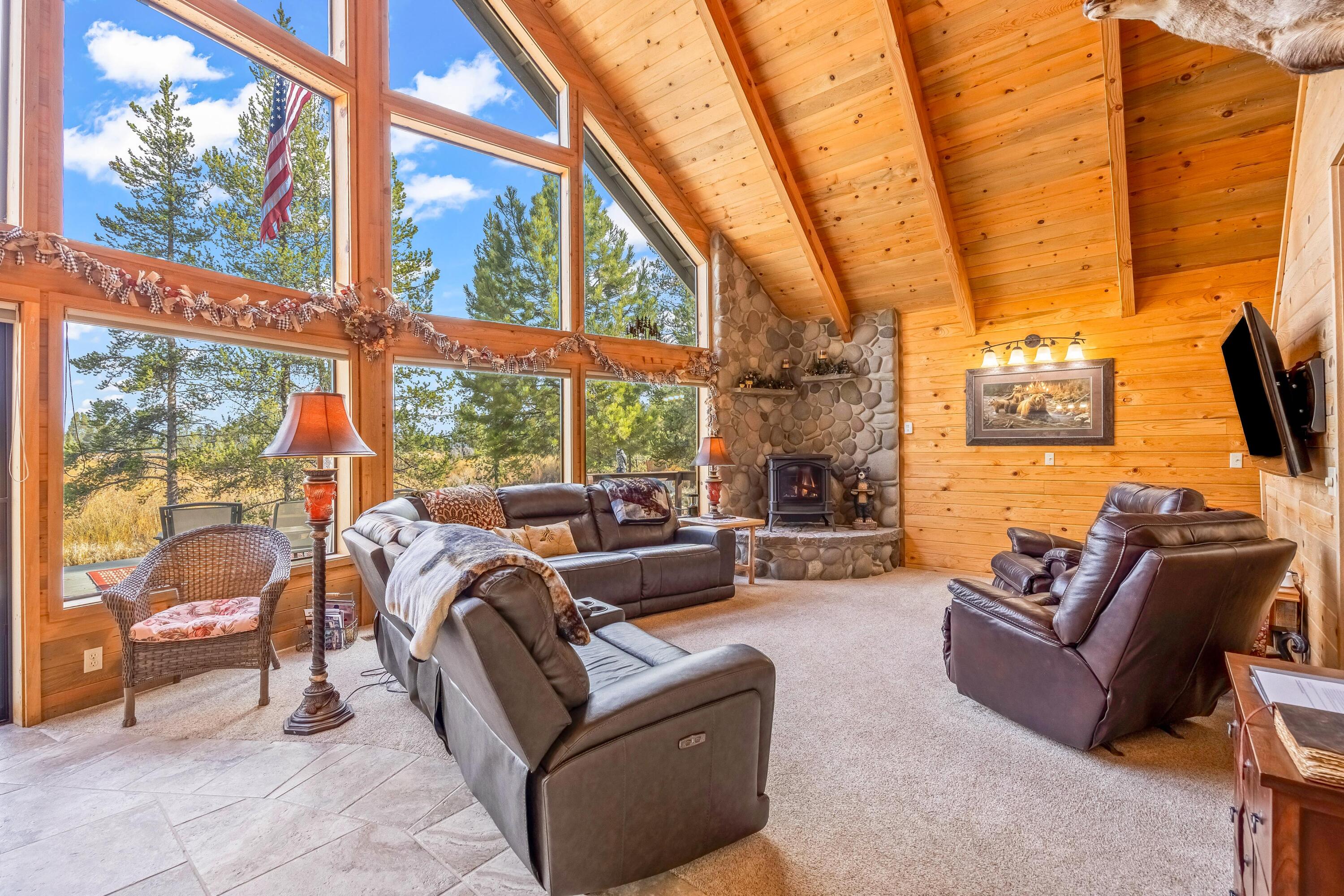 Set on 1.93 riverfront acres, this is the ultimate blend of privacy, recreation and Northwest charm. A soaring vaulted great room welcomes you with exposed beams, rich blue pine finishes, and a dramatic wall of windows that floods the space with natural light. Thoughtful updates--including new flooring throughout, an updated lower bath, and a newer furnace/heat pump--bring modern comfort to this warm, rustic retreat (septic replaced in 2014). The kitchen offers a breakfast bar and pantry, flowing seamlessly into a spacious laundry/mud room designed for easy living. Upstairs, a loft retreat frames stunning views of Mt. Bachelor. Step outside to a wraparound covered deck, ideal for year-round entertaining. Wander charming boardwalks to a bunkhouse and an impressive 25x30 shop with a 12' door. With RV parking, a private mini dock, and direct access to the Little Deschutes River, adventure is right outside your door. Located on a paved road across from BLM and just minutes to golf.
