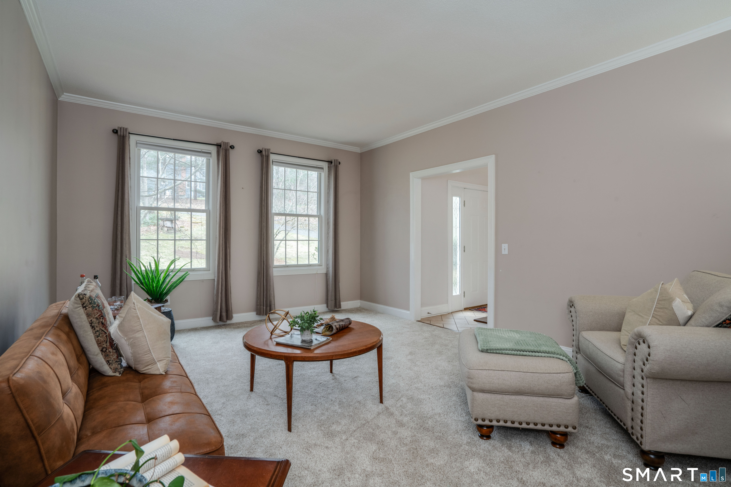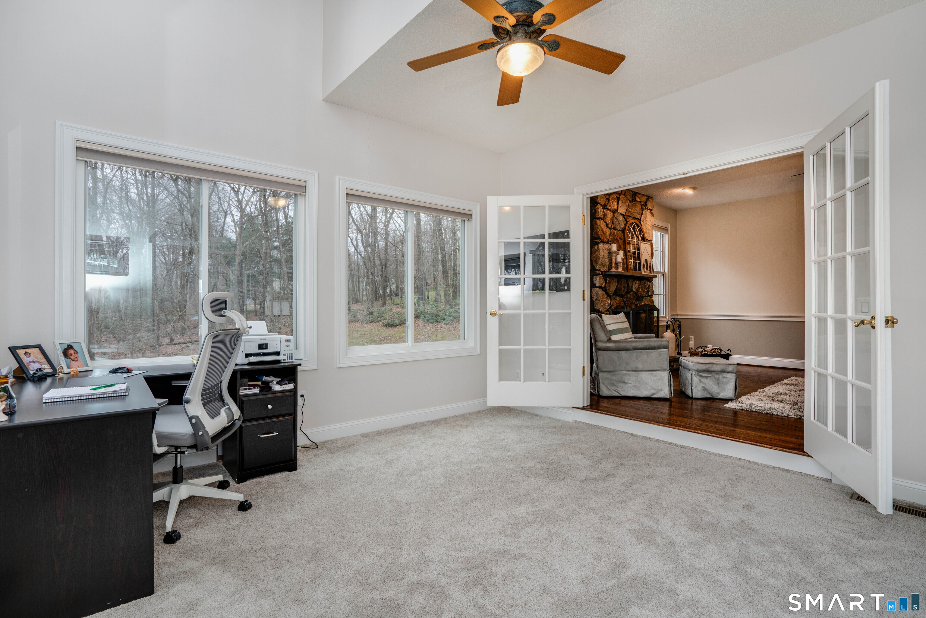 Tucked at the end of a quiet cul-de-sac, 205 Blue Hills Trail offers a rare blend of privacy, tranquility, and connection to nature all within one of Glastonbury's most desirable neighborhoods. This classic 4-bedroom colonial, sited on over 2 acres, abuts expansive protected land with direct access to miles of wooded trails - an ideal setting for those who value space, peace, and the outdoors. Inside, the home offers a thoughtful, flexible layout. A standout feature is the stunning sunroom, currently used as a home office, with incredible views of the surrounding natural landscape - bringing light and calm into your everyday routine. The adjacent family room, which is open to the kitchen, has hardwood floors and a stunning stone fireplace. The second floor features a spacious bonus room perfect for a playroom, rec space, or additional family room, providing separation and versatility. The walk-out basement offers excellent ceiling height and footprint, making it well-suited for future finishing if desired. First-floor laundry is conveniently located. This property prioritizes quiet enjoyment, scenic beauty, and a sense of retreat, all while still being part of a sought-after neighborhood community. A warm, inviting home with room to grow, both inside and out!