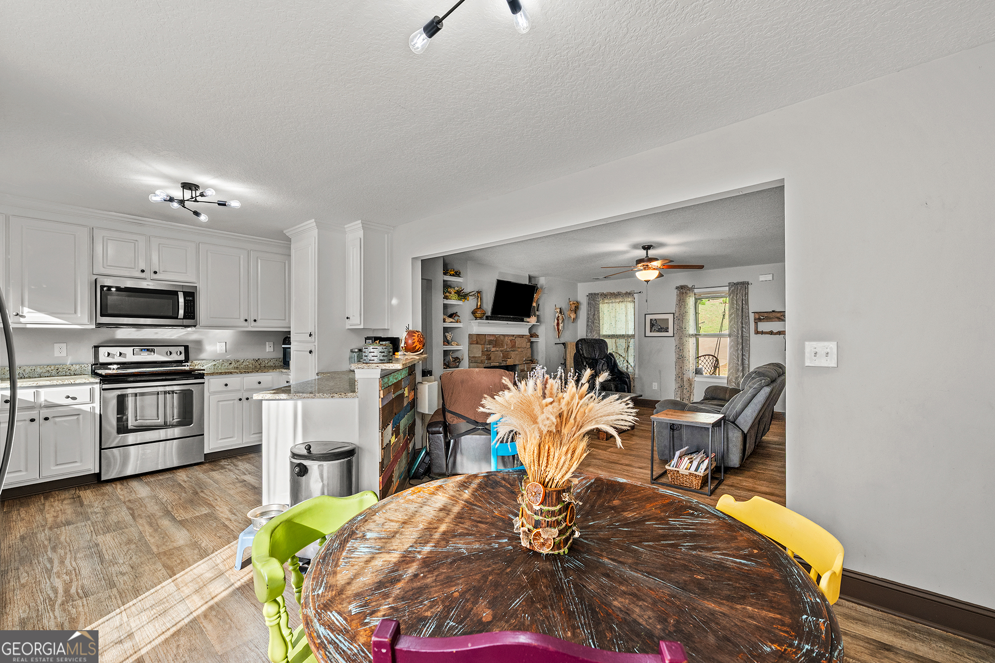 Nestled on a spacious 1.16-acre lot, this 3-bedroom, 2-bath home offers the perfect combination of comfort, style, and privacy. Step inside to a welcoming living area highlighted by a beautiful rock fireplace-ideal for cozy evenings at home. The kitchen features granite countertops, stainless steel appliances, and plenty of space for cooking and gathering. Laminate flooring runs throughout the main living areas, while the bedrooms are comfortably carpeted for a warm, inviting feel. The home's exterior showcases durable Hardie plank siding accented with stone for added character and curb appeal. With over an acre of land, there's ample room to enjoy outdoor living, gardening, or simply relaxing in your own private setting.