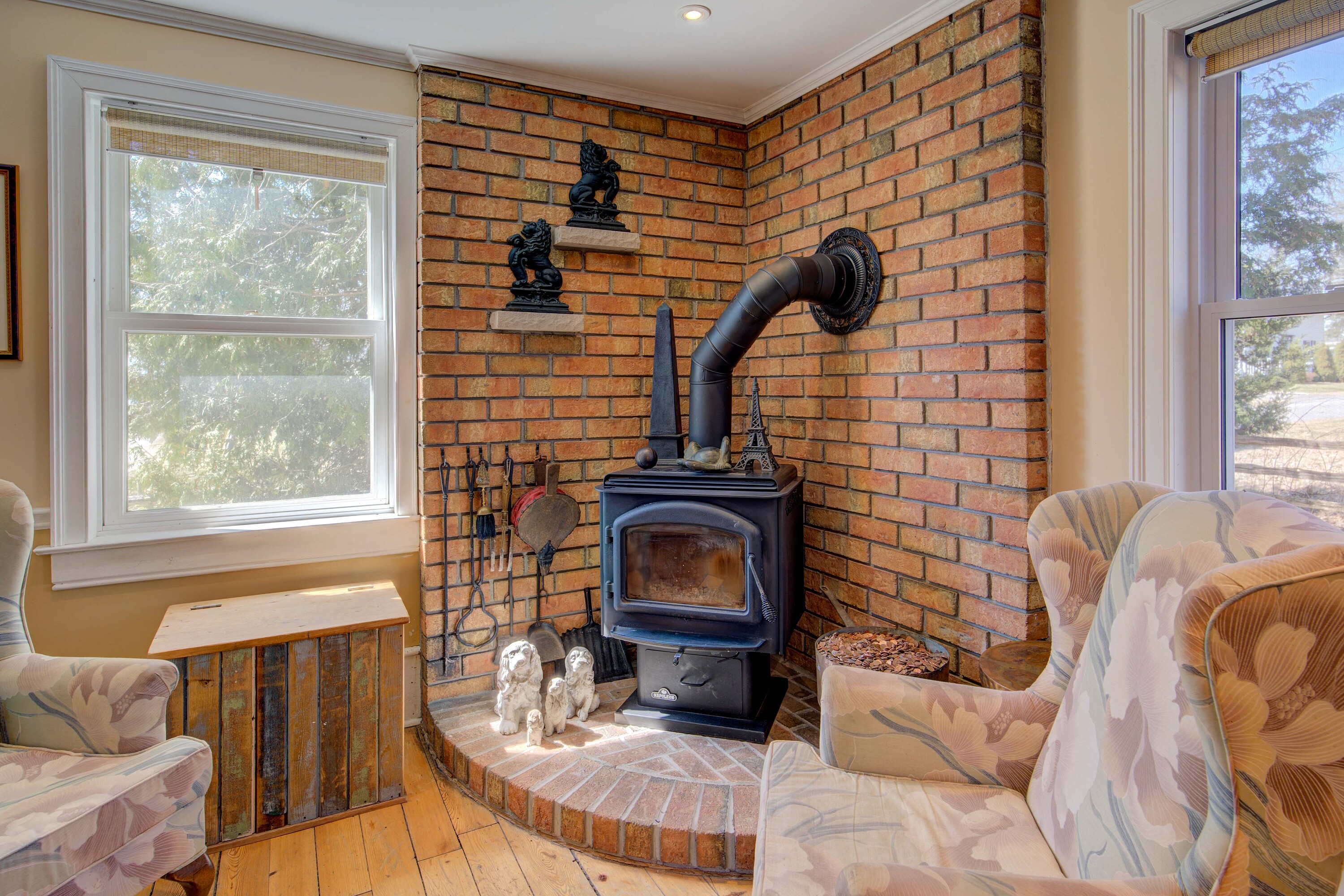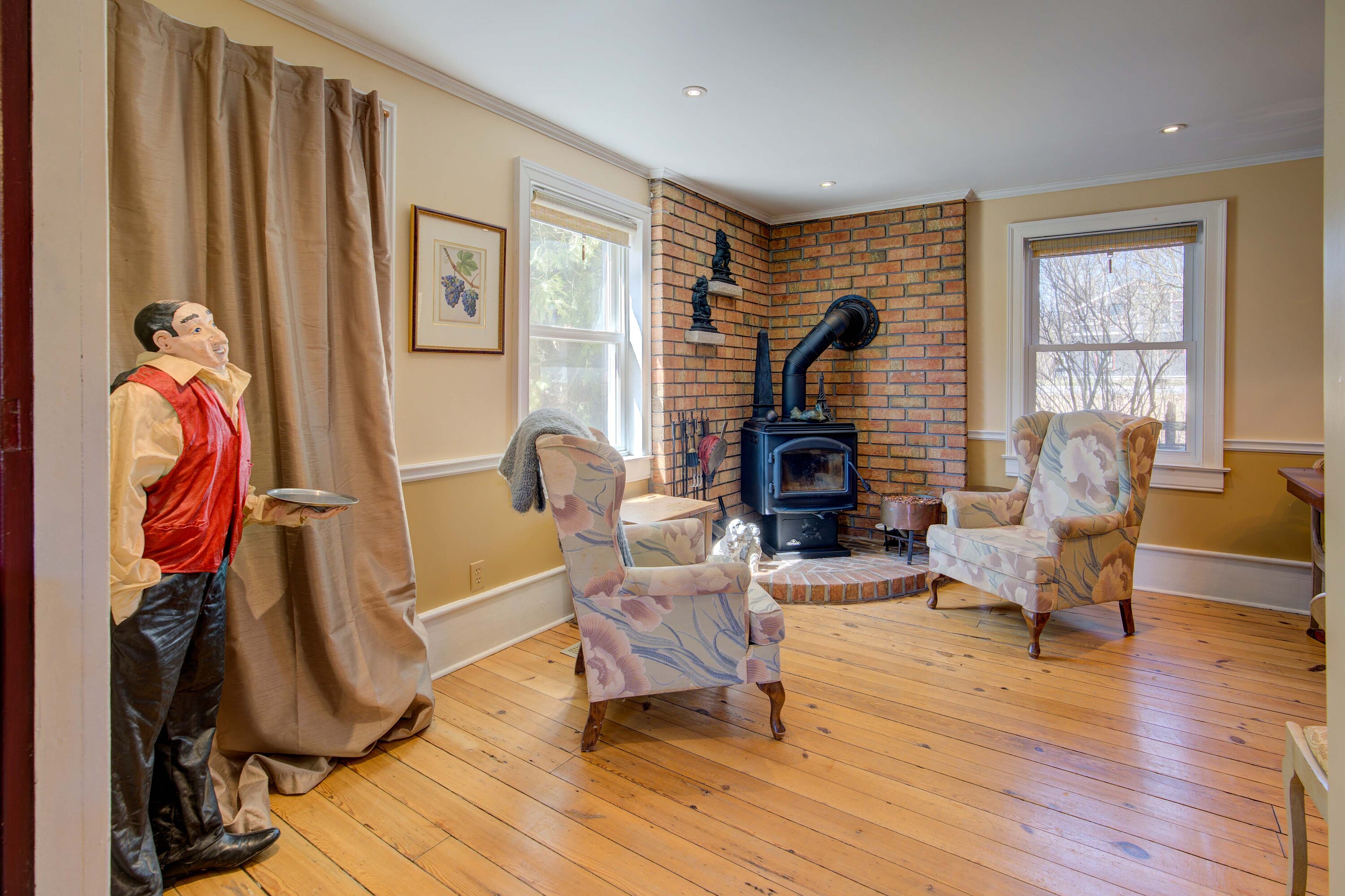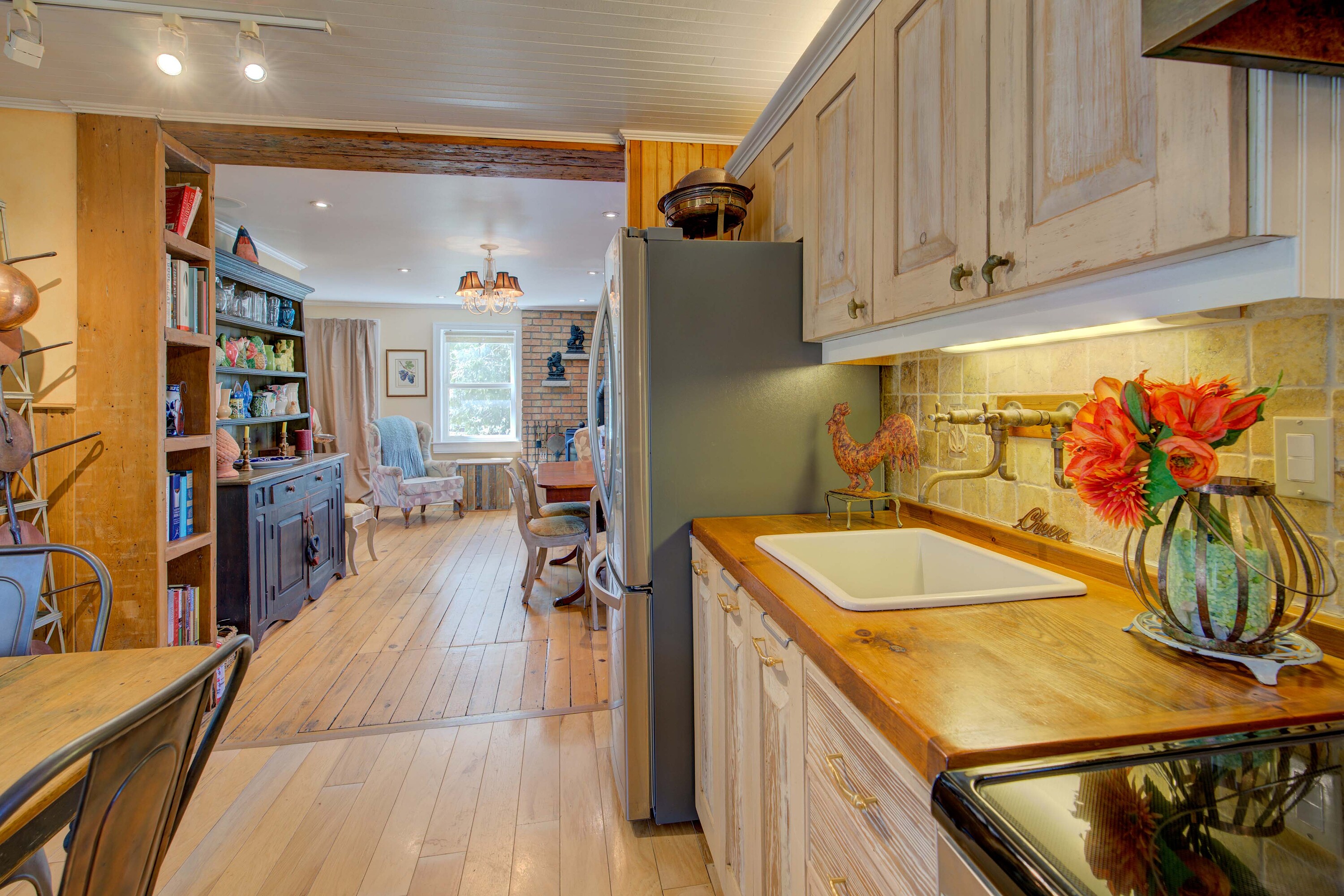 Imagine owning a charming year-round home or country retreat just a stone's throw from the vibrant destination Village of Warkworth. Dating back to the 1830s, this delightful property is brimming with character, featuring original plank wood floors and an inviting floor plan. The country-sized kitchen comes fully equipped with a full complement of appliances and opens via double garden doors to a spacious, south-facing entertainment deck. The main level also includes a separate dining room, a family area with a cozy woodstove, a separate living room, and a full bathroom featuring a vintage soaking tub and separate shower. An original pine staircase leads to the upper level, which offers a light-filled loft sitting room. The spacious primary bedroom includes a private sitting area, a walk-in closet, and extra storage, while the guest bedroom overlooks the pastoral gardens. A convenient powder room is also located on this level. The picturesque, fenced grounds feature glorious perennial gardens and a small barn or garage, with a workshop and loft. Additionally, a 22' x 17' unfinished "summer kitchen" is attached to the house, offering a unique opportunity for your creative touch. Perfectly situated for leisure, golf enthusiasts will also appreciate being situated within minutes of three local golf courses. Within 1 3/4 hour drive from the GTA.