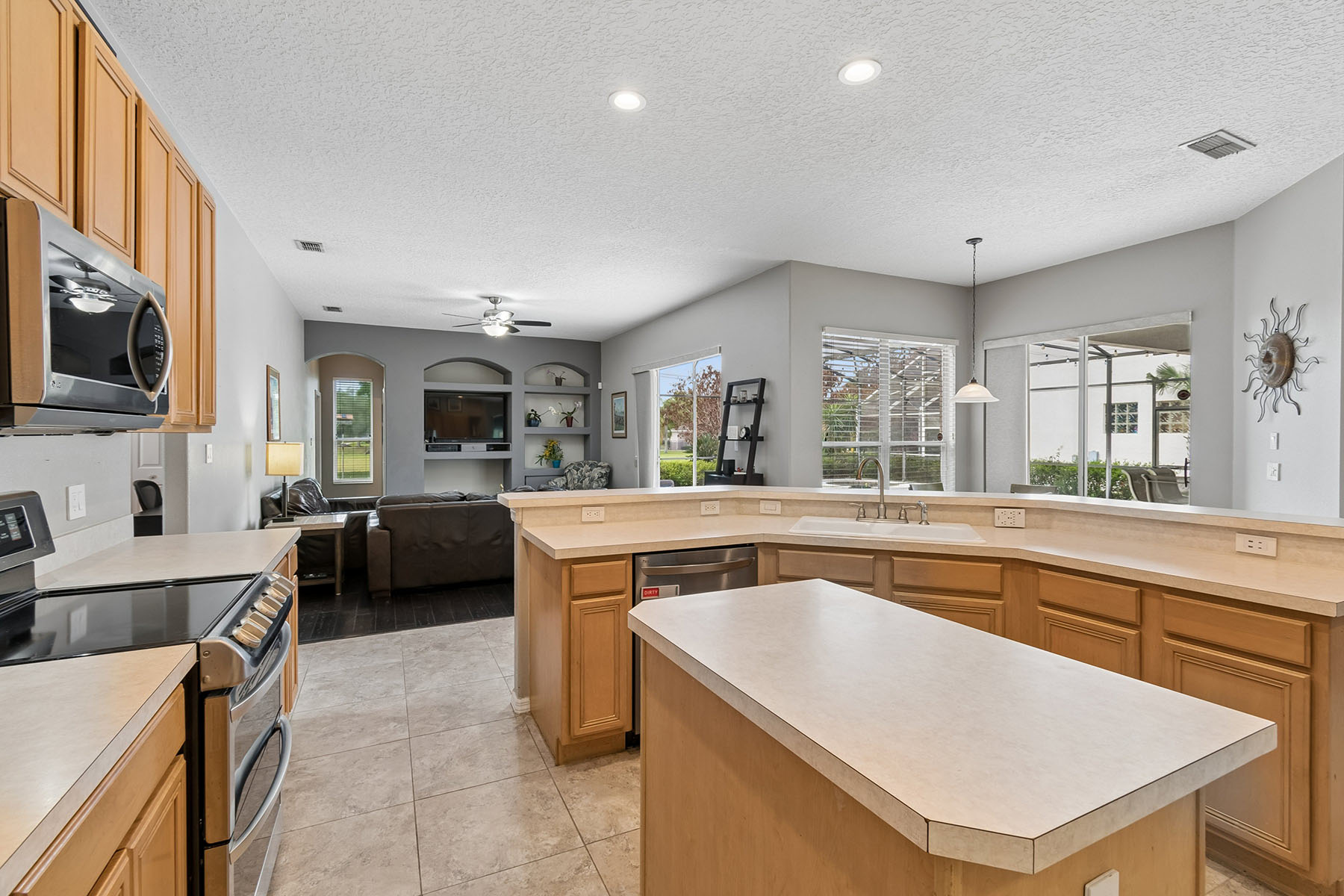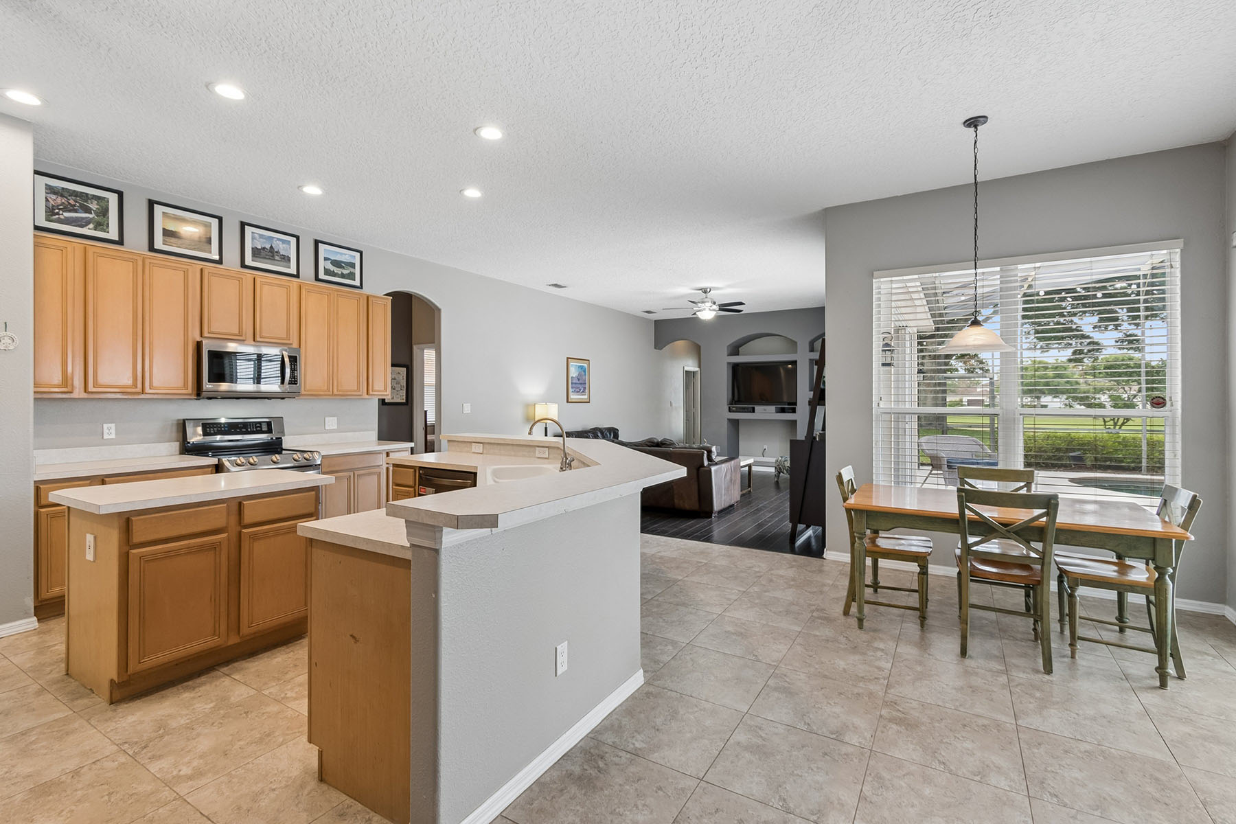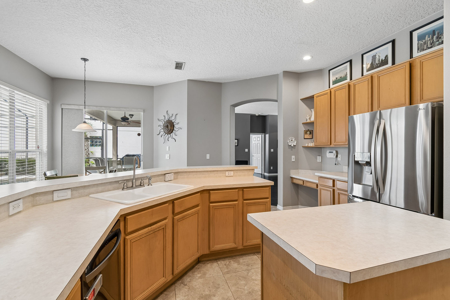 Welcome to a beautifully maintained four-bedroom, three-bath pool home located in the highly desirable Dr. Phillips area of Orlando, just minutes from all the area's world-famous theme parks. Situated on a generous 0.33-acre lot with no rear neighbors, this property offers exceptional privacy, outstanding curb appeal and a spacious three-car garage with abundant storage. Inside, you'll find a thoughtfully designed split floor plan featuring formal living and dining rooms, along with a bright and open family room that seamlessly connects to the kitchen, ideal for both everyday living and entertaining. The kitchen serves as the heart of the home, featuring a double oven, center island, expansive breakfast bar and a cozy eat-in nook overlooking the family room and sparkling pool. The primary bedroom features pool views, two closets and an ensuite bathroom with dual sinks, a garden tub, a walk-in shower and a private toilet closet. The private layout includes a versatile rear bedroom and full bath with a walk-in shower, perfect for a guest suite or in-law retreat. This bathroom also offers direct access to the pool area, making outdoor entertaining effortless. Two additional bedrooms share a full bath with a tub/shower combination. Step outside to your private backyard oasis and enjoy the pool with no rear neighbors, providing added privacy and a peaceful setting. Numerous updates add value and peace of mind, including: freshly painted lanai and ceiling (2026); new water heater (2025); new ceiling fans in the primary, secondary bedrooms and family room (2025); new septic drain field and new access cover (2024); A/C condenser (2022); kitchen appliances (2022); LG washer and dryer (2021); tile flooring in the kitchen, laundry room, hallway and second bathroom (2019); hardwood flooring in the back bedroom, primary bedroom and formal living and dining rooms (2014 & 2016); roof (2012); and pool resurfacing with new tile (2012). Residents of this sought-after community enjoy outstanding amenities, including a clubhouse, lighted tennis and pickleball courts, a playground, a private boat ramp, and a dock on the Big Sand Lake Chain of Lakes, a 1,200-acre private lake ideal for boating, skiing and fishing. With a remarkably low HOA of just $575 per year, lake access and these amenities make this community an exceptional value. Just outside the neighborhood, a convenient path leads to the elementary and high school, as well as Dr. P. Phillips Community Park and new little league baseball fields. The park features picnic areas, walking trails, sports courts, a playground, a dog park and rentable pavilions. This prime location places you minutes from upscale shopping, dining along Restaurant Row, and major attractions including SeaWorld Orlando, Universal Orlando Resort and Walt Disney World's Magic Kingdom. With easy access to major highways, Orlando International Airport, and downtown Orlando, this home truly offers the best Florida living. Don't miss your opportunity to own in one of Orlando's most desirable areas.