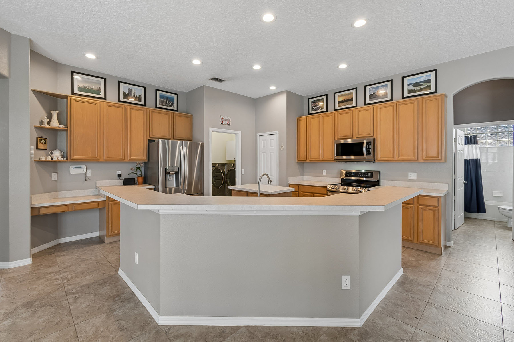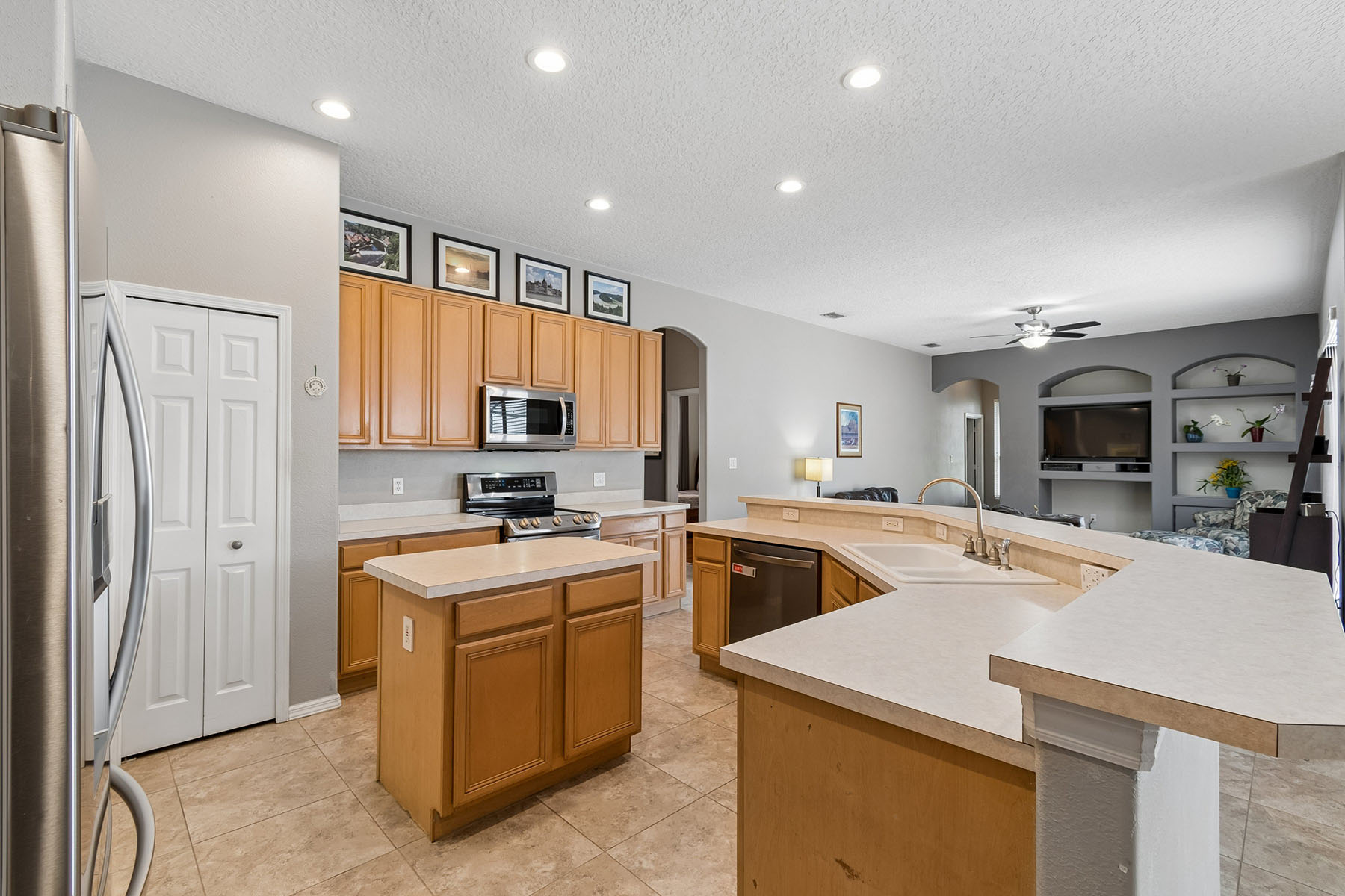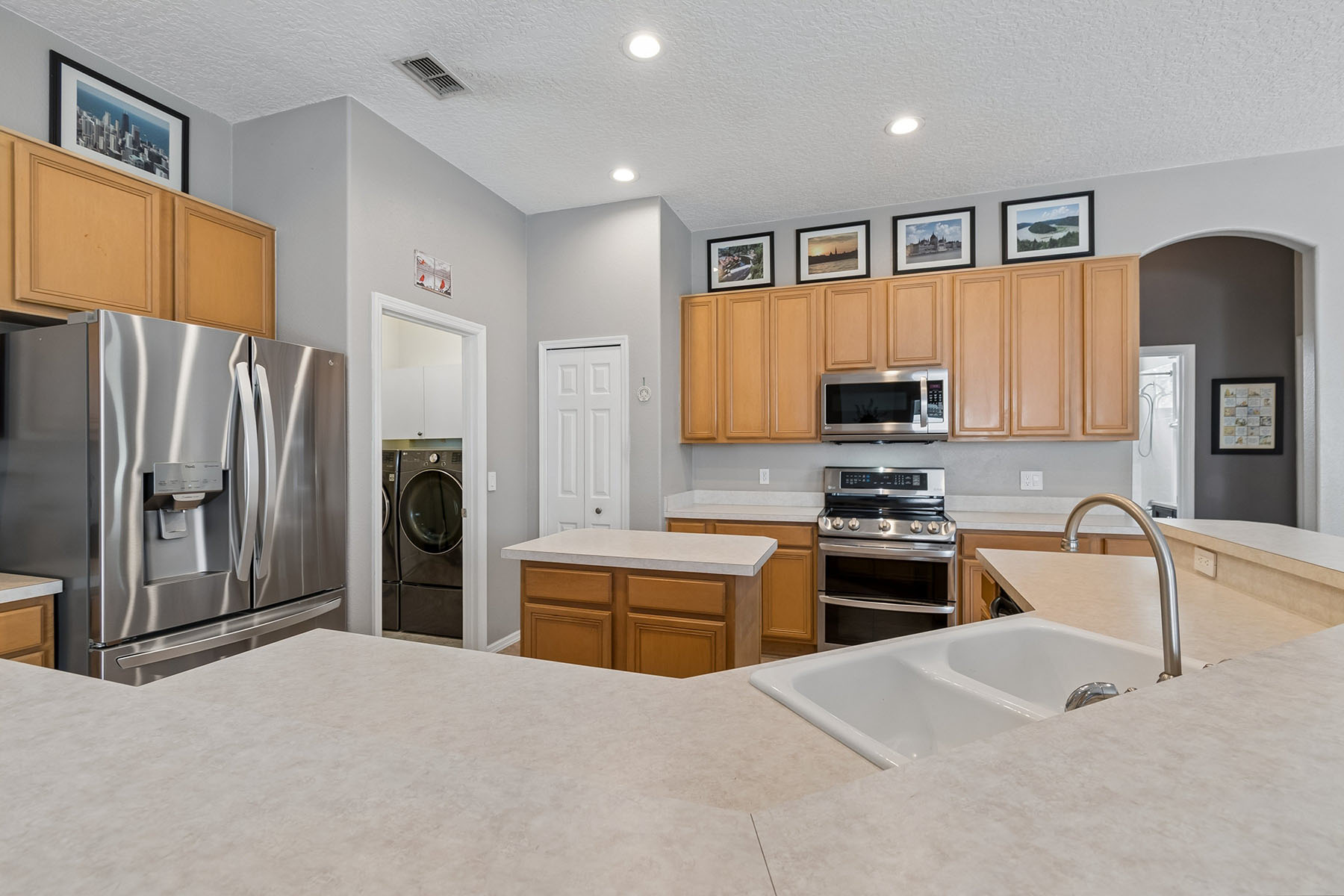 Welcome to a beautifully maintained four-bedroom, three-bath pool home located in the highly desirable Dr. Phillips area of Orlando, just minutes from all the area's world-famous theme parks. Situated on a generous 0.33-acre lot with no rear neighbors, this property offers exceptional privacy, outstanding curb appeal and a spacious three-car garage with abundant storage. Inside, you'll find a thoughtfully designed split floor plan featuring formal living and dining rooms, along with a bright and open family room that seamlessly connects to the kitchen, ideal for both everyday living and entertaining. The kitchen serves as the heart of the home, featuring a double oven, center island, expansive breakfast bar and a cozy eat-in nook overlooking the family room and sparkling pool. The primary bedroom features pool views, two closets and an ensuite bathroom with dual sinks, a garden tub, a walk-in shower and a private toilet closet. The private layout includes a versatile rear bedroom and full bath with a walk-in shower, perfect for a guest suite or in-law retreat. This bathroom also offers direct access to the pool area, making outdoor entertaining effortless. Two additional bedrooms share a full bath with a tub/shower combination. Step outside to your private backyard oasis and enjoy the pool with no rear neighbors, providing added privacy and a peaceful setting. Numerous updates add value and peace of mind, including: freshly painted lanai and ceiling (2026); new water heater (2025); new ceiling fans in the primary, secondary bedrooms and family room (2025); new septic drain field and new access cover (2024); A/C condenser (2022); kitchen appliances (2022); LG washer and dryer (2021); tile flooring in the kitchen, laundry room, hallway and second bathroom (2019); hardwood flooring in the back bedroom, primary bedroom and formal living and dining rooms (2014 & 2016); roof (2012); and pool resurfacing with new tile (2012). Residents of this sought-after community enjoy outstanding amenities, including a clubhouse, lighted tennis and pickleball courts, a playground, a private boat ramp, and a dock on the Big Sand Lake Chain of Lakes, a 1,200-acre private lake ideal for boating, skiing and fishing. With a remarkably low HOA of just $575 per year, lake access and these amenities make this community an exceptional value. Just outside the neighborhood, a convenient path leads to the elementary and high school, as well as Dr. P. Phillips Community Park and new little league baseball fields. The park features picnic areas, walking trails, sports courts, a playground, a dog park and rentable pavilions. This prime location places you minutes from upscale shopping, dining along Restaurant Row, and major attractions including SeaWorld Orlando, Universal Orlando Resort and Walt Disney World's Magic Kingdom. With easy access to major highways, Orlando International Airport, and downtown Orlando, this home truly offers the best Florida living. Don't miss your opportunity to own in one of Orlando's most desirable areas.
