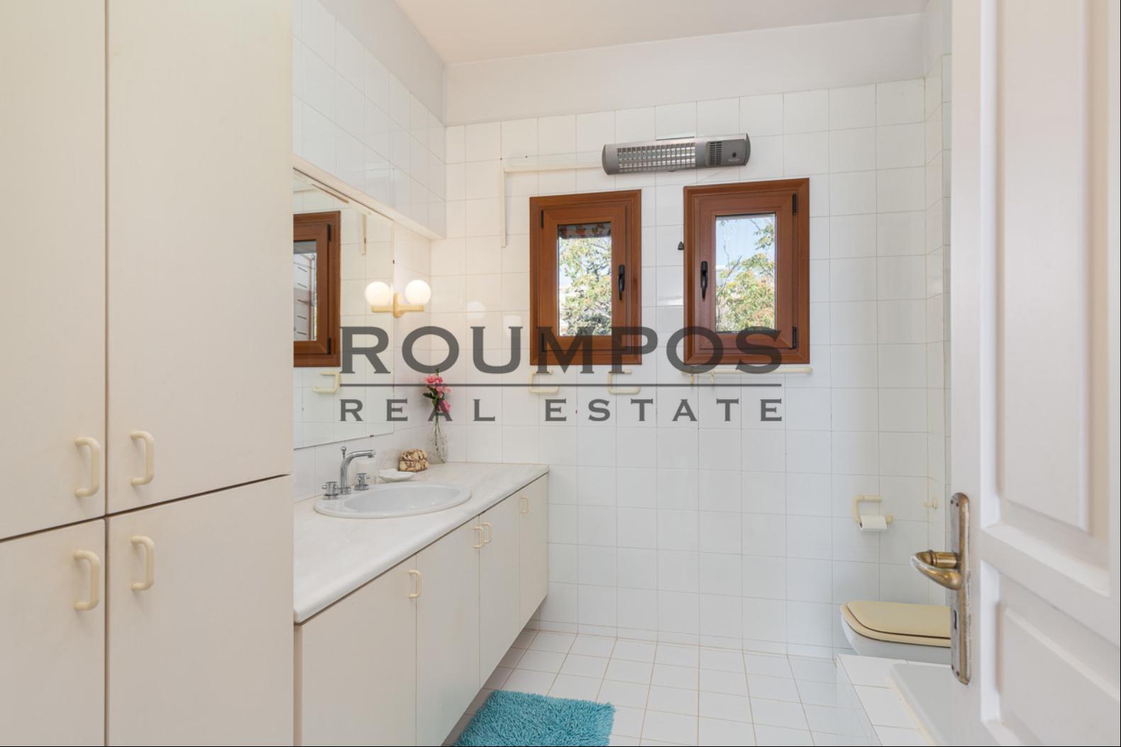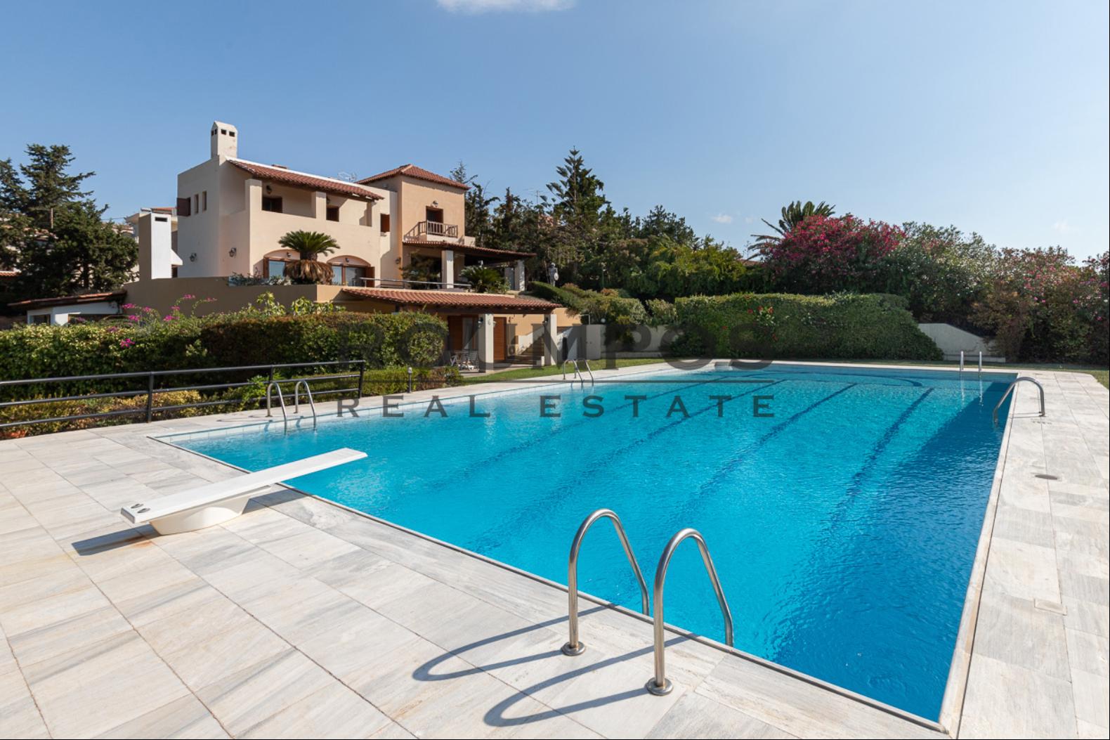 The outdoor areas combine aesthetics and practicality, creating an ideal setting for relaxation, entertainment, and leisure activities. The centerpiece of the property is a stunning 200 sq.m. swimming pool with salt electrolysis (fresh/saltwater), ranging from 1.20 m to 4 m in depth. Surrounded by a landscaped garden with lawn, trees, automatic irrigation, and a BBQ area, it creates the perfect setting for outdoor living.
